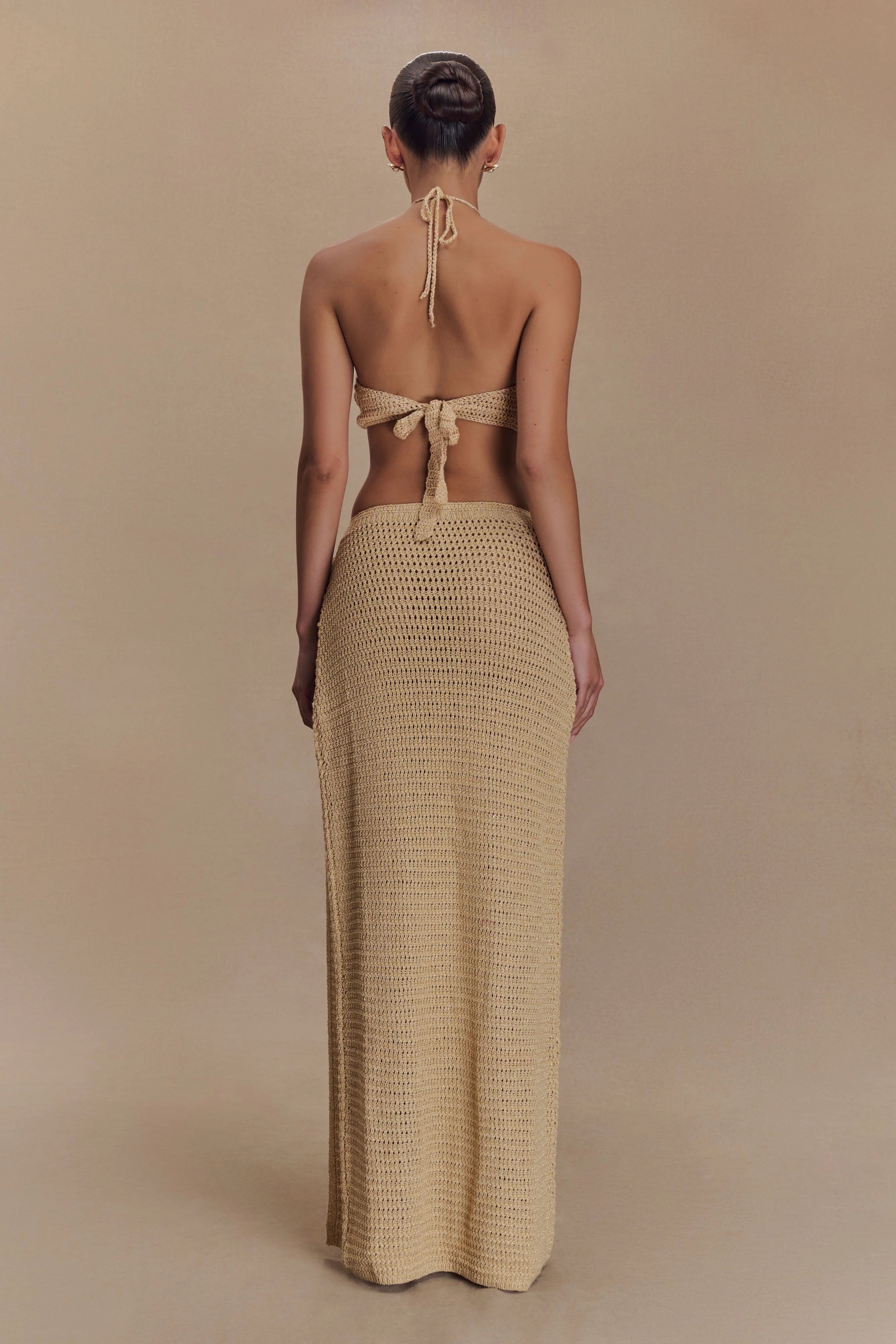 The ABIGAIL Floral Crochet Maxi Skirt is the epitome of bohemian elegance, crafted from intricate crochet fabrication for a textured finish. Designed with a statement floral accent at the hip and a daring side cut, this skirt offers a perfect blend of femininity and allure. The elastic waist ensures a comfortable, flattering fit, while the maxi length enhances its flowing, graceful silhouette. Pair it with your favourite top or matching for a chic, carefree look that’s perfect for sunny days and dreamy nights.