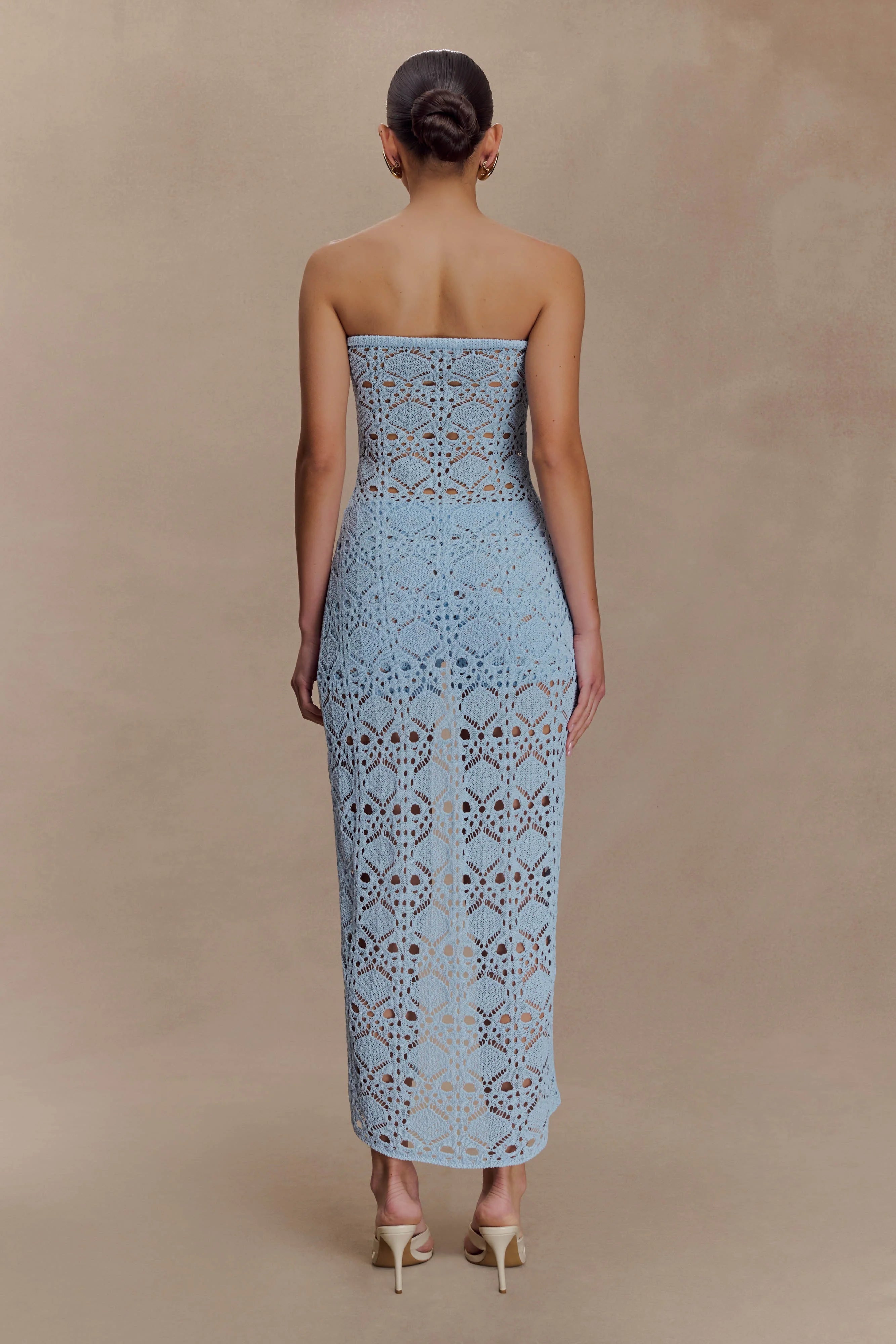 The AELINE Strapless Crochet Knit Top is a romantic take on summer texture. Featuring a flattering princess neckline and open centre front, this longline silhouette adds elegance to any warm-weather look. A floral applique at the bust adds a soft focal point, while the intricate crochet knit offers artisanal charm. Unlined for an airy, lightweight feel, it’s the perfect piece to pair with shorts or linen trousers.