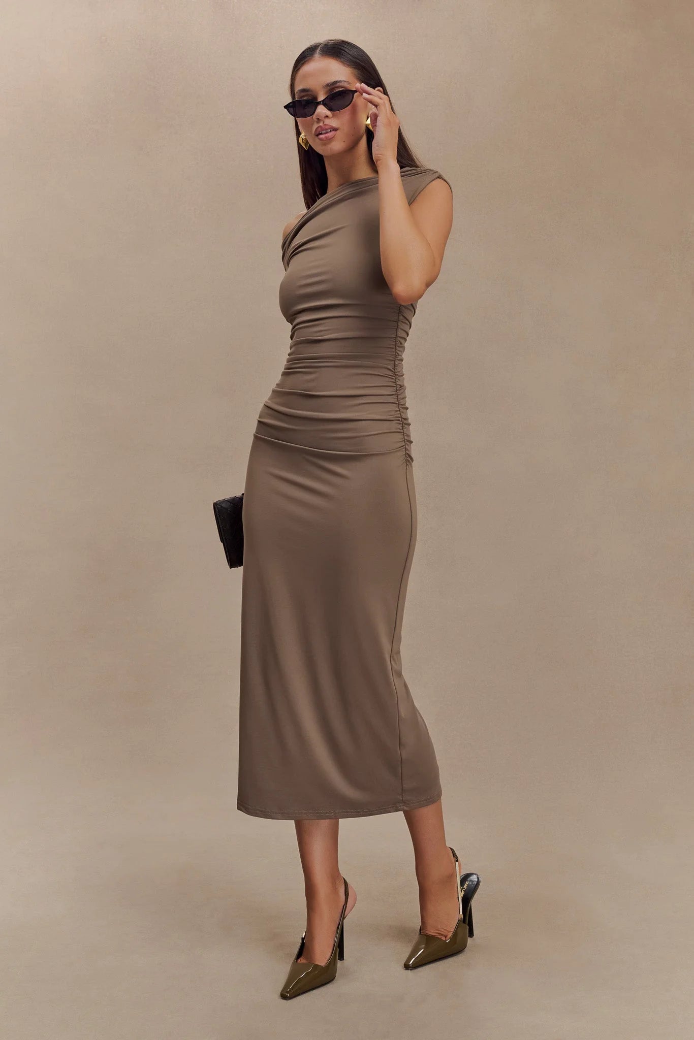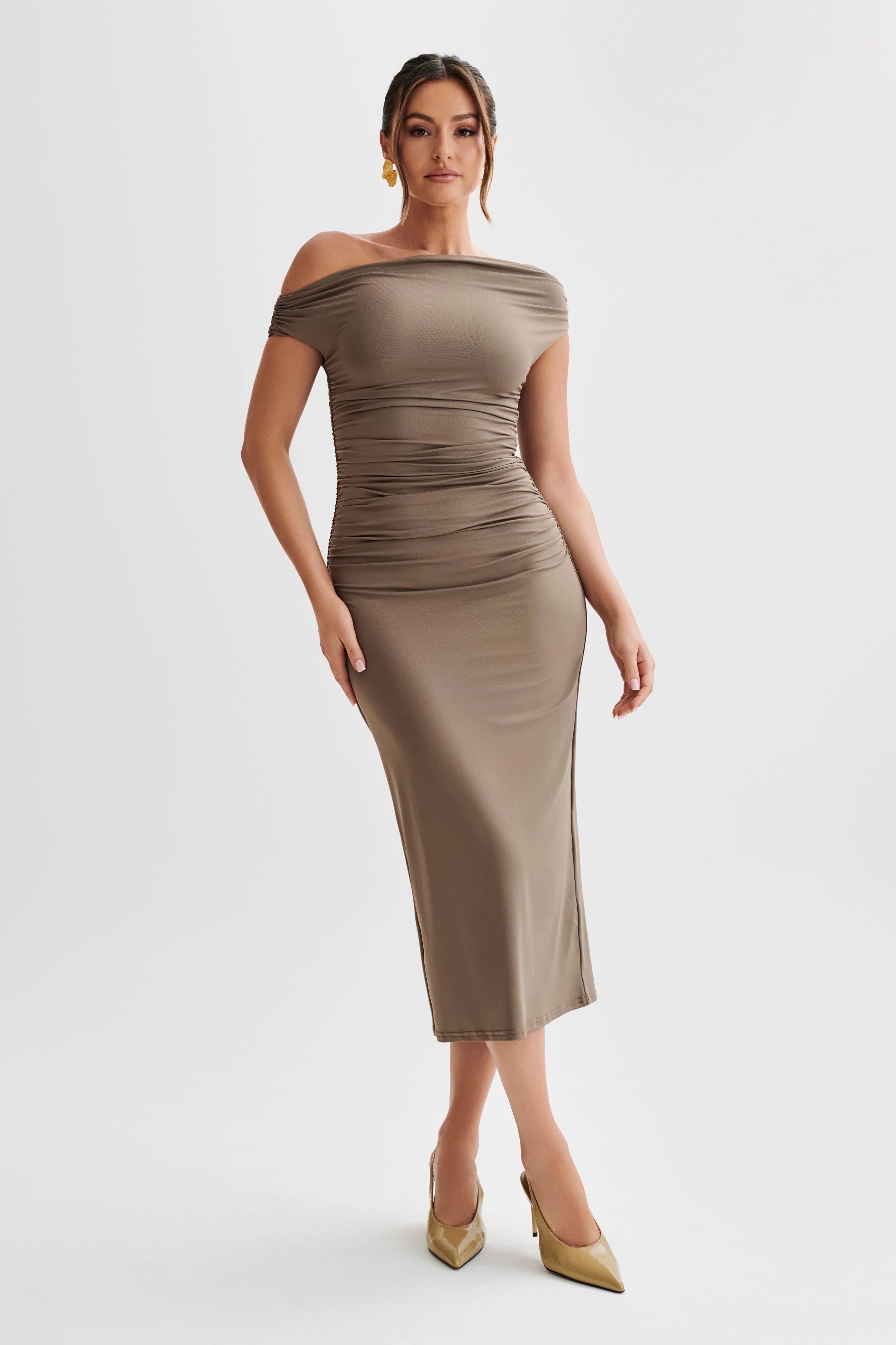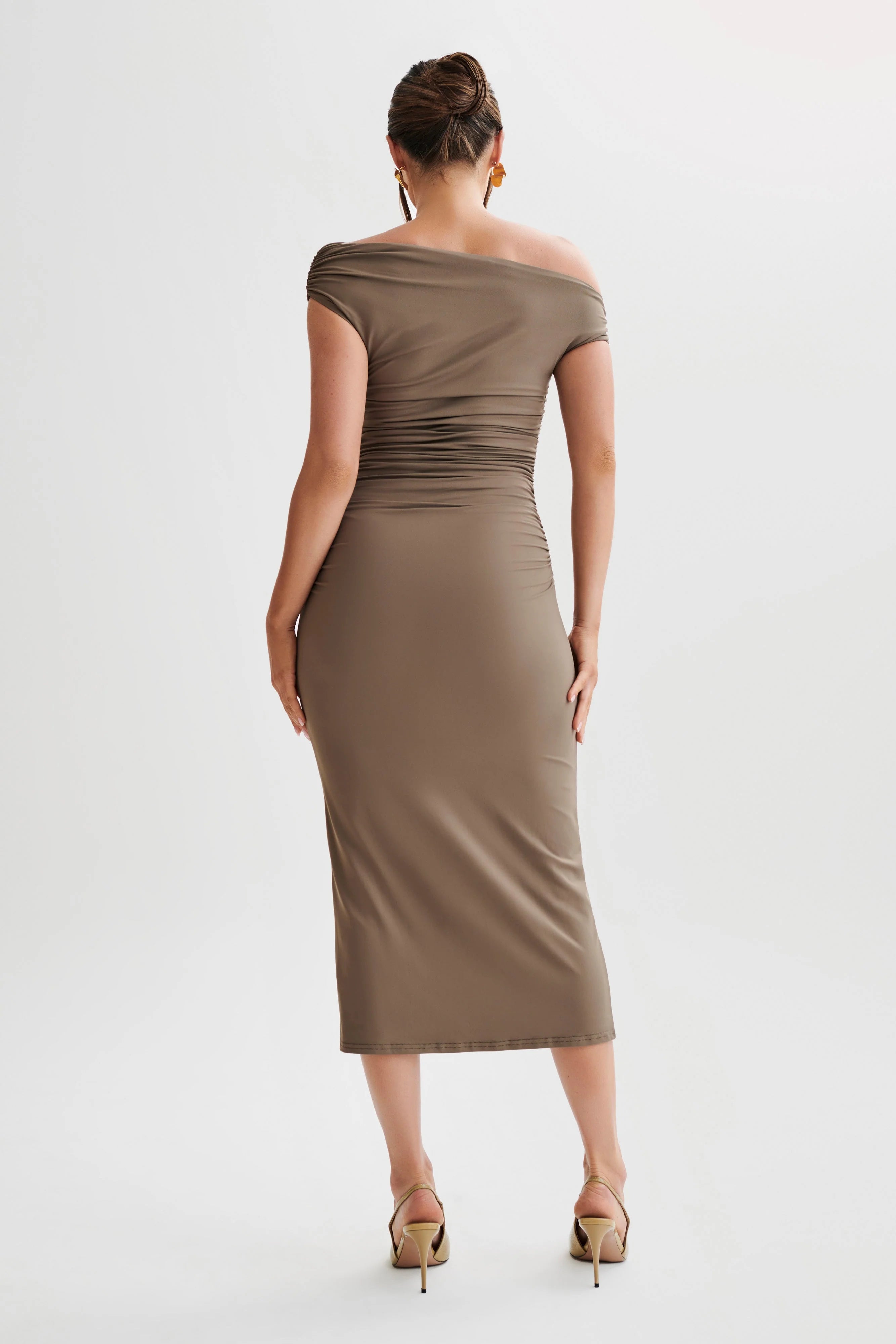 Drop the neckline (and all pretenses) with the ALAYNA Recycled Nylon Midi Dress, a bodycon dress designed to be your perfect plus one to almost any event. We designed this in a soft supportive double layer fabrication and incorporated ruching to create an ultra flattering fit.