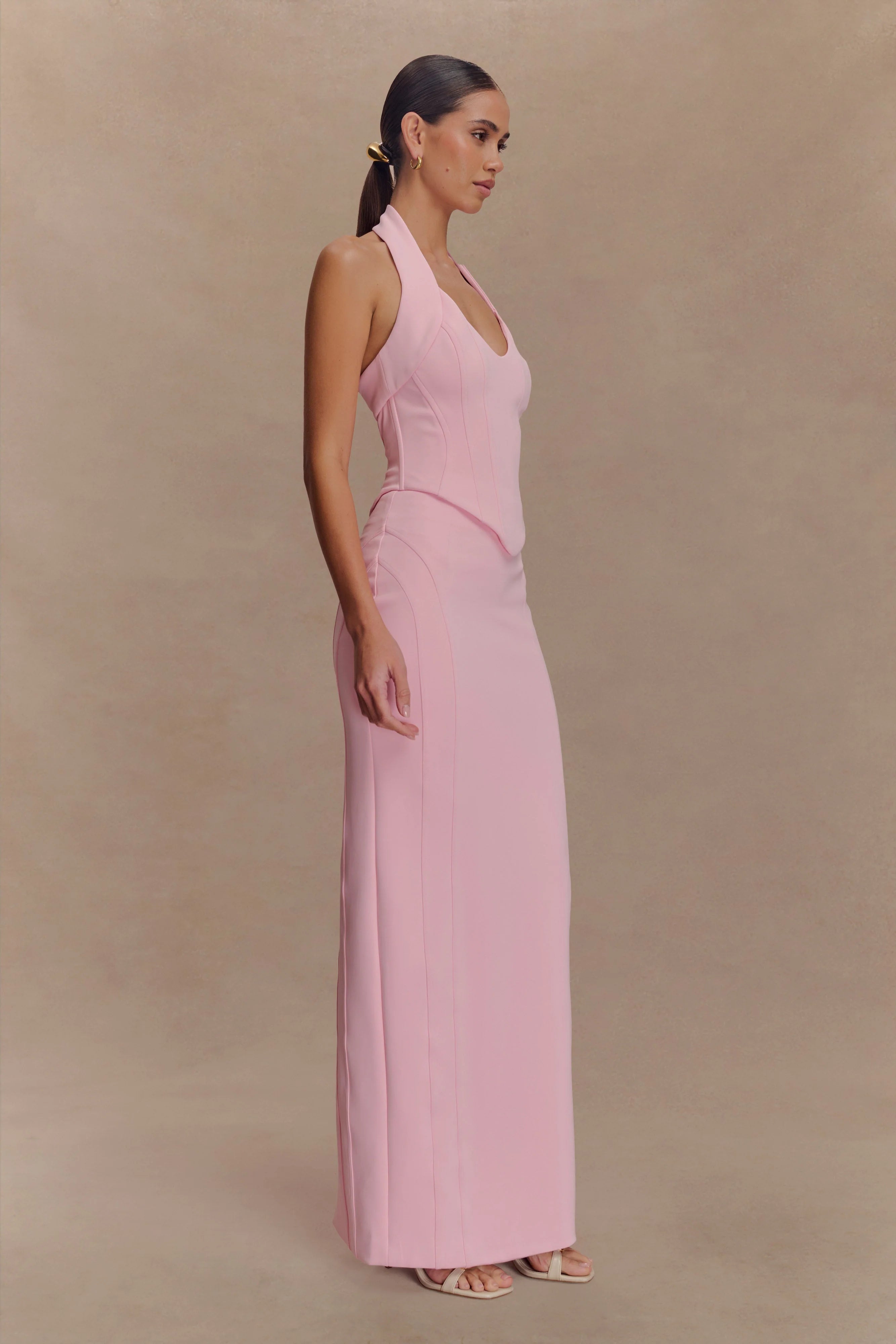 The ALMA High Waist Maxi Skirt is the definition of clean sophistication. Designed to contour and flatter, it features a high-rise waistline and expertly placed hip-shaping panels to enhance your silhouette. The straight-cut shape falls to a chic midi length, with a back vent for ease of movement and graceful flow. Finished with a sleek back zip closure, this skirt transitions seamlessly from desk to dinner — just add confidence.