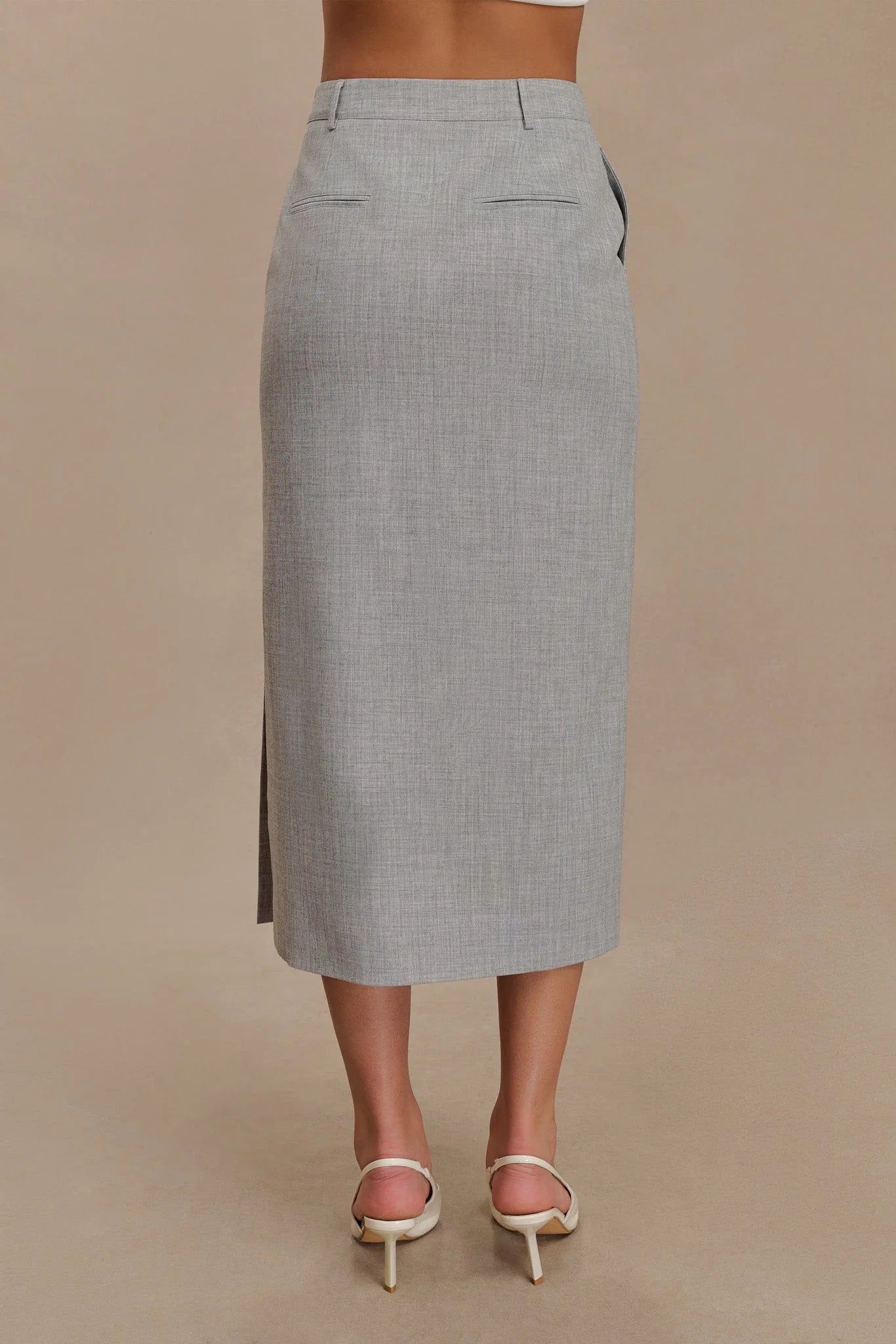 The AMBROSE Midi Skirt is a sophisticated and versatile piece designed to elevate any wardrobe. With its high-waisted fit and side zip closure, it offers a sleek, tailored silhouette that complements a variety of tops. The functional side pockets provide practical convenience, while the non-functional back pockets maintain a streamlined appearance. The midi length and straight shape ensure a flattering fit, and the side vent allows for ease of movement. Lined for added comfort and a refined finish, this skirt pairs beautifully with the for a chic, coordinated look perfect for both daytime and evening events.