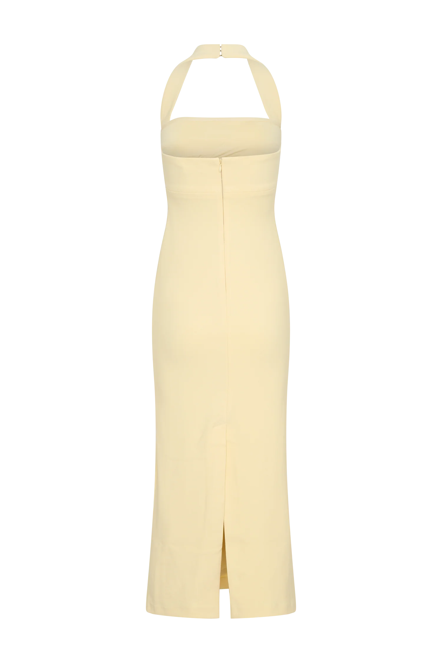 Exuding elegance and sophistication, the AMELITA Suiting Halter Midi Dress is a statement piece that commands attention. Its halter neckline adds a touch of allure, framing the shoulders and highlighting your collarbone, while the underbust panel seam creates a flattering silhouette. Designed with contour panel seams, this dress contours to your body, and the midi length adds a dose of refinement, offering a balance between formal sophistication and modern sensibility. For seamless dressing, the dress features a centre-back invisible zip with a hook and eye closure, ensuring easy on and off. With its timeless design and impeccable craftsmanship, this dress is a symbol of refined charm and impeccable taste, making it a valuable addition to your wardrobe for any formal occasion or cocktail party.