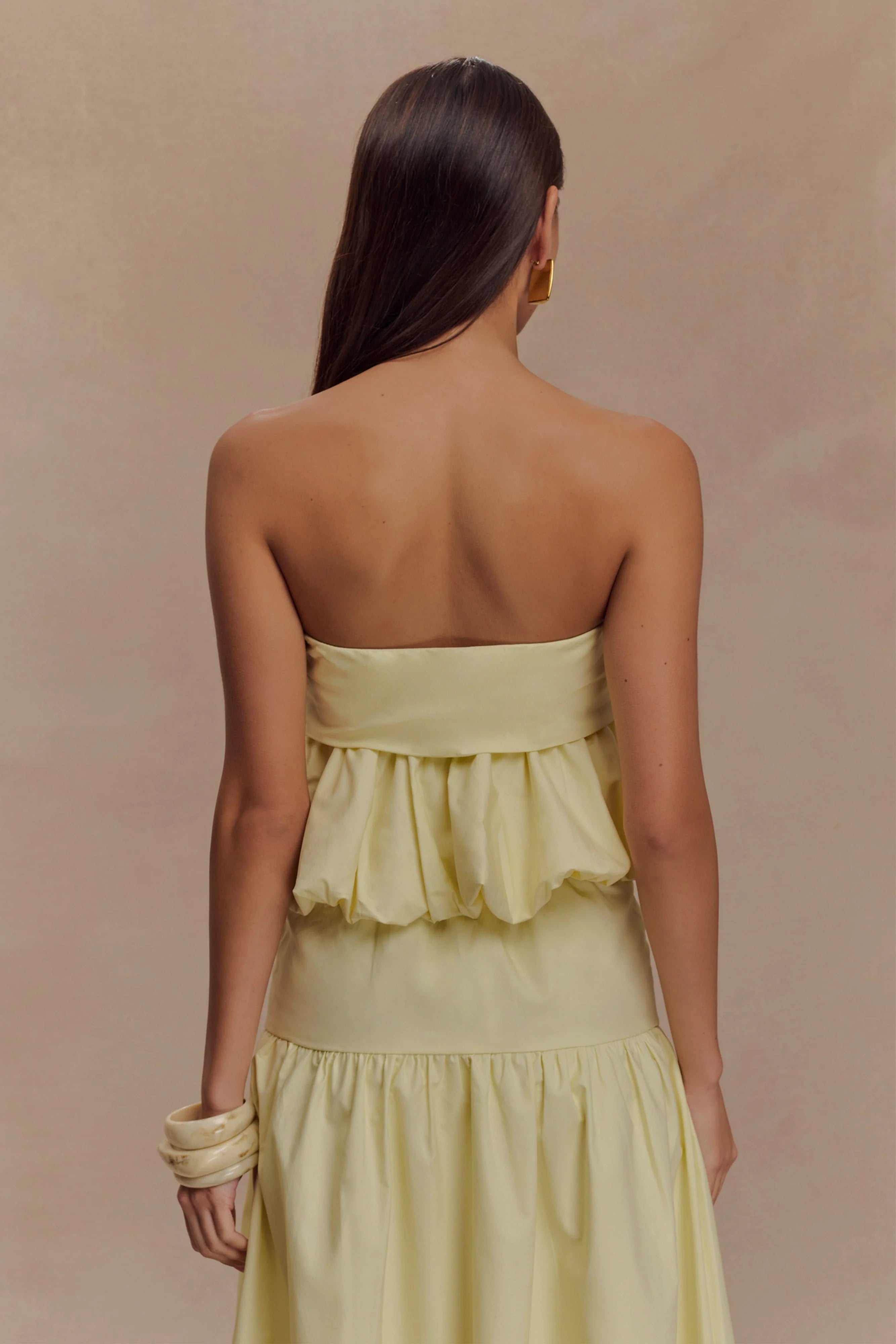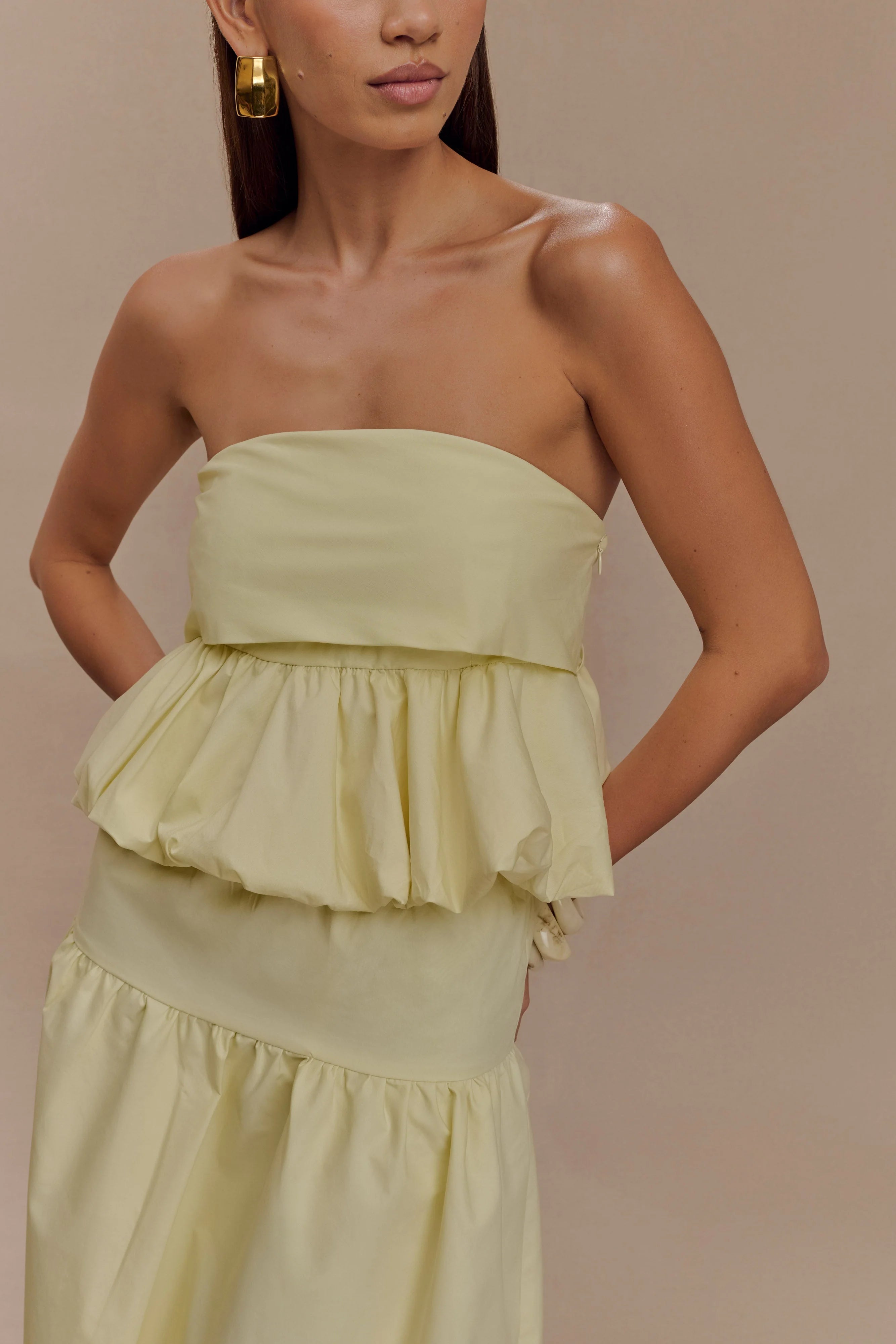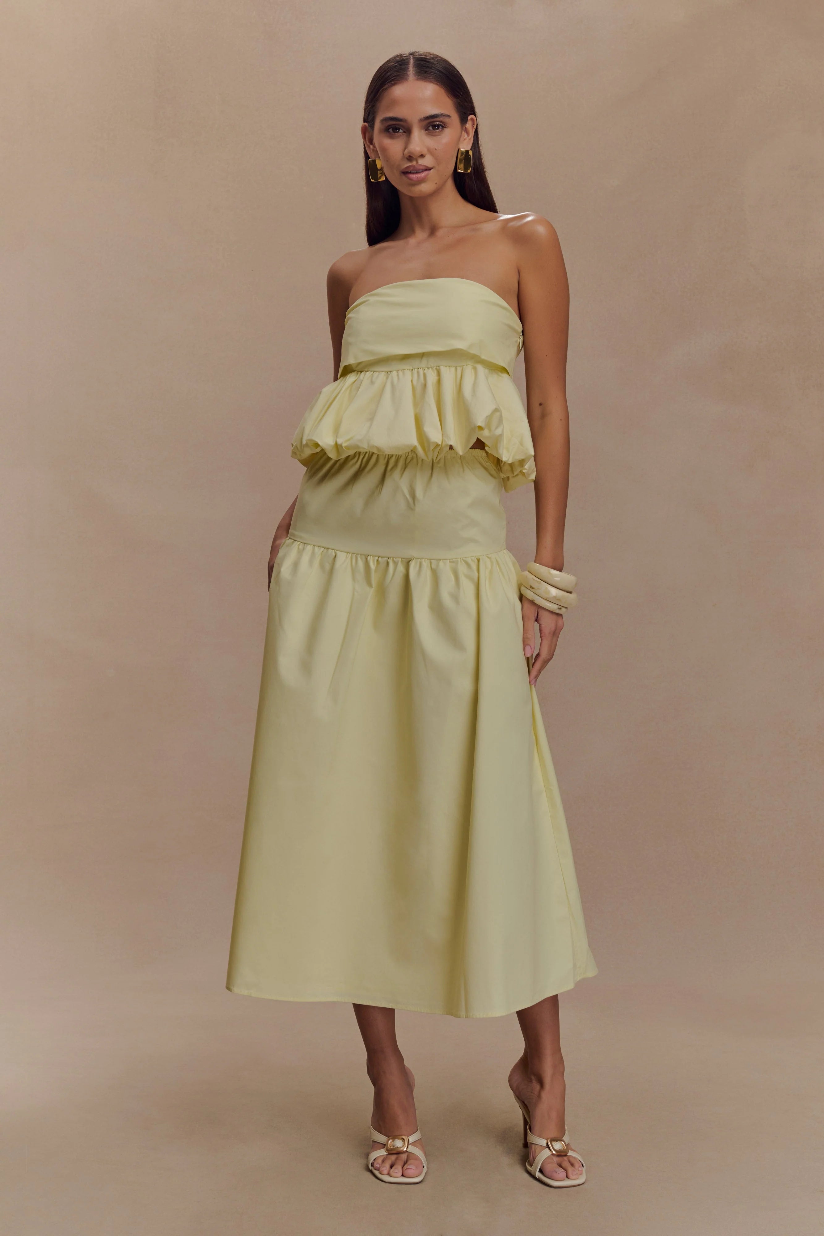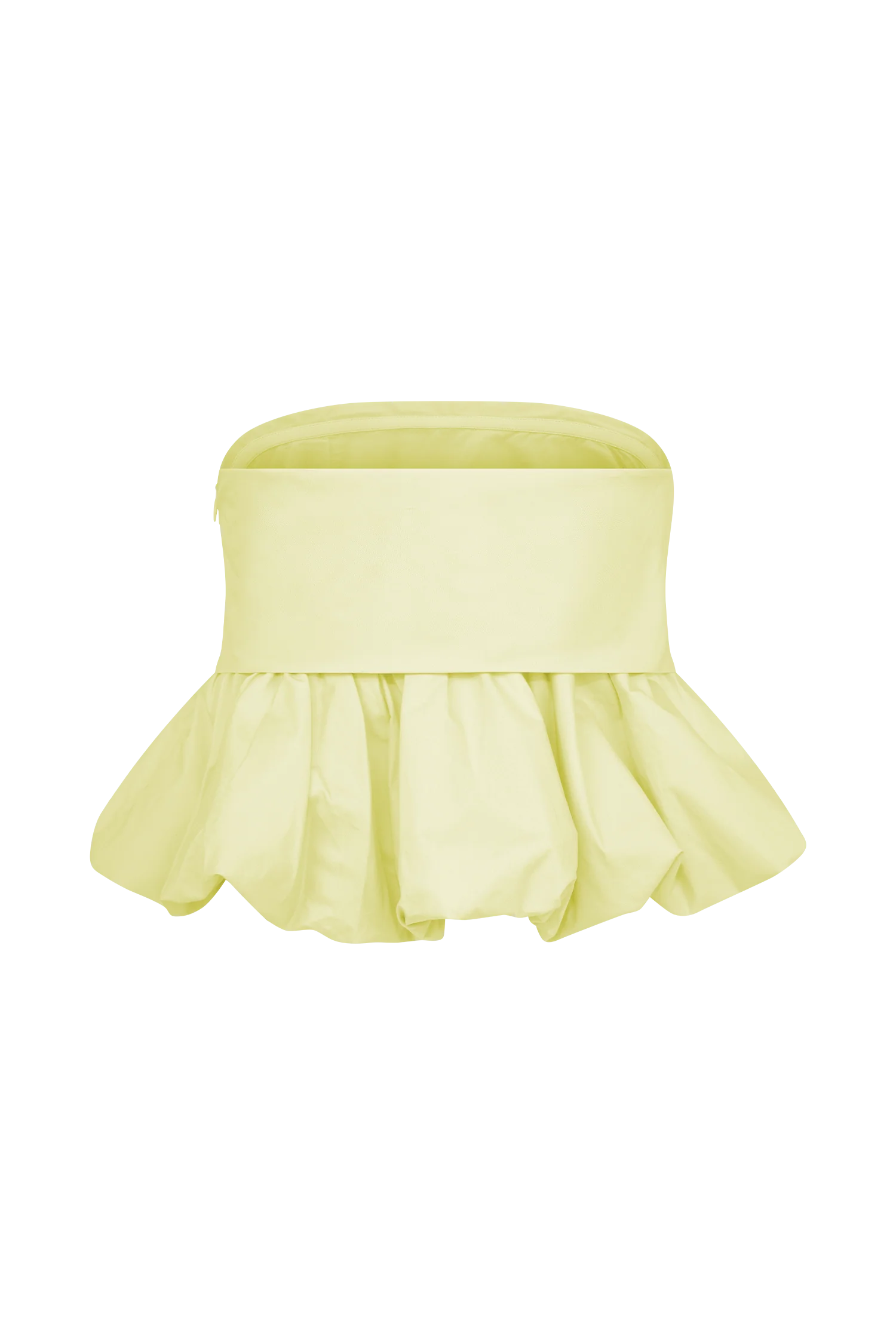 The AMIRAH Strapless Bubble Crop Top combines bold design with effortless elegance. Featuring a flattering strapless fit and a structured bust overlay, this top creates a sleek, feminine silhouette. The playful bubble hem shape adds volume and movement, while the cropped length offers a modern, flattering look. Fully lined for comfort and structure, it’s the perfect piece to elevate any outfit. For a chic and coordinated look, pair it with the , creating a refined yet playful ensemble that’s perfect for both casual outings and special occasions.
