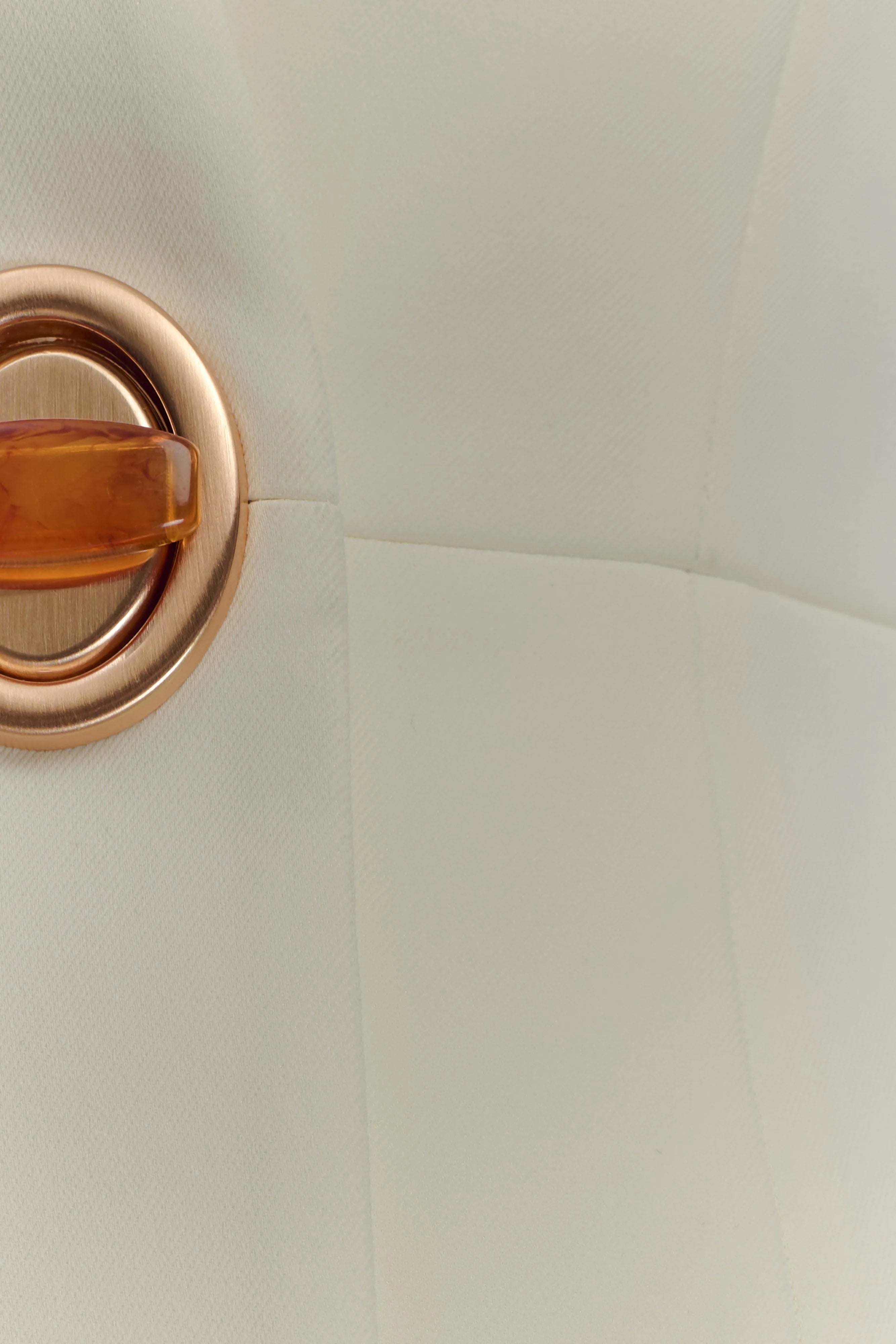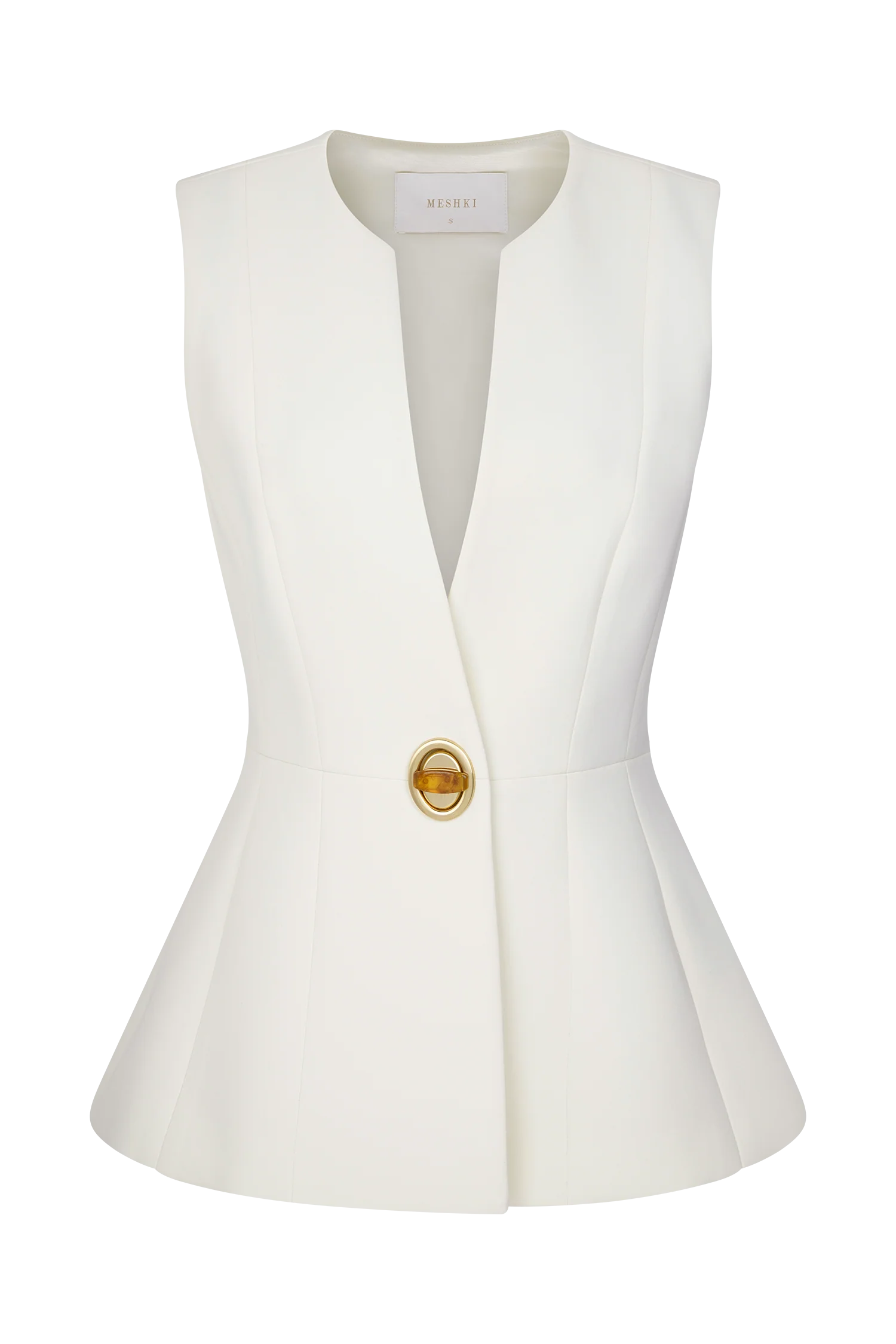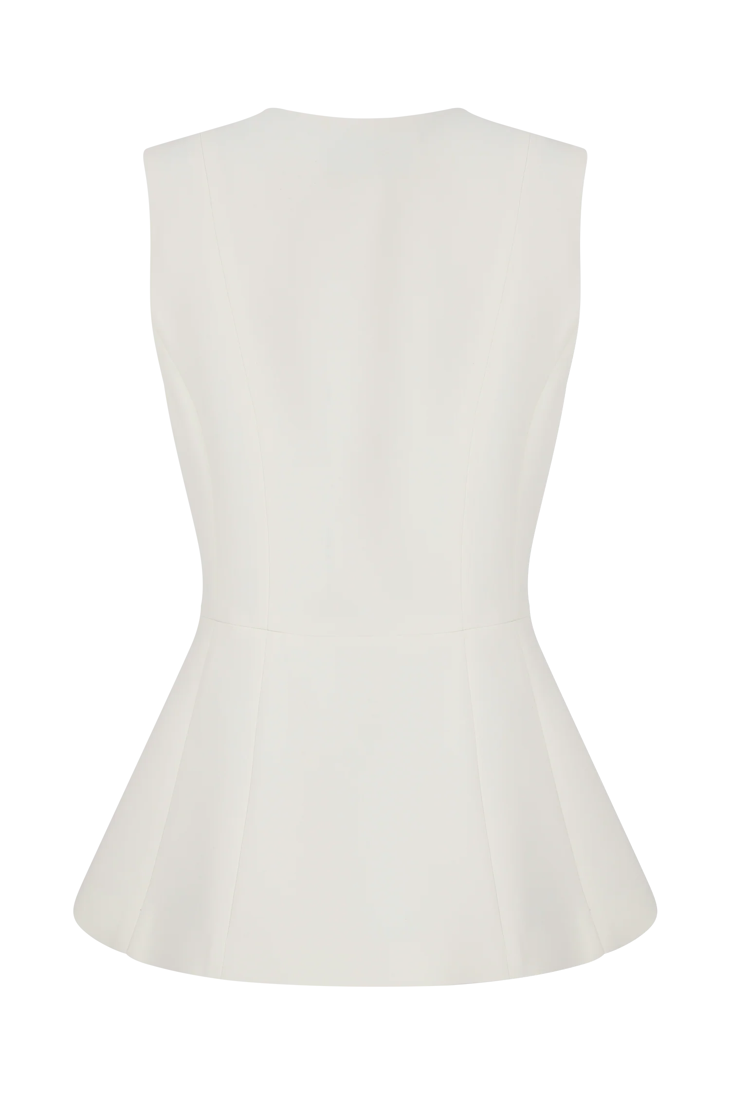 The ANGELIE Suiting Vest Top is a refined take on modern tailoring, designed to sculpt and flatter. Featuring a longline sleeveless silhouette with a sharp V-neckline and folded right lapel, this piece blends classic suiting elements with feminine flair. Panel detailing and a defined waist seam create structure, while a single waist button closure and kick-out flared hem offer shape and movement. Fully lined for a polished finish, pair it with the for a sharp, sophisticated set that goes beyond the expected.