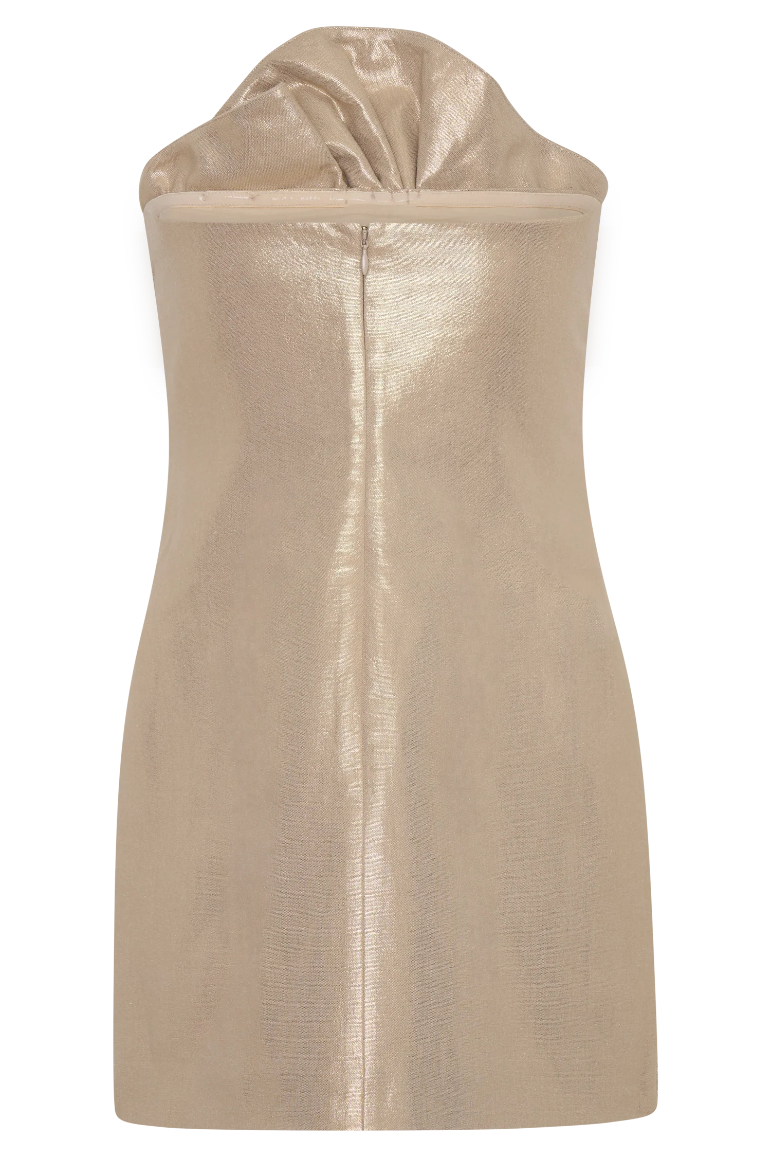 The ANNETTE Linen Mini Dress is a warm-weather staple designed with refined accents. Strapless in silhouette, it features custom gold hardware gathered through the front bust, adding a polished focal point. A clean centre back zip ensures ease of wear, while the A-line hemline creates subtle movement. Fully lined and cut to a mini length, this dress balances simplicity with statement, perfect for day-to-evening styling.