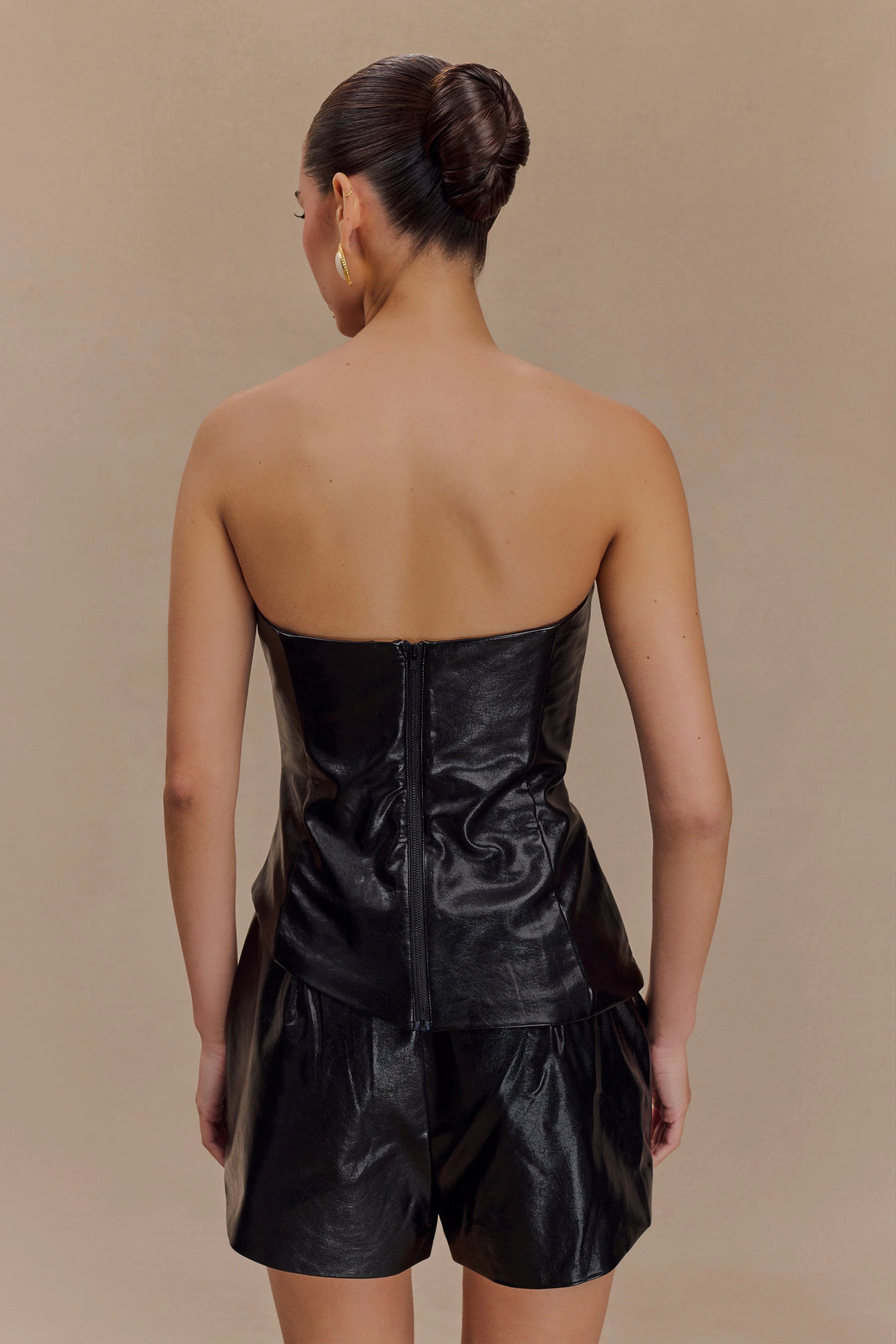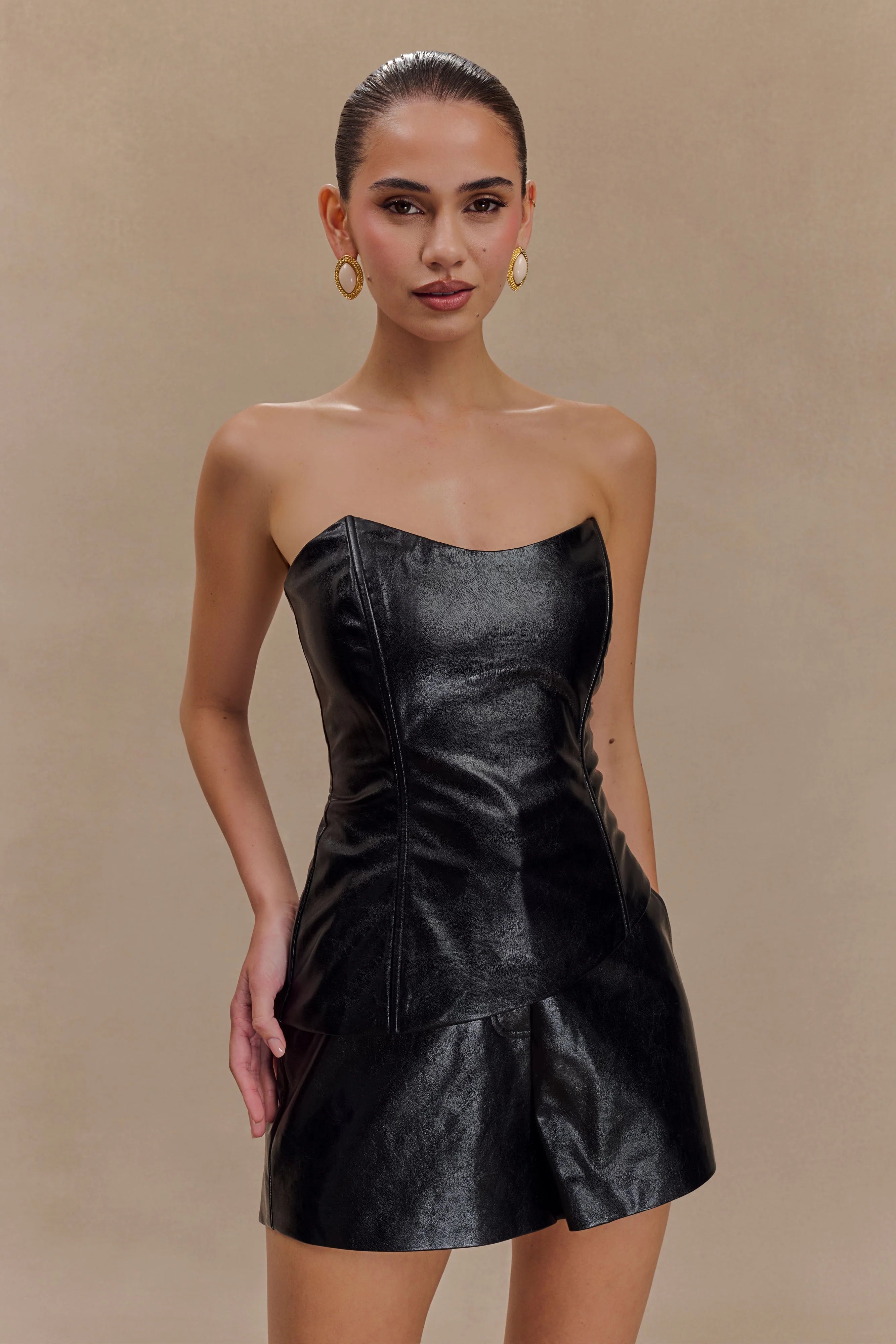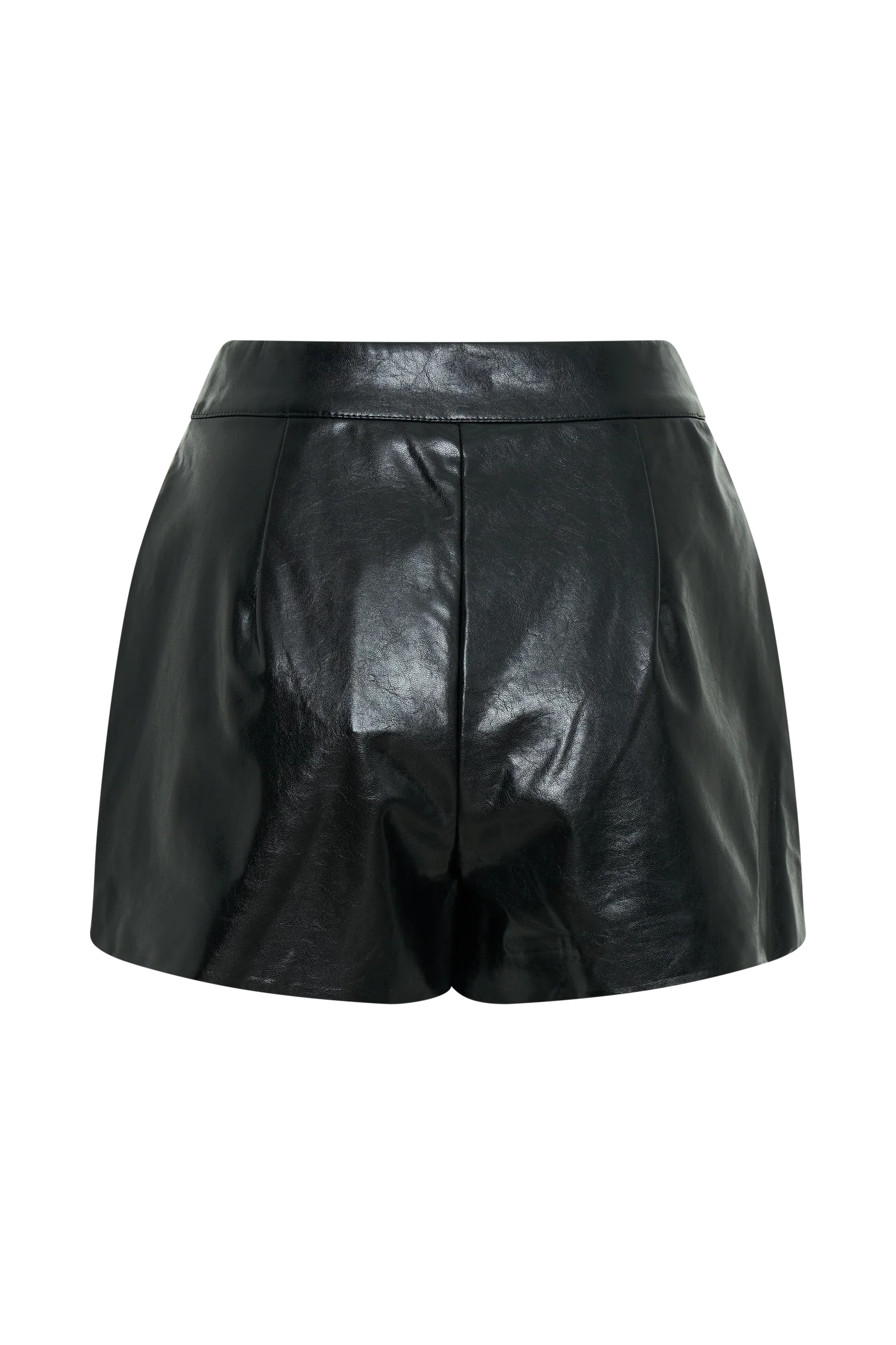 Introducing the ARABELLE Faux Leather Shorts—a high-waisted essential with a touch of edge. Designed with a flattering waistband and structured, rounded shape, these mini-length shorts bring a modern twist to any look. Sleek, non-functional front pockets add a stylish detail, while the side zip closure ensures a flawless fit, and full lining provides all-day comfort. Crafted from luxe PU fabrication, these shorts pair perfectly with the for an unforgettable ensemble that’s equal parts bold and sophisticated.