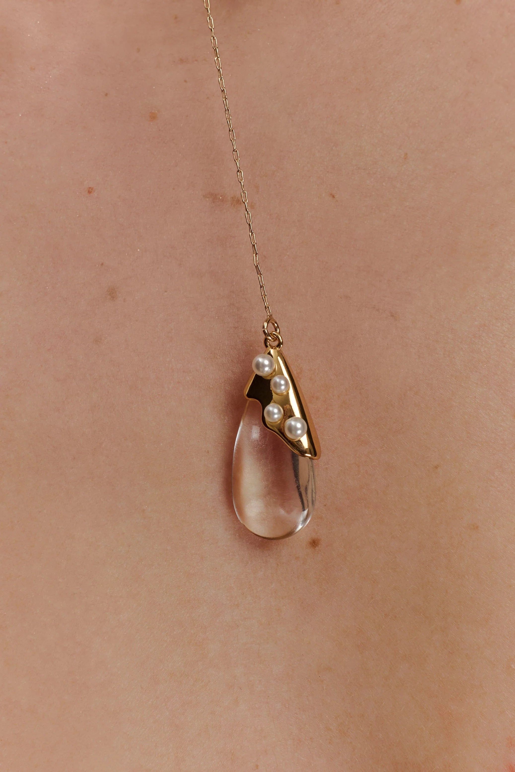 The AUGUSTA Teardrop Pendant Necklace is your subtle statement for everyday elegance. Suspended from an adjustable chain, the glass teardrop pendant catches the light with ease, while a delicate pearl detail adds a refined touch. Finished with a lobster claw closure for secure wear, this necklace pairs effortlessly with layered chains or stands alone as a quiet moment of shine.
