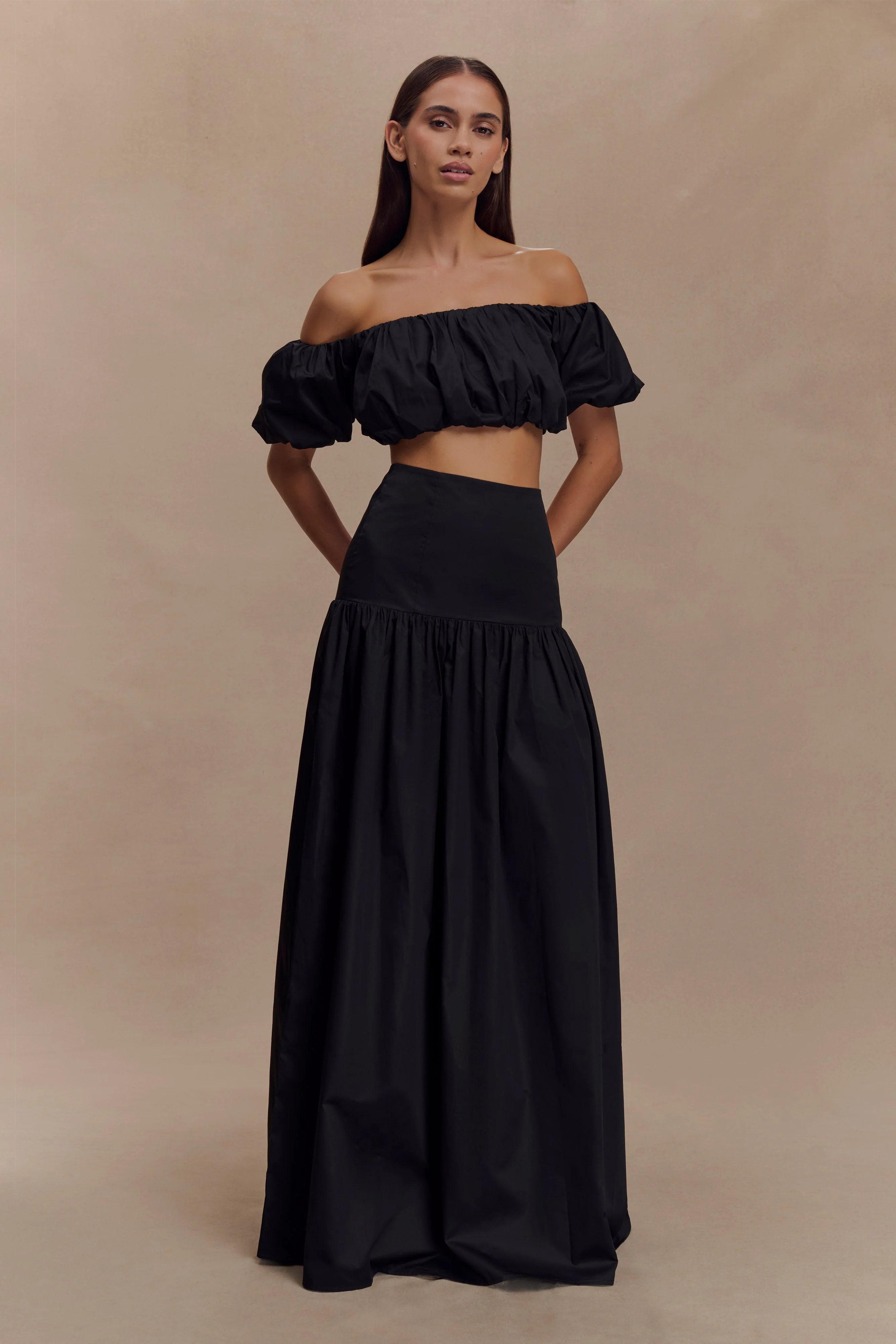 The AUTUMN Maxi Skirt is the perfect balance of softness and structure. Designed with a wide, fitted drop waist that flatters and defines, the skirt flows effortlessly into voluminous gathers for a romantic finish. Crafted without lining for a light, breathable feel and finished with an invisible side zip for a seamless look, this skirt moves with grace from day to night. Pair with the for a perfectly polished set with playful energy.