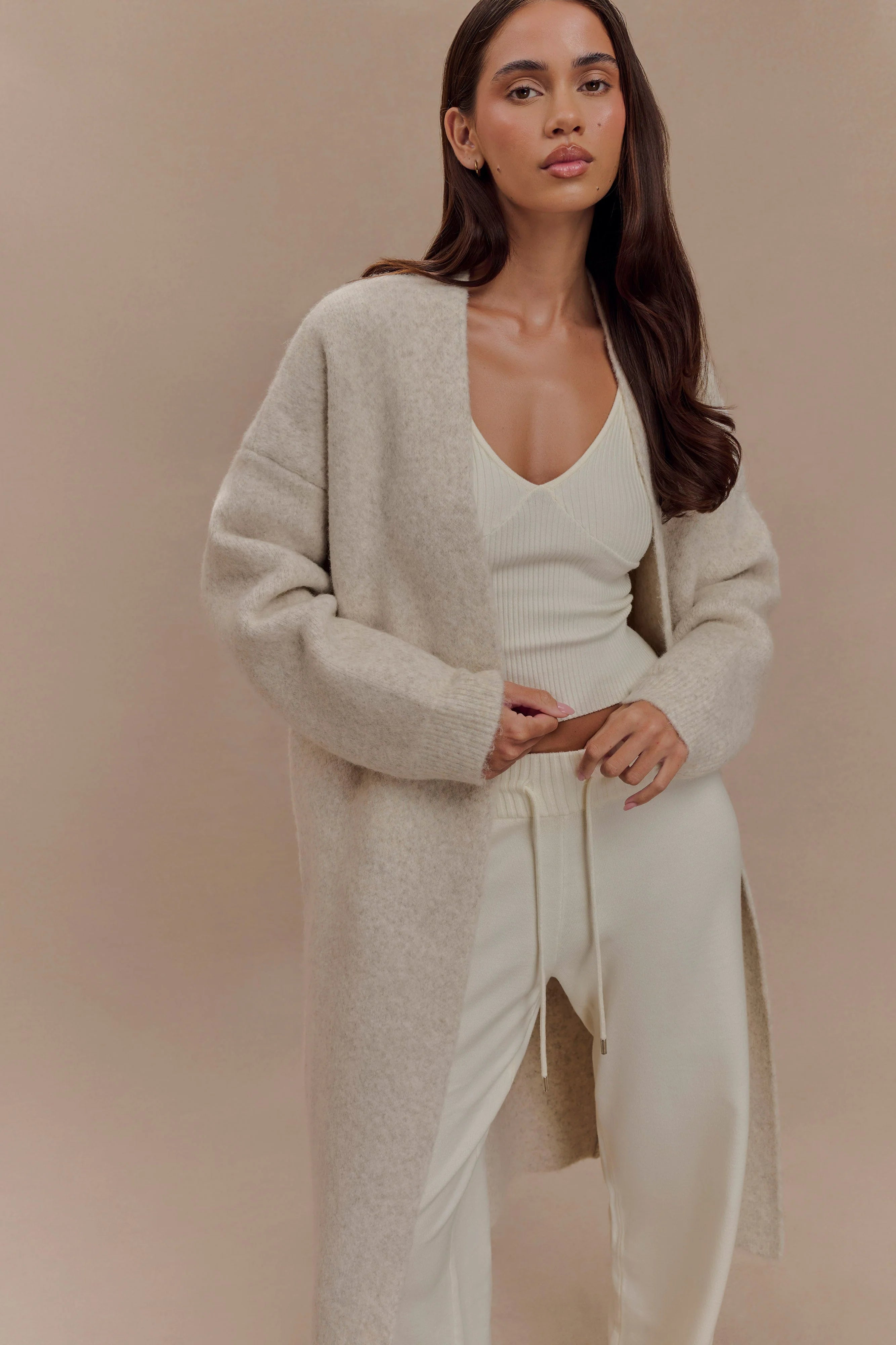 The BENSON Maxi Knit Cardigan is the epitome of laid-back luxury. With its open front and long sleeves, this cardigan offers effortless styling and comfort. The drop shoulder design adds to its relaxed, slouchy fit, creating a cozy, oversized silhouette that’s perfect for layering over any outfit. This cardigan brings an easy, relaxed vibe to your wardrobe, and is ideal for those cool days when you want to feel both stylish and comfortable.