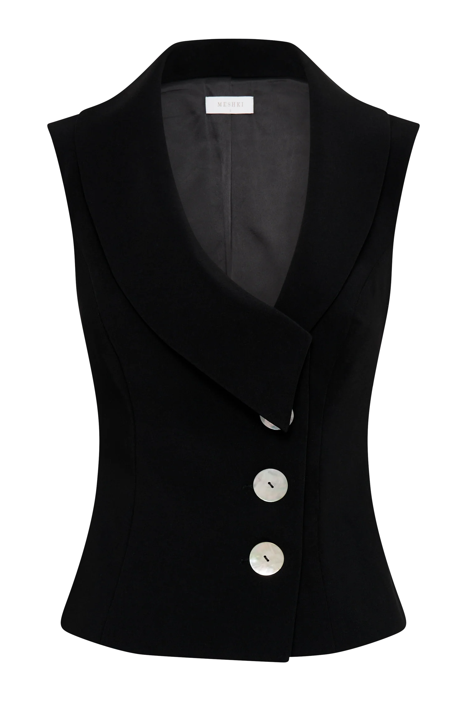 Introducing the BERKLEY Suiting Waistcoat with Cowl, epitomising tailored grace with a modern twist. Its asymmetrical scooped neckline and rounded collar with lapel create a refined silhouette that exudes confidence and sophistication. Adorned with shell buttons and featuring an off-centre functional button closure, this longline, structured waistcoat offers timeless elegance and versatility. Pair it effortlessly with the for a coordinated ensemble that seamlessly transitions day to evening gatherings. Elevate your wardrobe with this classic piece that blends impeccable tailoring with contemporary charm.