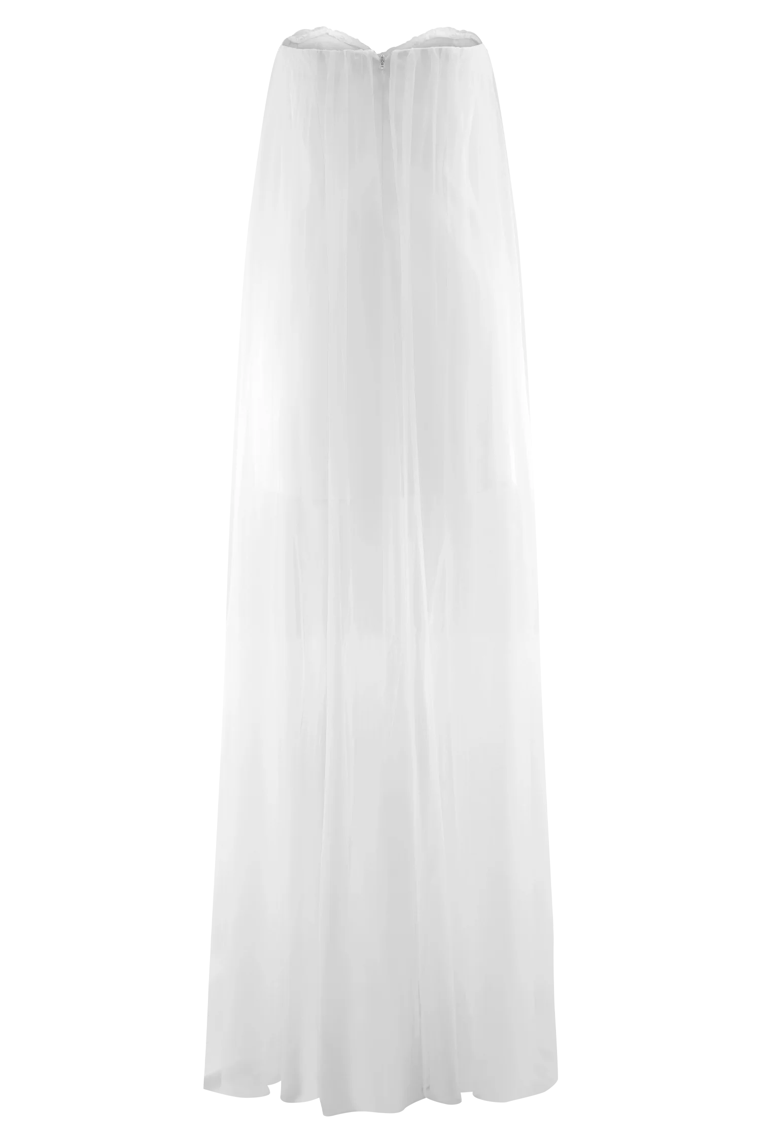The BETTANY Chiffon Strapless Maxi Dress is a breathtaking fusion of structure and softness. Designed with a romantic princess neckline, this strapless silhouette features a fitted internal bodice with an internal waist stay for a secure and flattering fit. The mini-length internal layer offers a sleek foundation, while the gathered chiffon overlay cascades effortlessly to a maxi length, creating dreamy movement with every step. Finished with a back zip and hook-and-eye closure, the outer layer features delicate buttons and buttonholes for added detail.