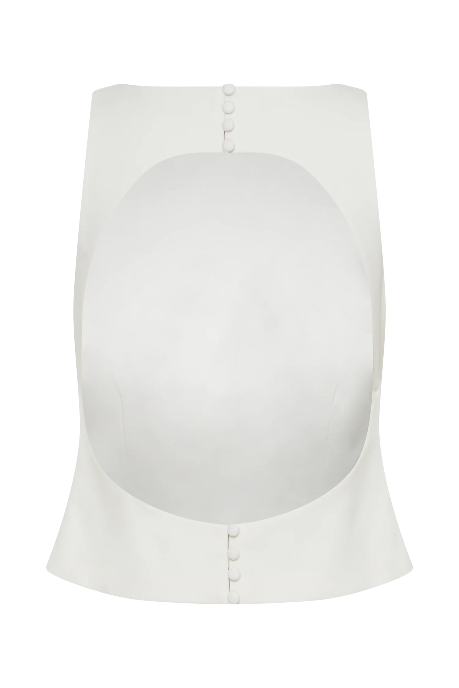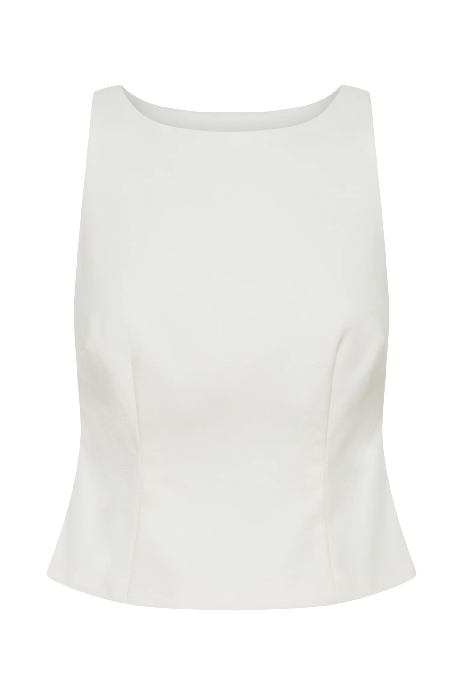 The BRIGETTE Boat Neck Longline Top exudes refined sophistication with its high neckline and sleeveless design, perfect for creating a sleek, elegant look. The open back adds a touch of allure, while the centre back button closure ensures a tailored, secure fit. Crafted from suiting material, this fitted top offers both structure and comfort, making it an ideal choice for both professional and formal settings. For a coordinated and polished ensemble, pair this top with the , creating a chic, sophisticated outfit suitable for any special occasion.