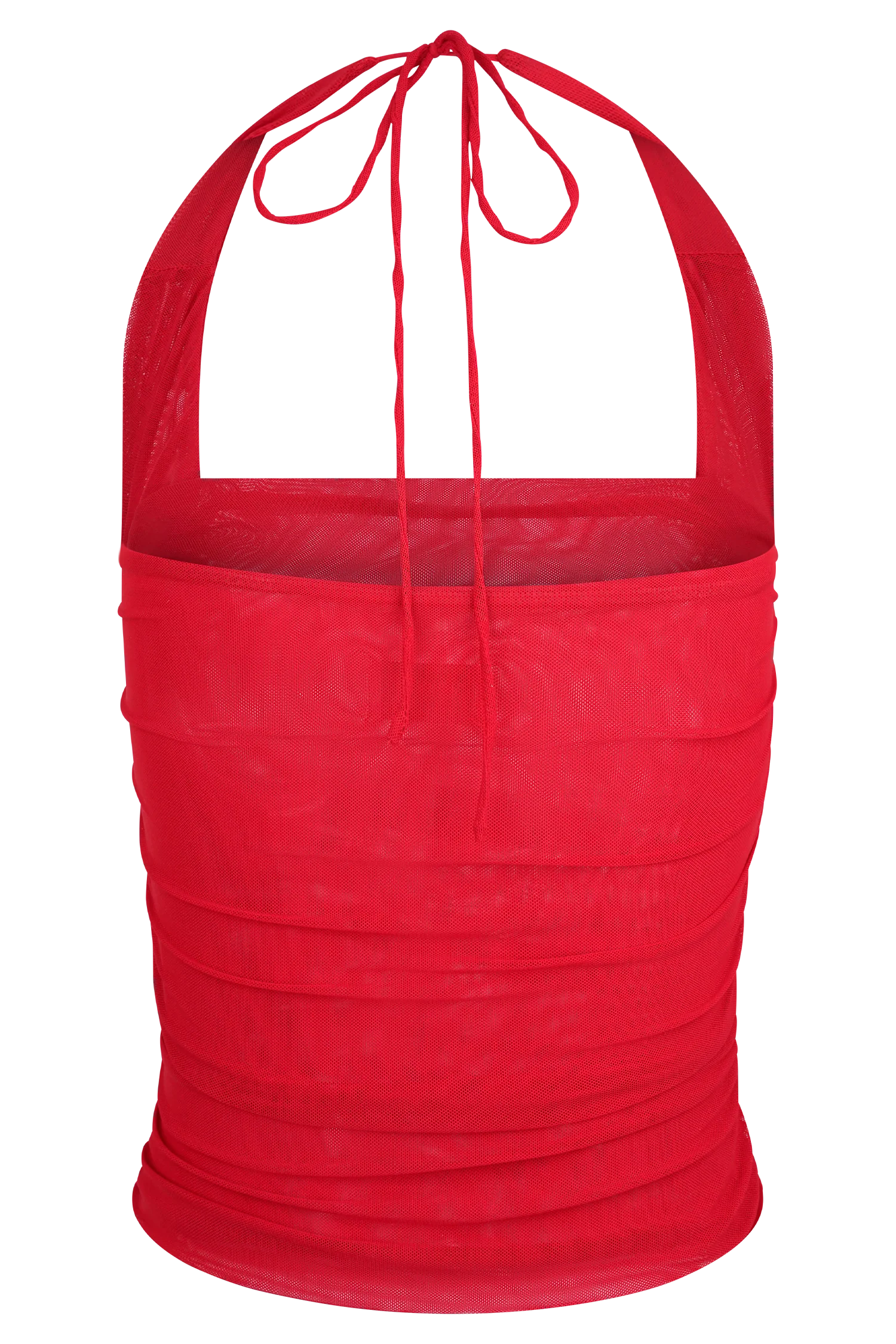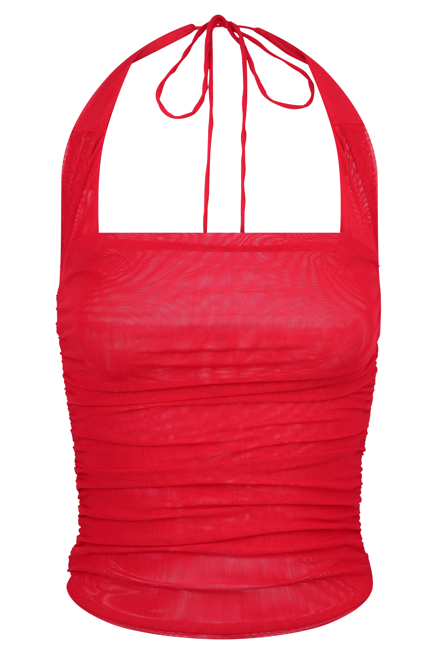 Introducing the BROOKLYN Mesh Crop Top, a chic fusion of style and sensuality. Featuring a wide scoop neckline, this top beautifully frames the neckline, while the dolphin hem shape adds a touch of playful movement. The ruched waist enhances your curves, creating a flattering silhouette, and the open back with a delicate tie detail lends an unexpected yet elegant twist. Crafted from double-layered mesh fabric for a semi-sheer look, the cropped length pairs perfectly with high-waisted pieces. For a seamless, head-turning ensemble, style it with the for a sophisticated and coordinated finish.