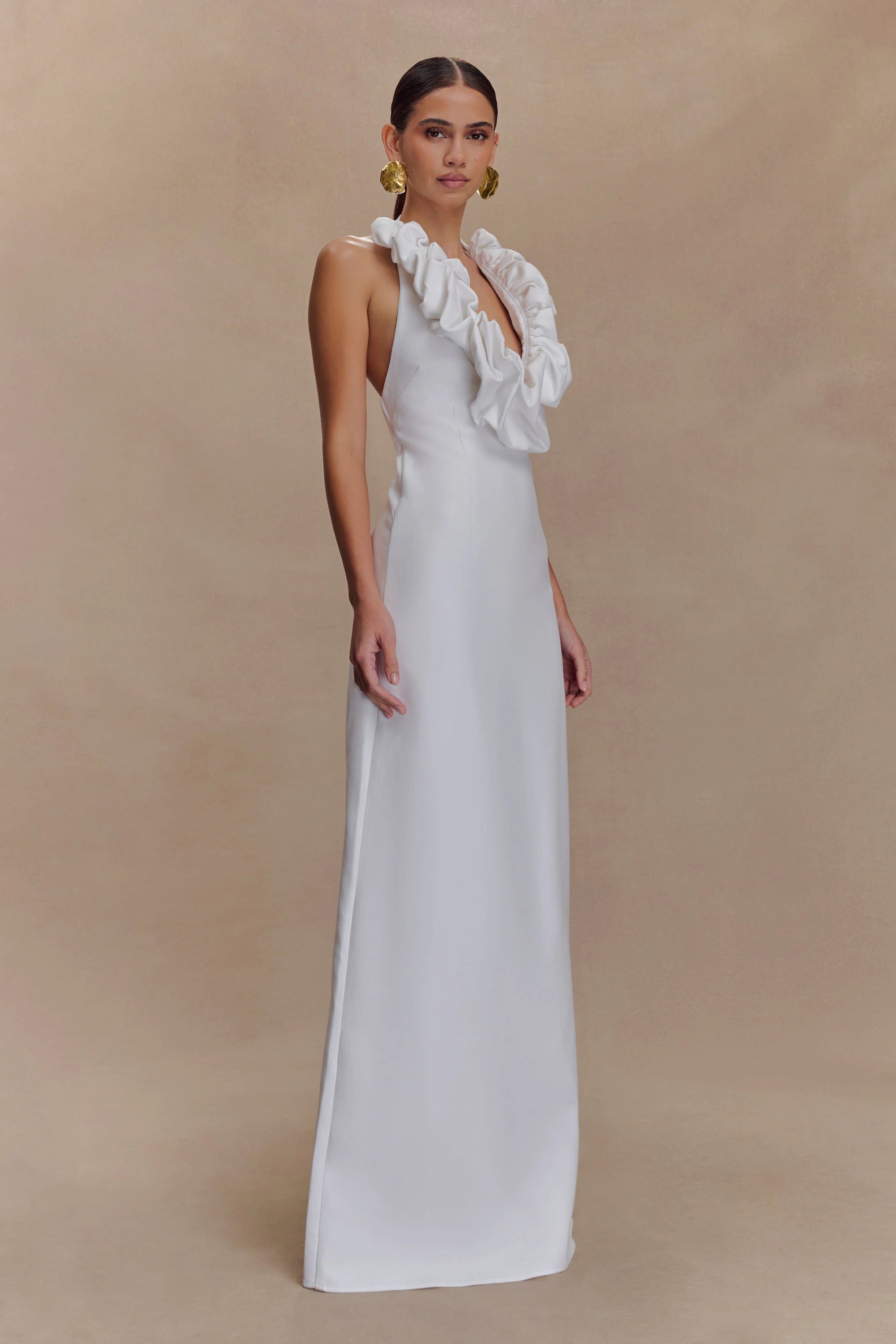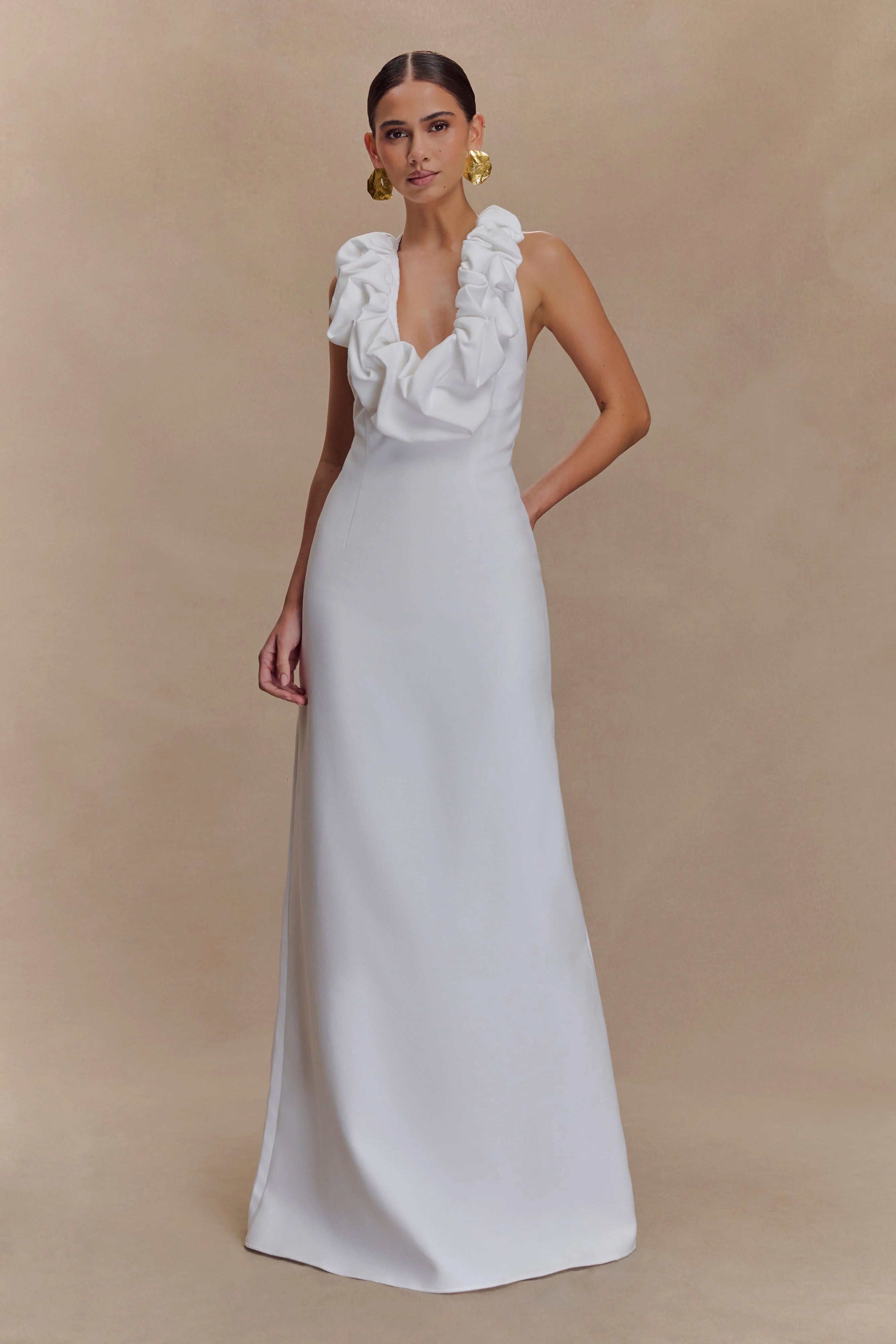 The CAROLYN Linen Bubble Maxi Dress is the perfect blend of playful silhouette and breezy sophistication. Featuring a low bubble neckline and halter neck with button closure, this maxi dress flatters with an airy A-line hem and subtle structure. A back elastic strap ensures a comfortable fit, while a centre back invisible zip keeps the finish clean. Fully lined for effortless wear, this dress is your go-to for sun-soaked days, garden parties, and elevated holiday styling.