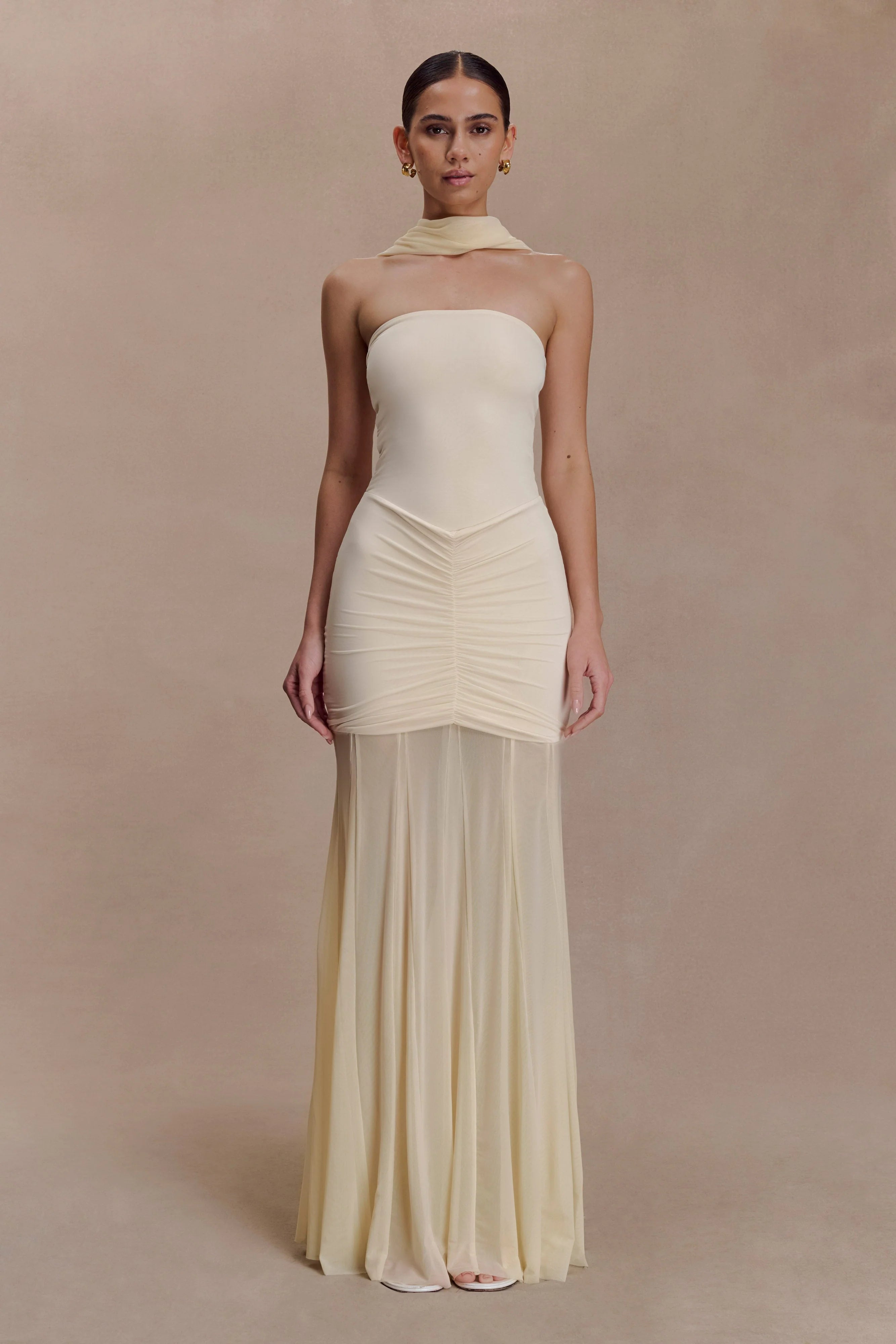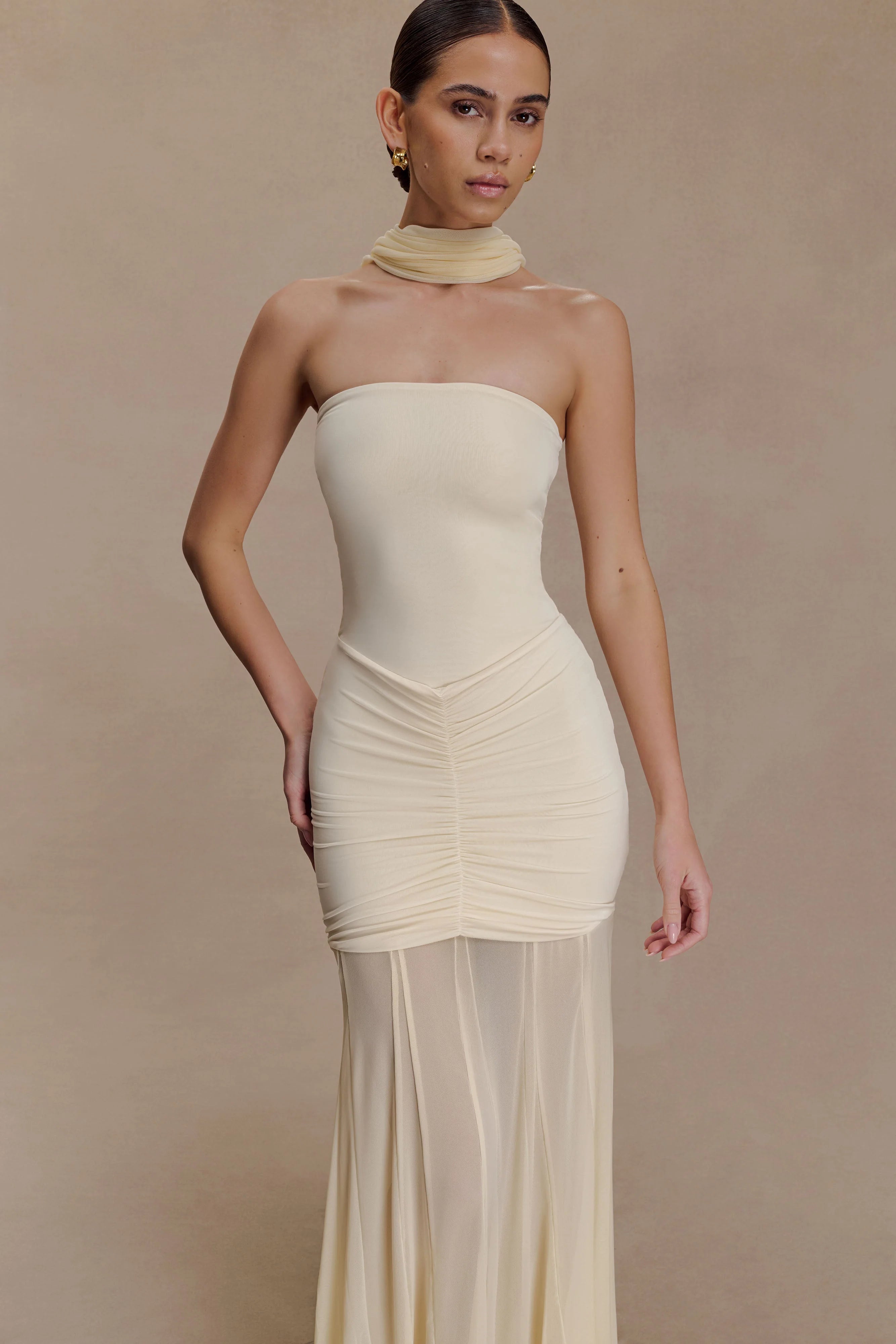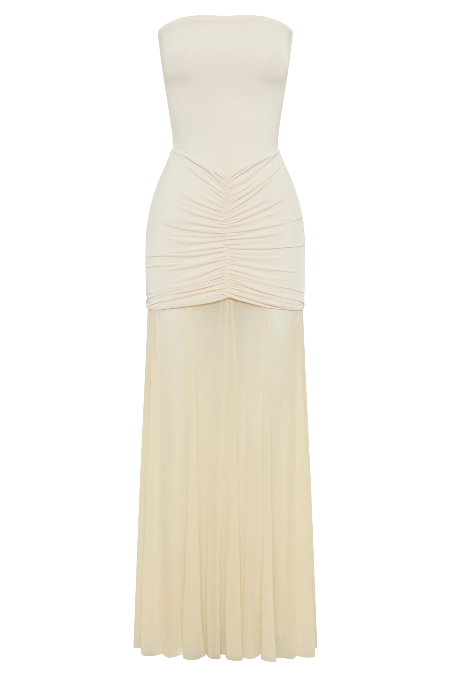 Step into enchanting Stardust Nights with the CASPIAN Slinky And Mesh Off Shoulder Maxi Dress, a captivating blend of allure and sophistication. Boasting a boat neckline and a strapless internal design with an elegant mesh overlay, this dress effortlessly combines glamour with a touch of drama. Ruching detail at the front and back waist enhances your silhouette, ensuring a flattering fit that's as comfortable as stylish. The flowing mesh skirt adds an ethereal charm, while the lined bodice provides comfort and coverage. Perfect for formal events or special occasions, the maxi length exudes grace and refinement, making the Caspian dress a standout choice for evenings filled with magical moments.