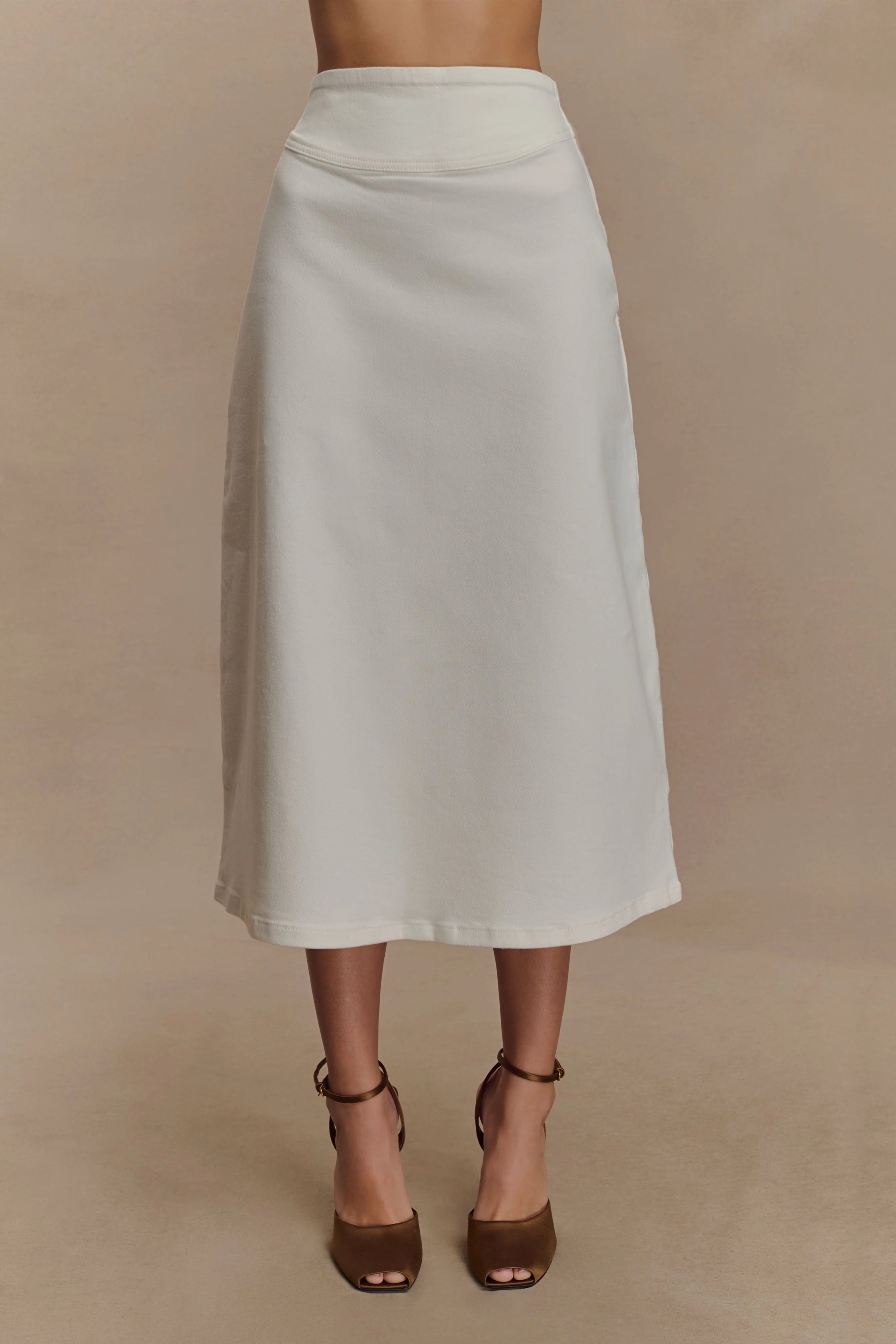 The CECILIA Denim A-Line Midi Skirt brings a fresh take to classic denim. Designed with a flattering high-waisted fit and structured waist yoke, this skirt falls into a soft A-line silhouette that moves effortlessly with you. The midi length adds elegance, while the side zip ensures a clean, seamless finish. Pair with the for a coordinated look that blends soft structure with timeless charm.