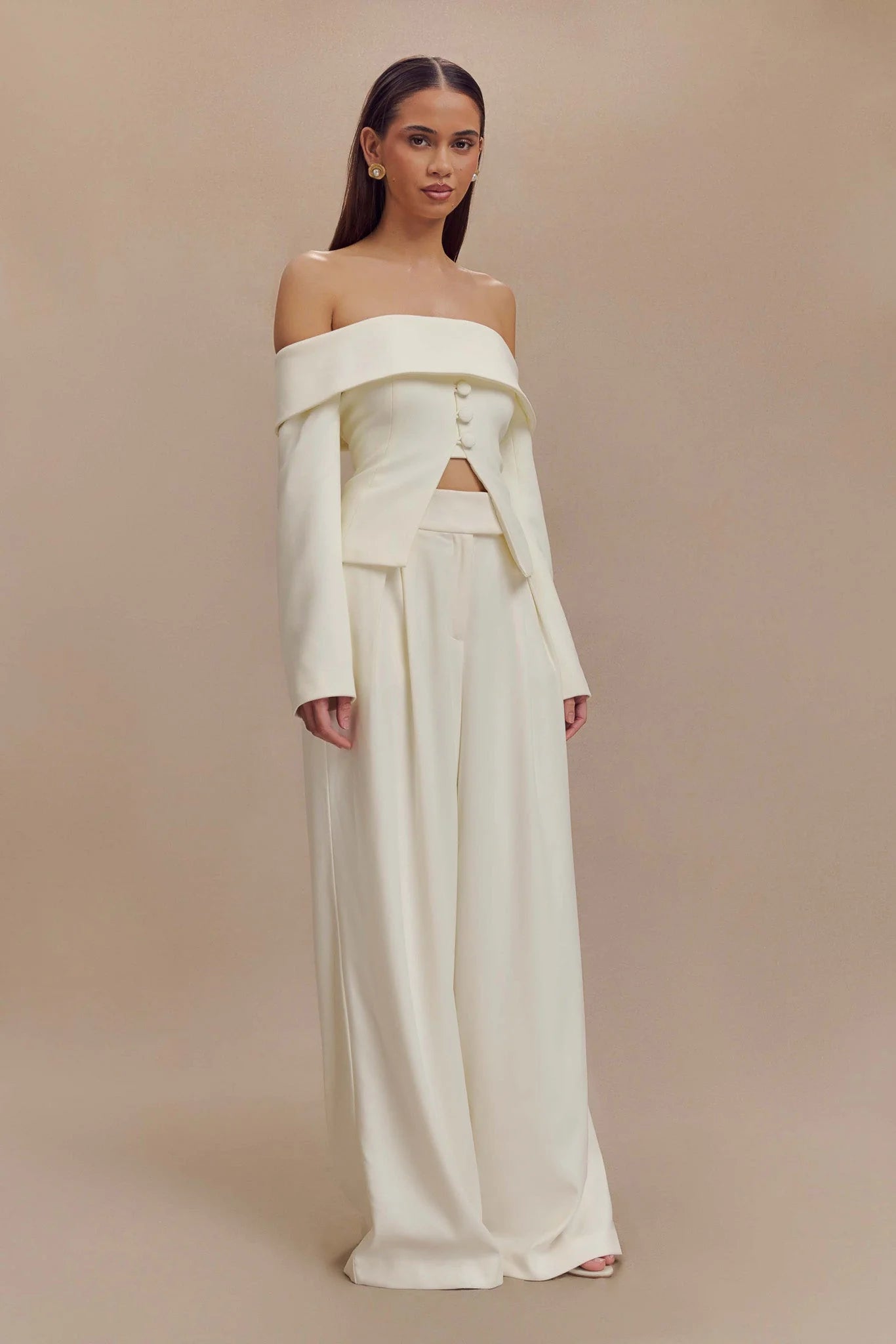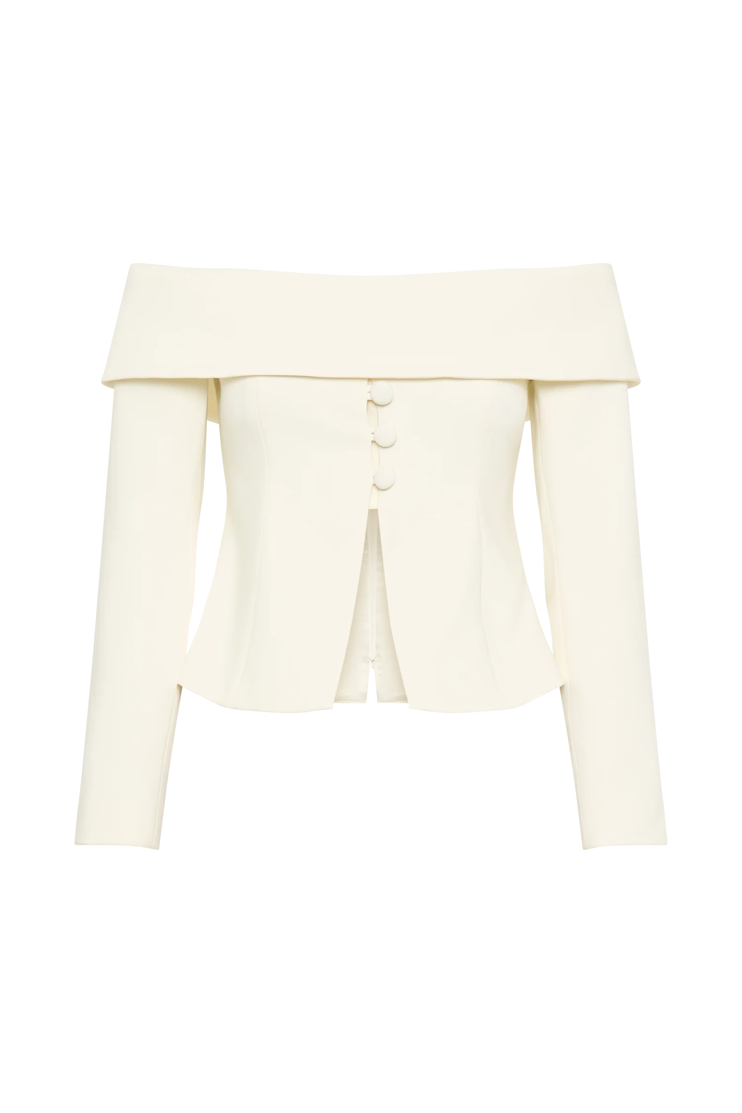 The CELENE Off Shoulder Jacket combines contemporary style with effortless elegance, featuring a Bardot neckline and an off-the-shoulder design for a chic, sophisticated look. The long sleeves and relaxed fit ensure comfort and ease of movement, while the centre front buttons, though non-functional, add a touch of classic detail. The front split and neckline overlay enhance the jacket’s modern appeal. Perfectly paired with the, the Celene Jacket creates a coordinated and fashionable ensemble that transitions seamlessly from day to night, making it a versatile addition to any wardrobe.