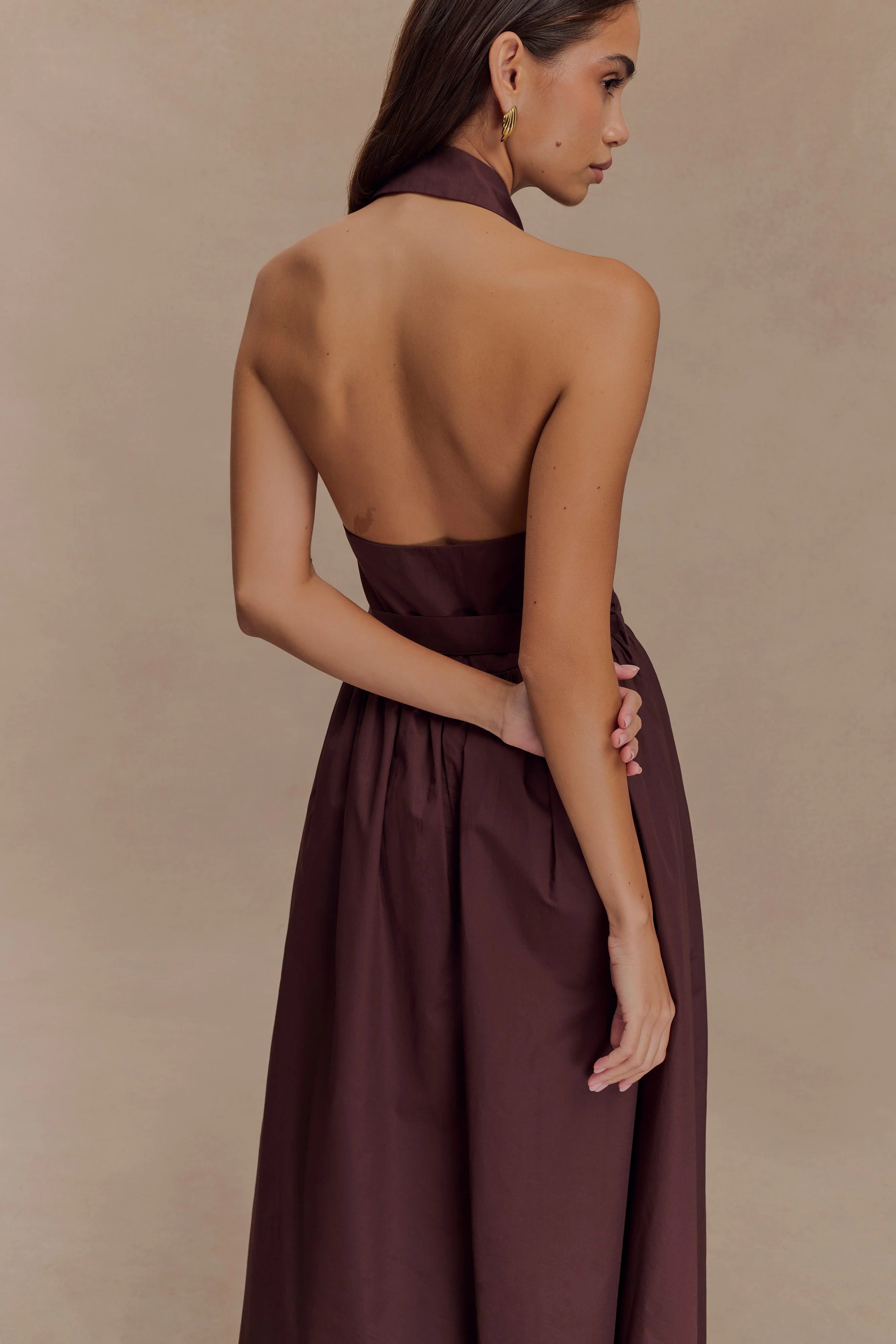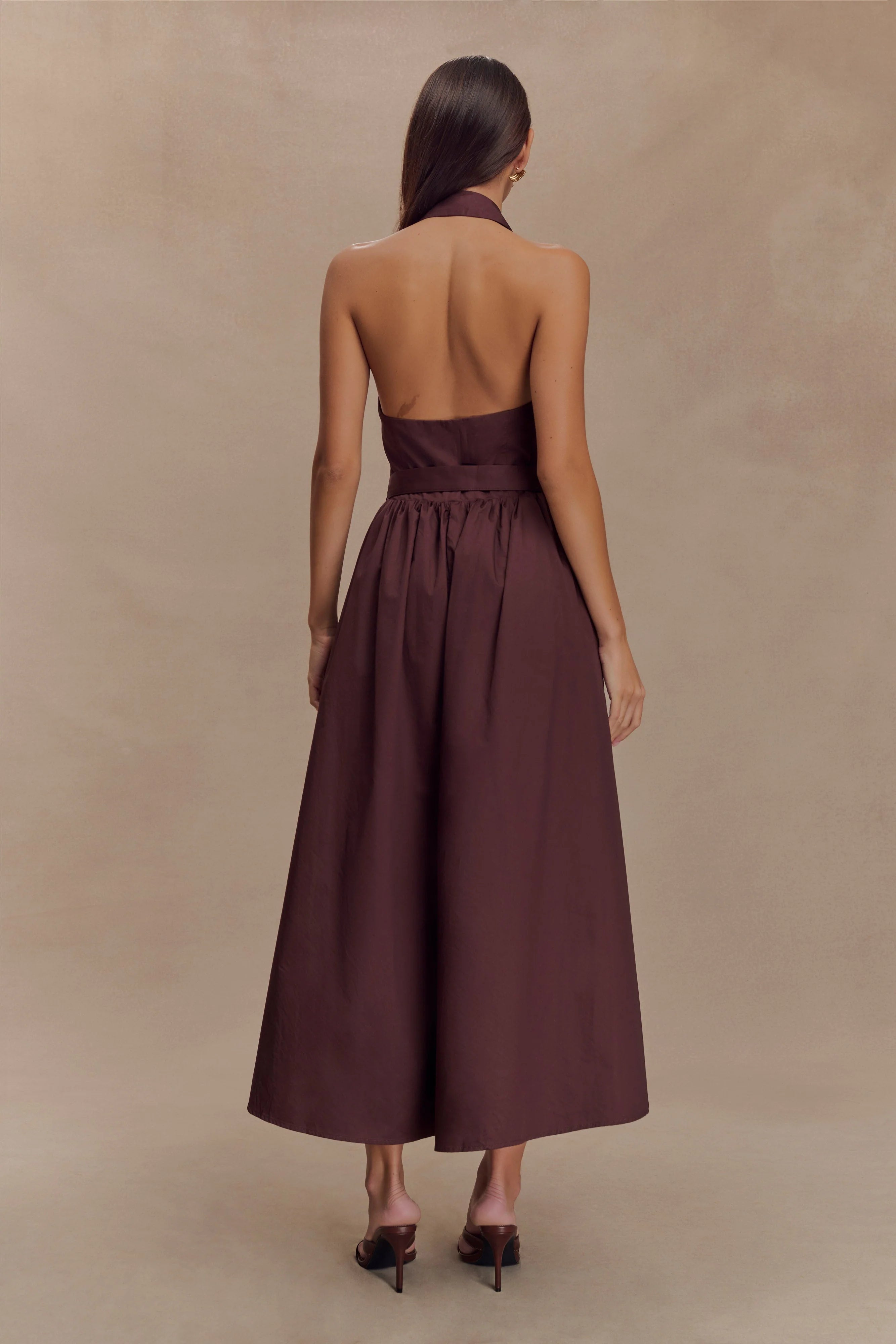 Step into timeless elegance with the CINDY Collared Midi Dress, a halter neck silhouette elevated by a sharp collar and cinched waist. The functional centre front buttons add a touch of vintage appeal, while the full gathered skirt flows effortlessly into a flattering A-line fit. Complete with a coordinating waist belt to define your shape, this dress is your go-to for polished days and dressed-up moments alike.