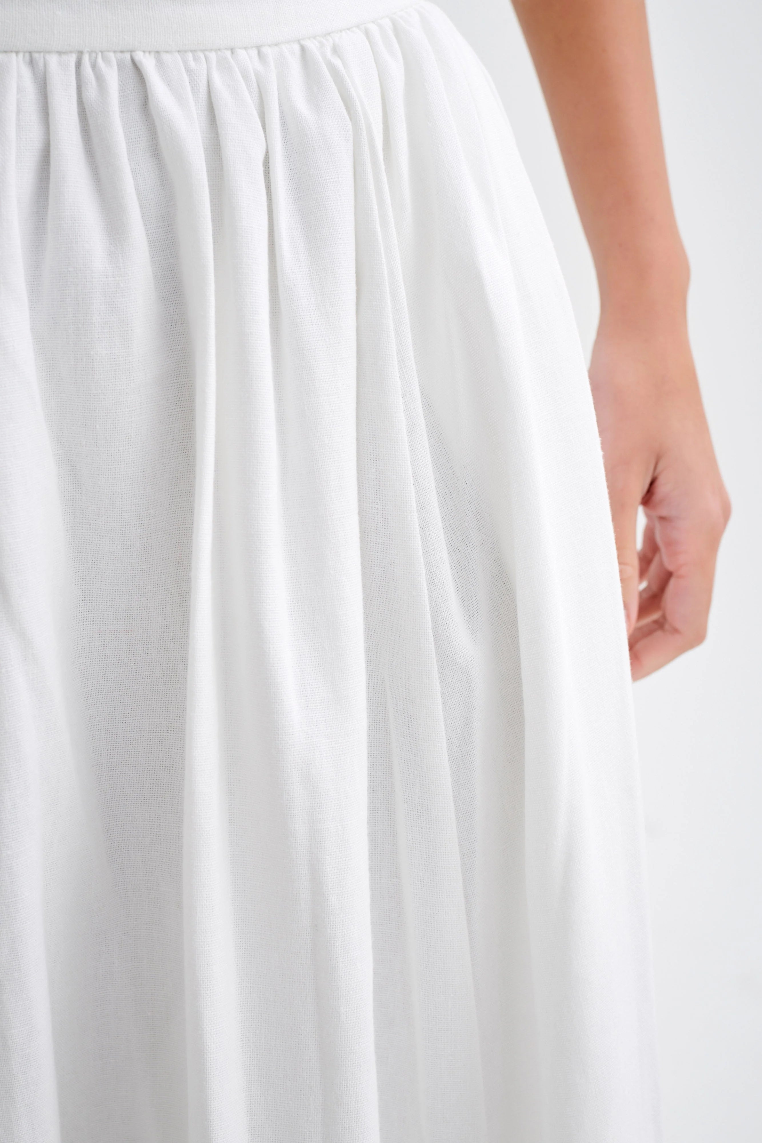 The CLARENCE is an update on the iconic A-line linen maxi skirt. A true statement piece destined to be a core part of your wardrobe, it features a high-waisted silhouette that cinches at the waist, complete with a waistband for added structure and definition. The A-line full skirt cascades gracefully to the floor, creating a sense of movement and fluidity with every step. We've crafted it with a concealed back zipper for a seamless finish.