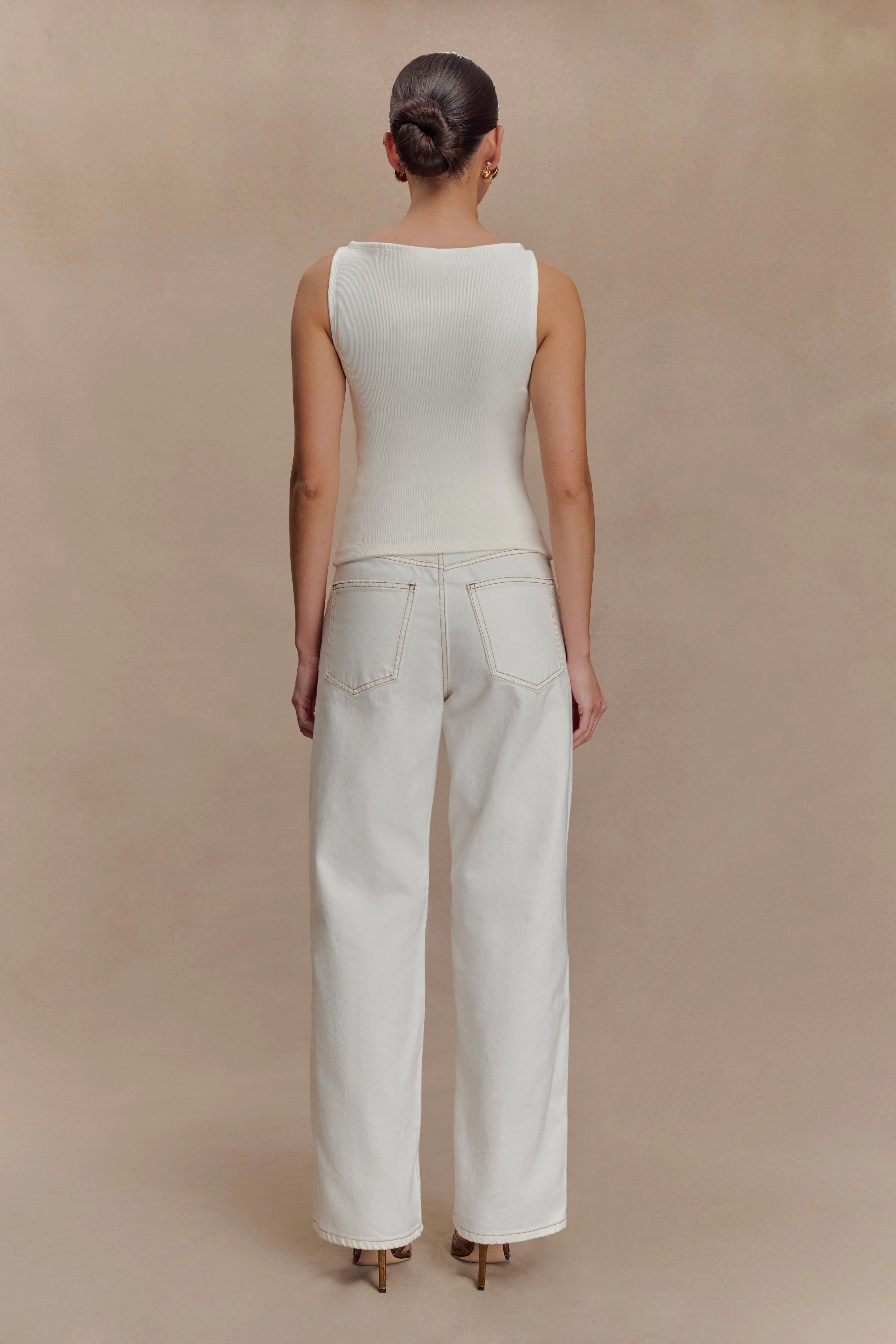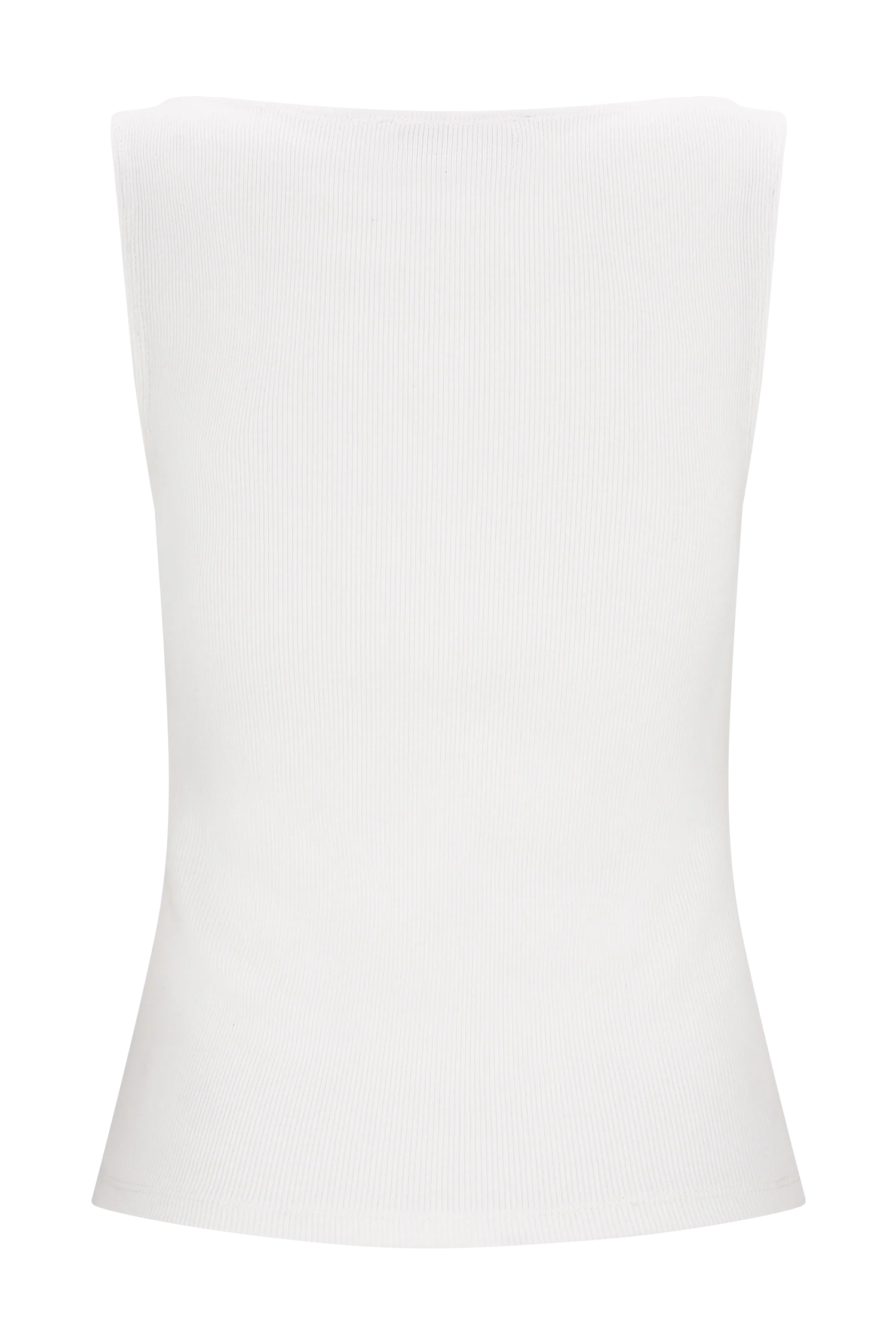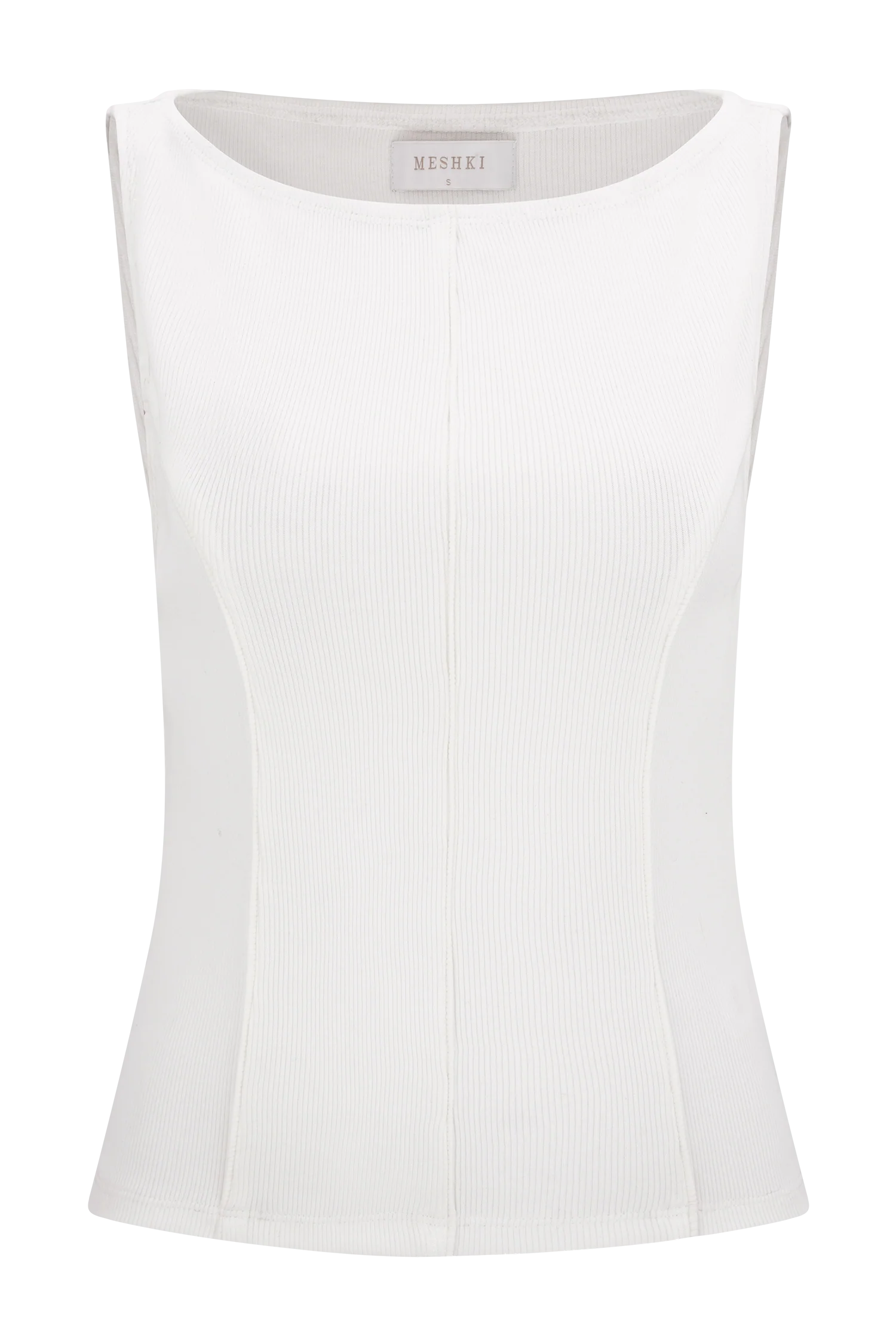 The CORALINE Panelled Sleeveless Top is a study in refined minimalism. Featuring a sleek boat neckline and a sculpted, sleeveless silhouette, this fitted top is defined by its precision panel lines that subtly shape and flatter. Crafted without lining for a lightweight feel, CORALINE pairs seamlessly with tailored pants or soft skirts for a modern take on elevated essentials.