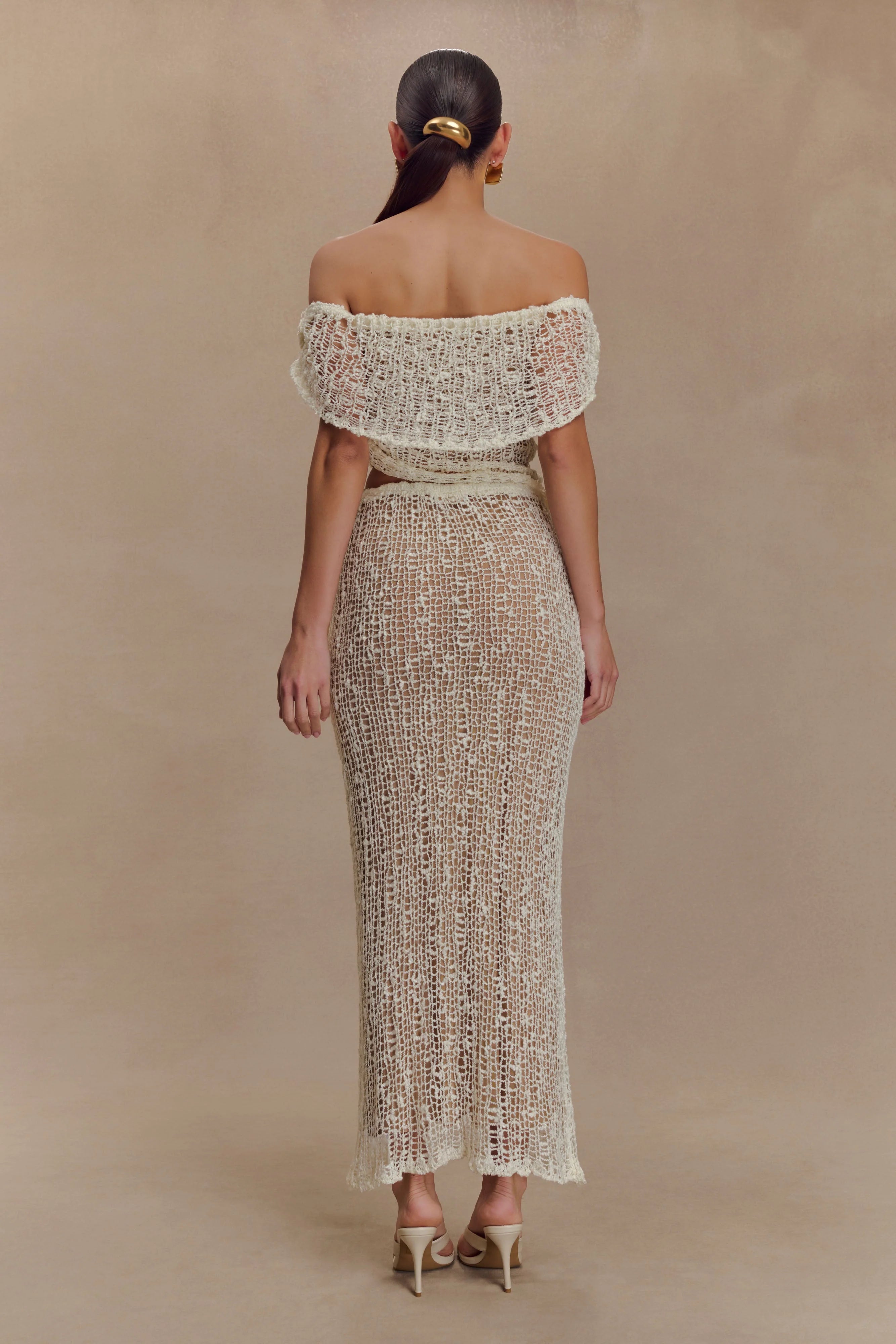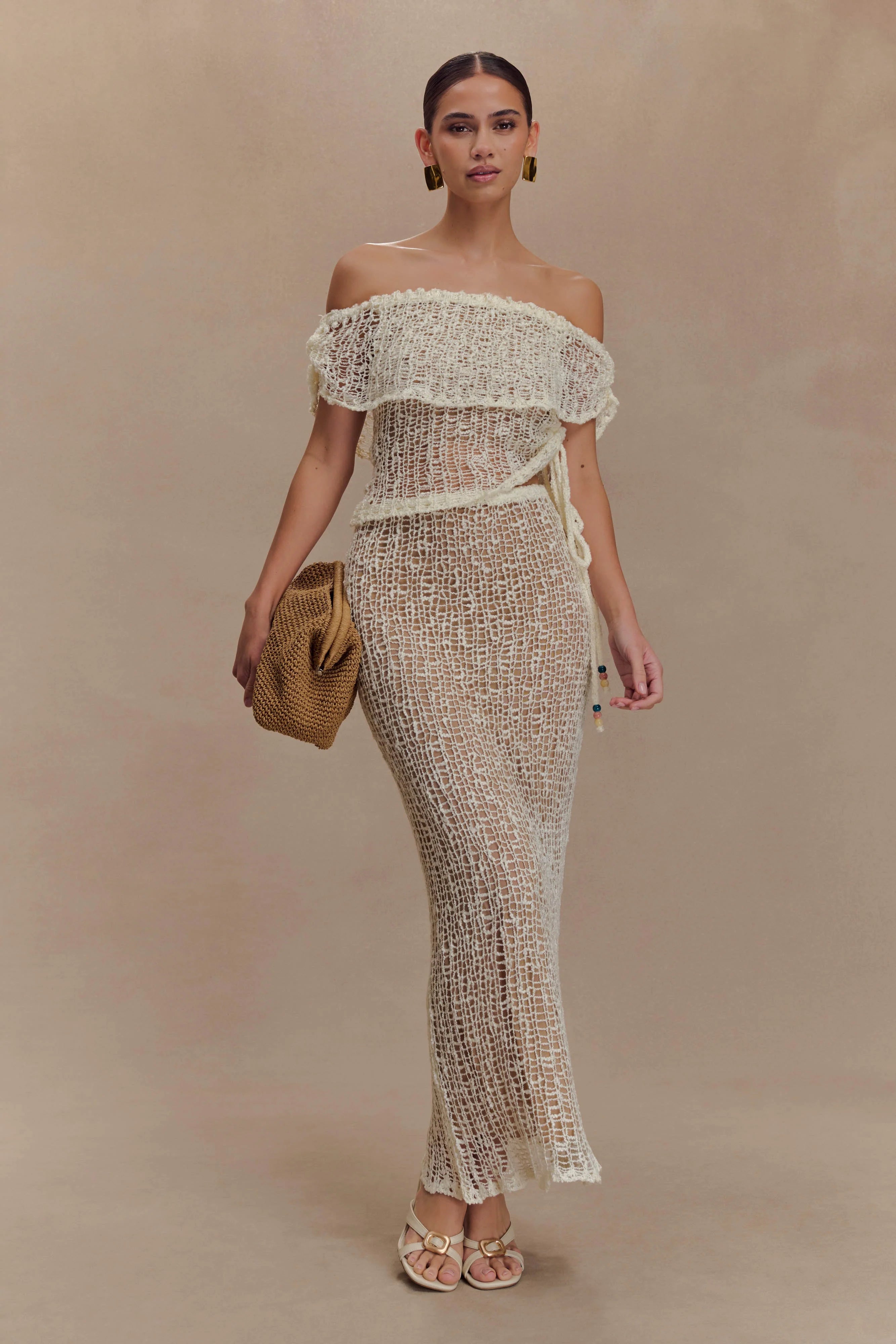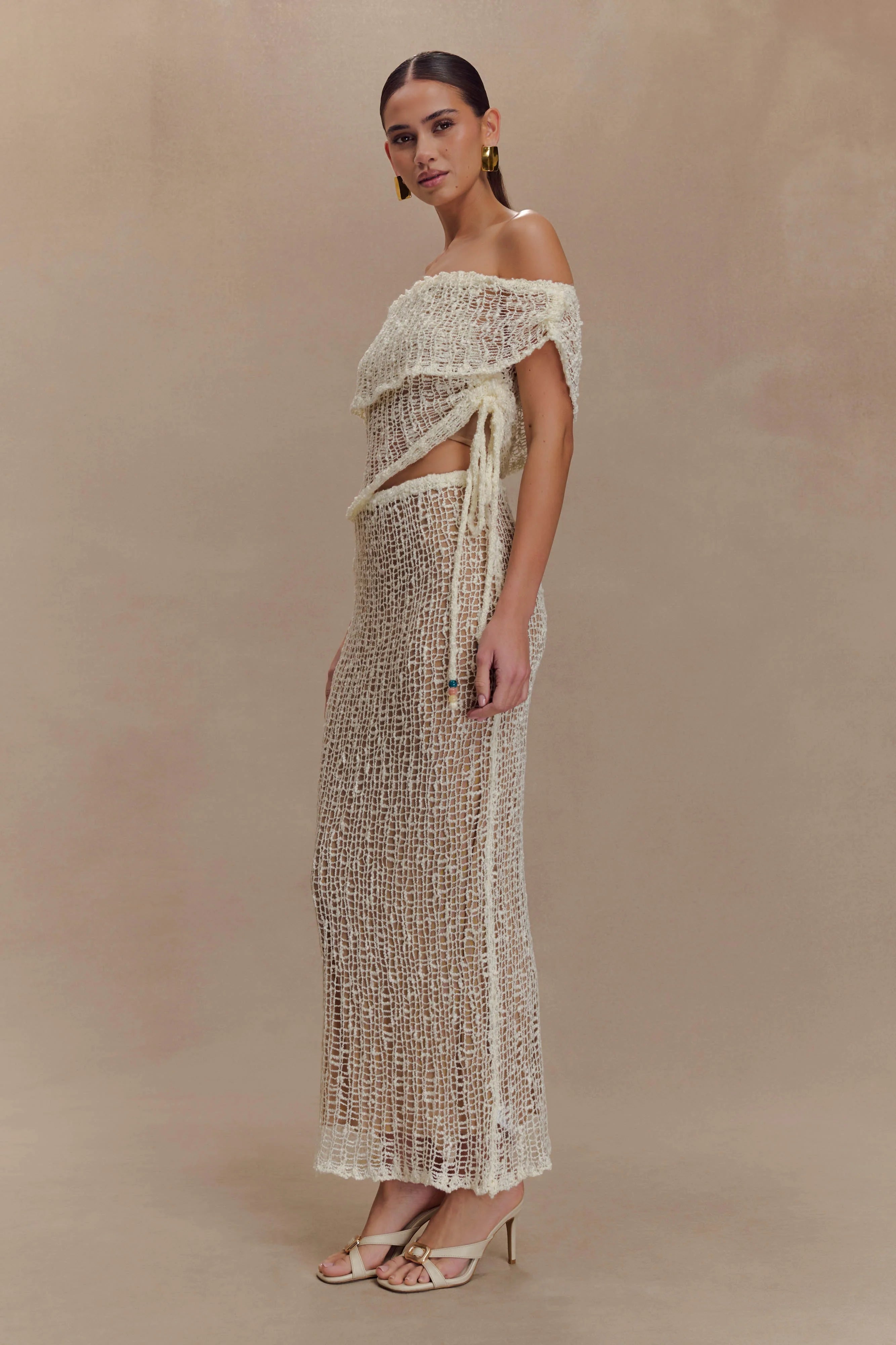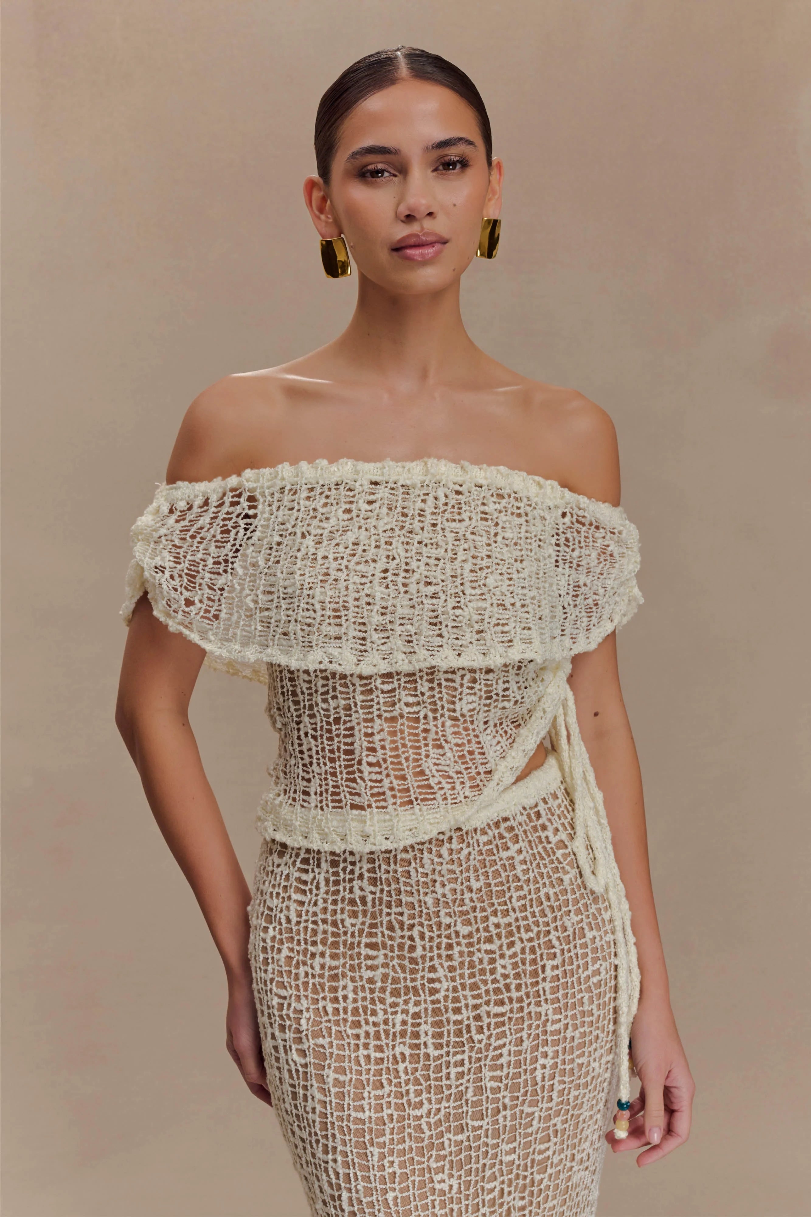 The CORDELIA Off Shoulder Knit Top is your go-to for relaxed sophistication. Crafted in a breathable tape yarn knit, this unlined piece features a flattering off-the-shoulder neckline with a softly gathered overlay. The ruched side waist and asymmetrical hemline create a sculpted, feminine silhouette that pairs perfectly with everything from wide-leg trousers to summer denim. Designed for effortless styling, this top is the elevated essential your wardrobe didn’t know it needed.