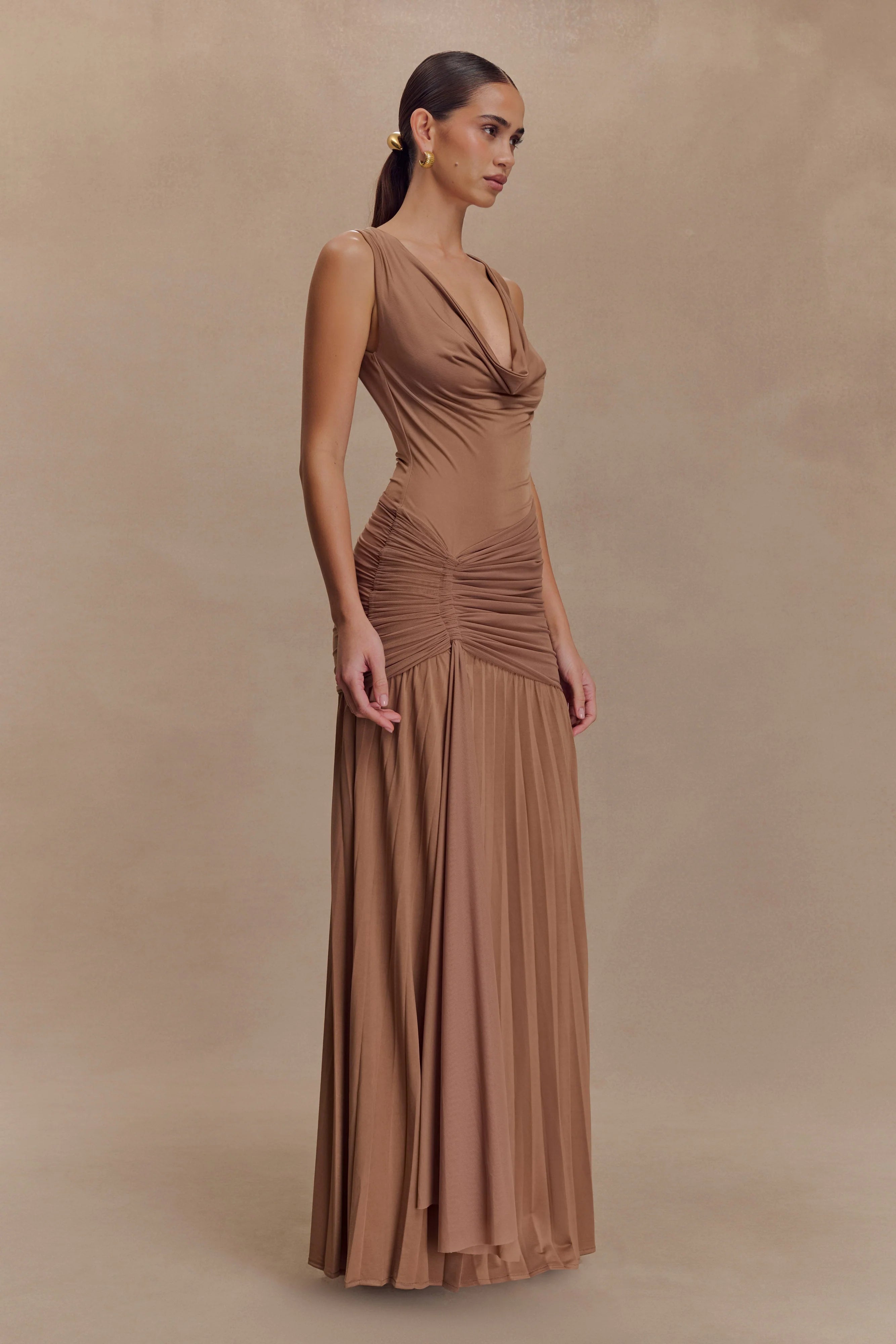 Turn heads in the DANIA Cowl Neck Slinky Maxi Dress — where timeless allure meets modern finesse. Featuring a deep, draped cowl neckline and a figure-hugging silhouette, this dress is crafted to flatter from every angle. The fully lined design ensures comfort and coverage, while the ruched hip detail and pleated skirt sculpt and elongate your frame. With a clean, closed back and floor-grazing length, this is your go-to piece for statement elegance with a sleek finish.