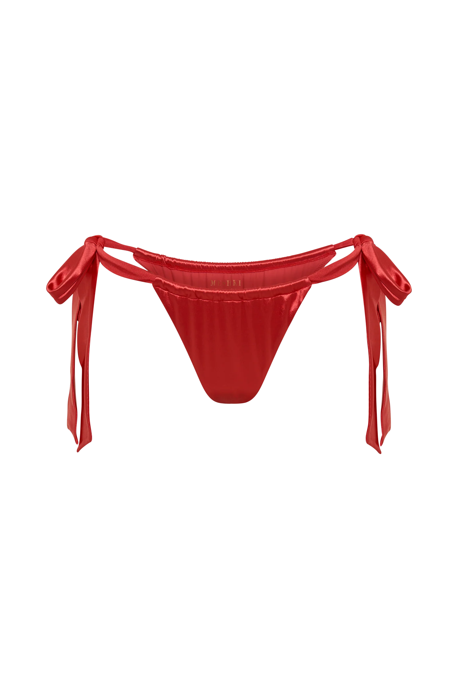 The DANIKA Satin Knot Bikini Bottom offers adjustable coverage for a customised fit, perfect for any beach or poolside occasion. Featuring a stylish thick side tie brief, these bikini bottoms provide both comfort and a secure fit. The luxurious satin fabric adds a touch of elegance, while the full lining ensures confidence and comfort. These versatile and chic bikini bottoms are a must-have for your swimwear collection. Complete the look with the .