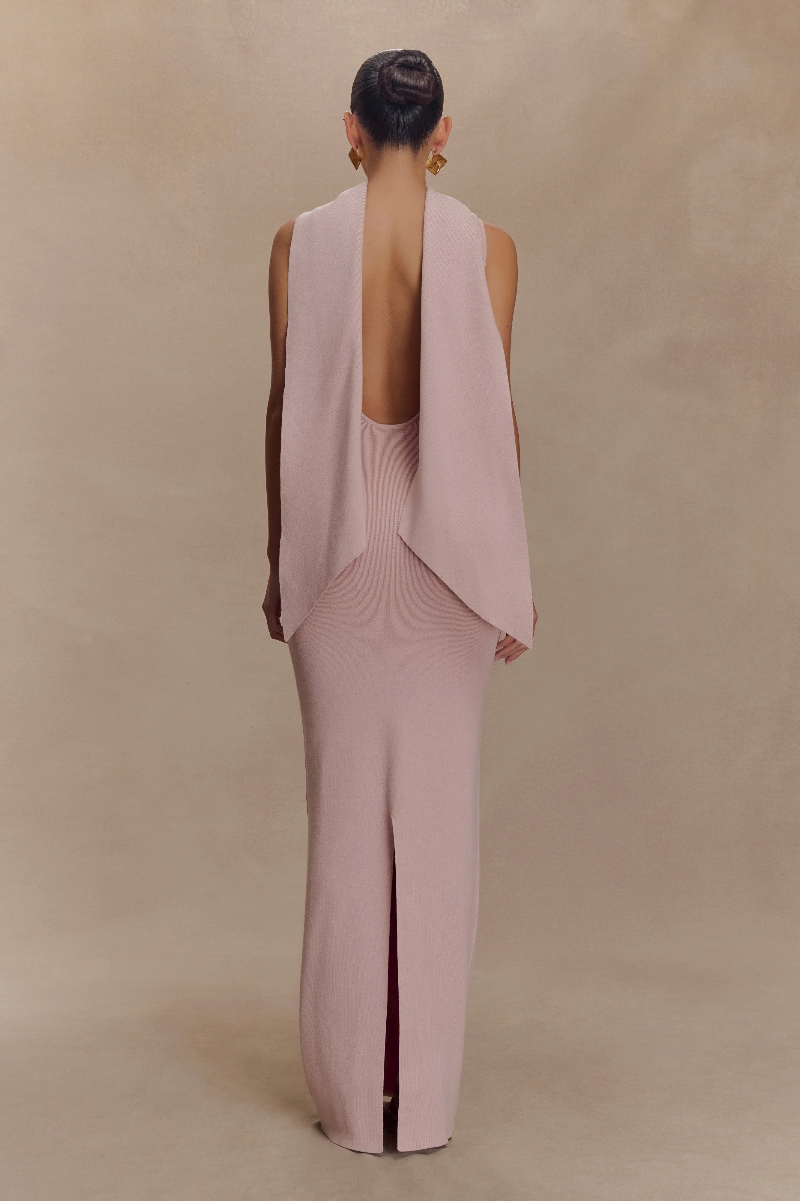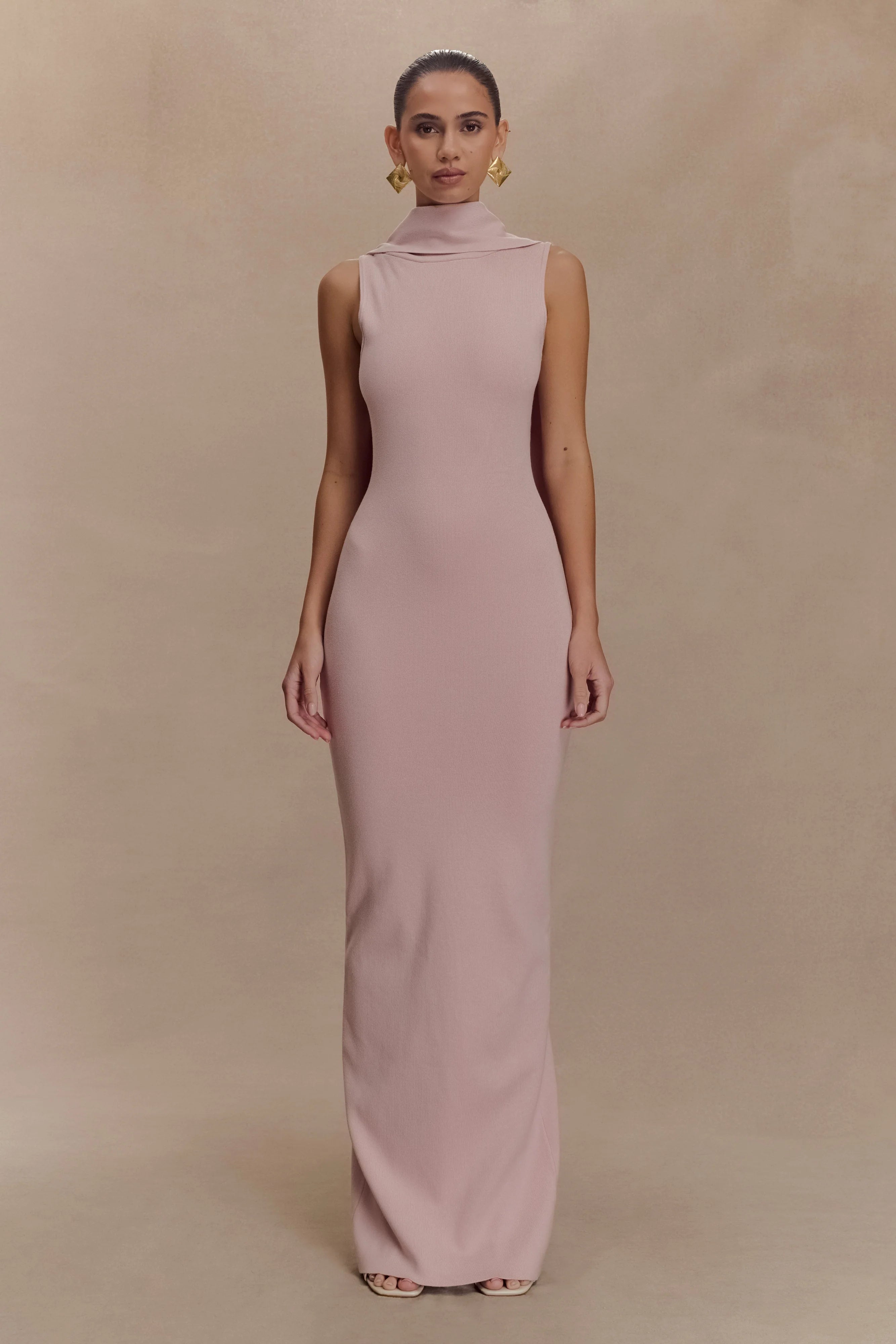 The DARBY Knit Scarf Maxi Dress is a refined take on minimal dressing with a modern twist. Featuring a sleeveless, fitted silhouette and open back, this maxi-length style is finished with a back vent for ease of movement. The attached scarf neckline adds a soft, statement-making touch—whether tied, draped, or styled your way. Perfect for transitioning from day to night, this dress is the definition of sleek simplicity with elevated edge.