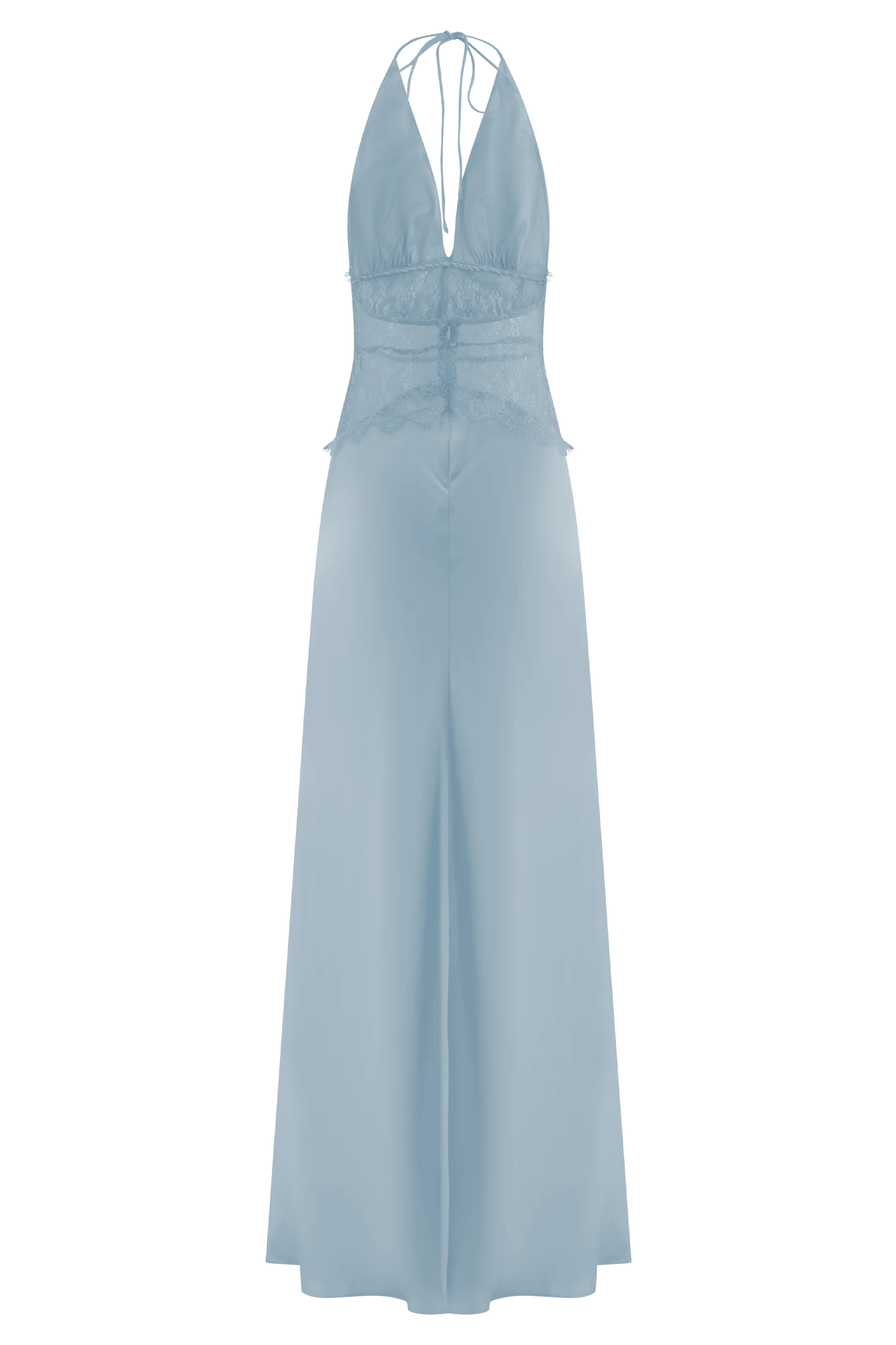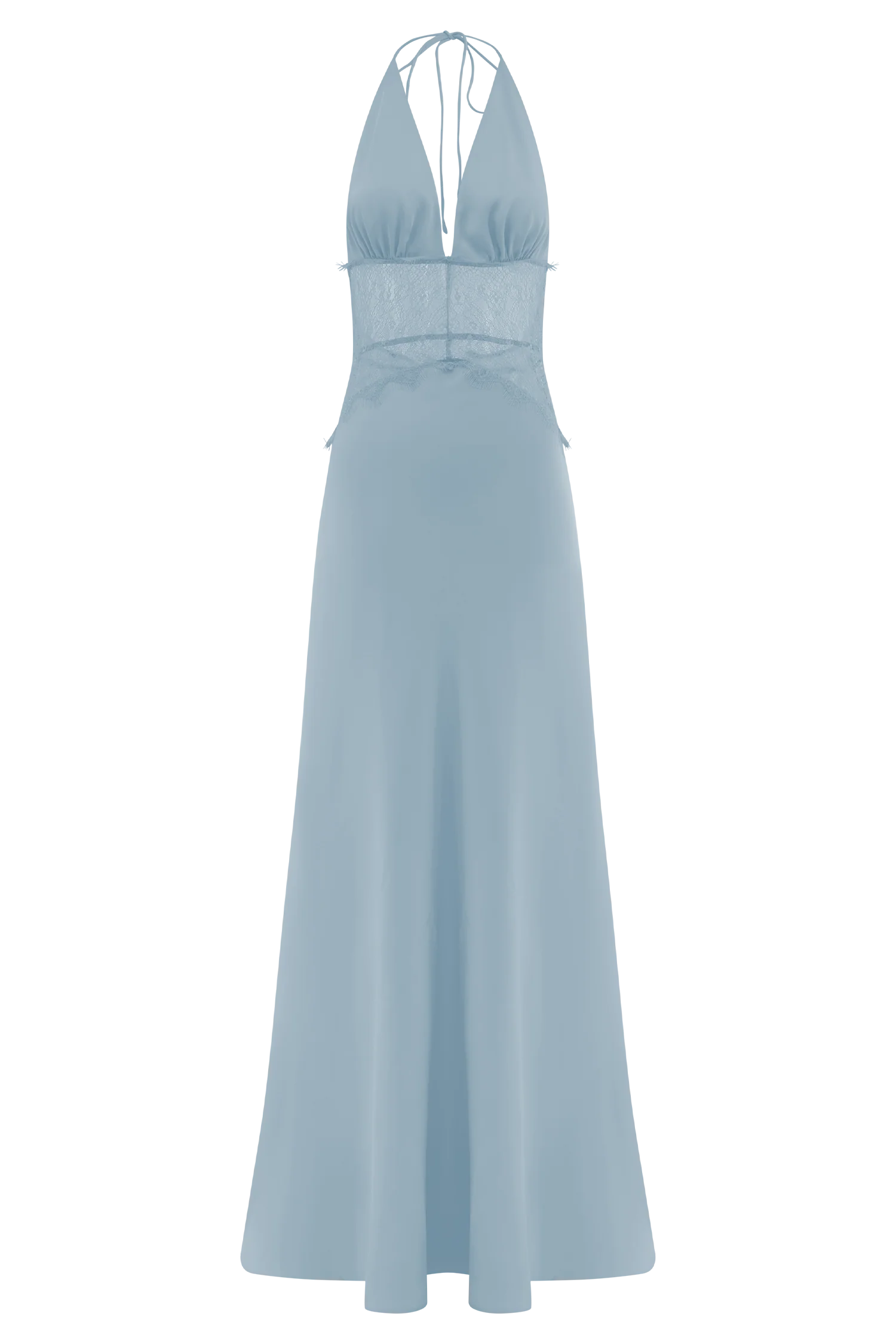 Turn heads in the DINAH Lace and Satin Maxi Dress, a romantic silhouette that blends soft textures with sultry details. Featuring a halter tie V neckline and softly gathered bust, this dress flows into a sheer lace body that skims the figure with ease. The low back adds a touch of drama, while the maxi length and invisible zip create a seamless finish. Partially lined for subtle coverage, this dress is the epitome of slip-on elegance with an irresistible edge.