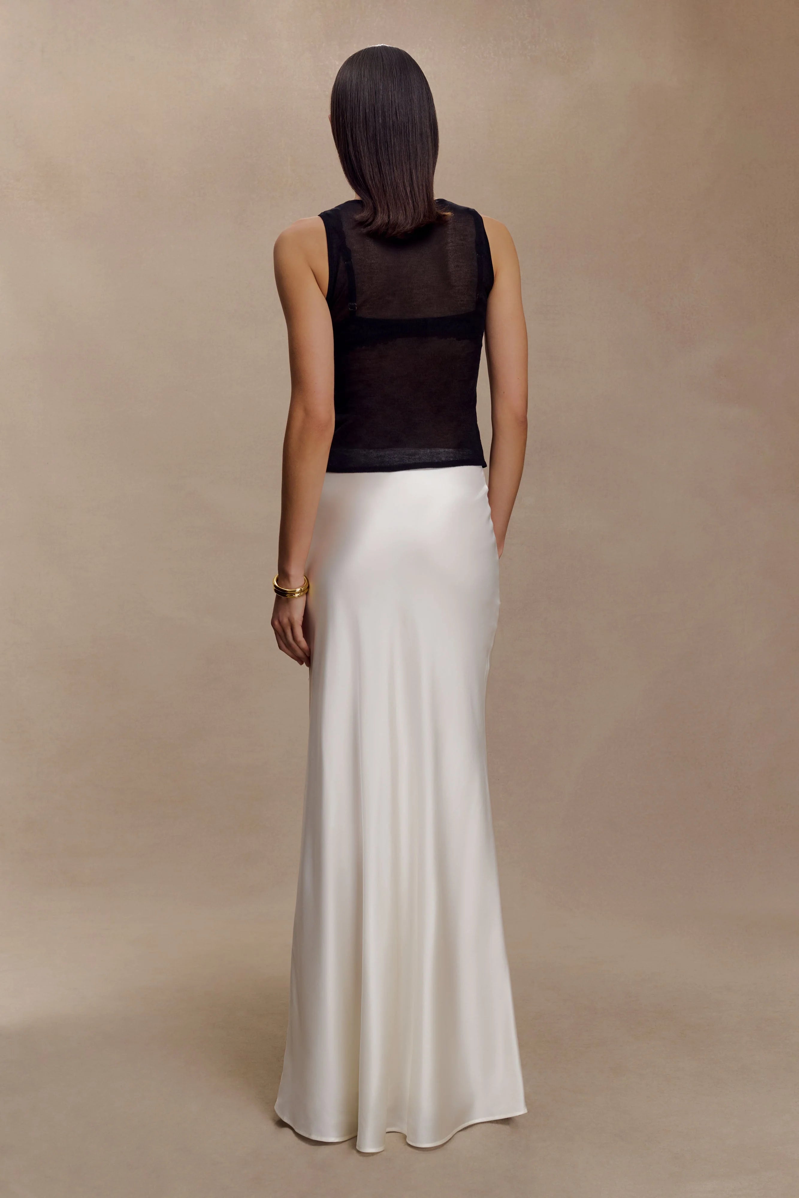 The DOLLIE Sheer Knit Tank Top is a versatile essential designed with a modern edge. Featuring a classic crew neckline and a sleeveless cut, it’s crafted from a sheer knit fabrication that offers a lightweight, breathable feel. Cut to a longline silhouette, this top layers effortlessly over bralettes, swimwear, or tailored bottoms—bringing understated elegance to both day and evening looks.