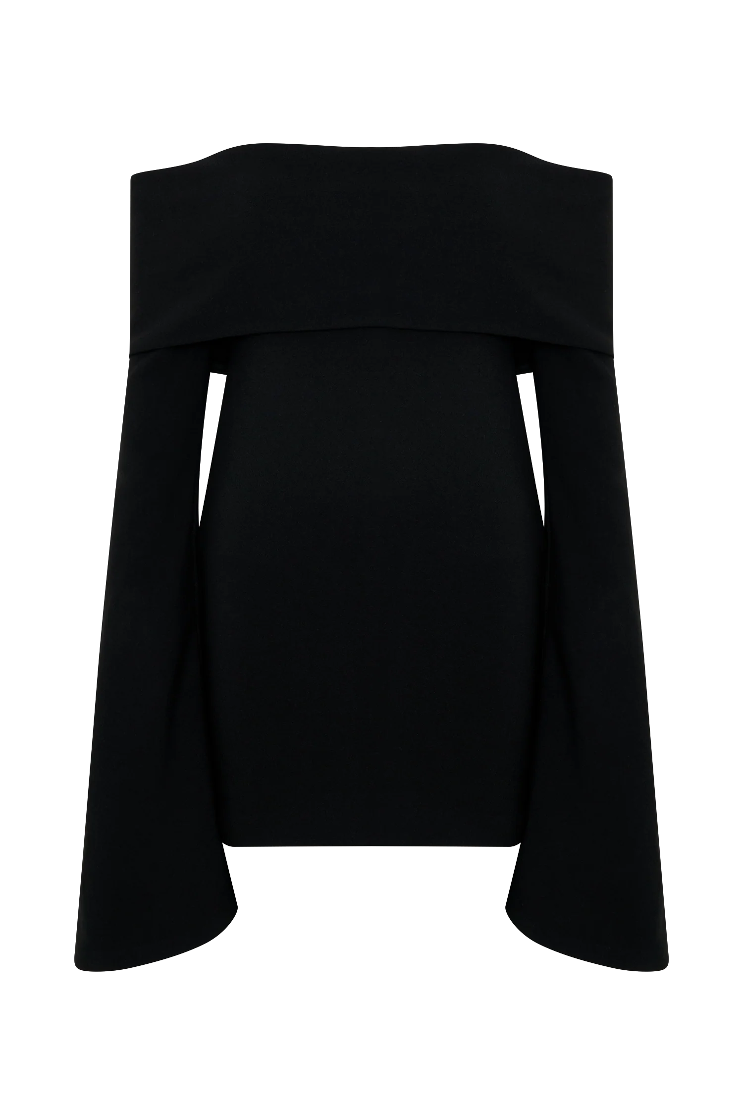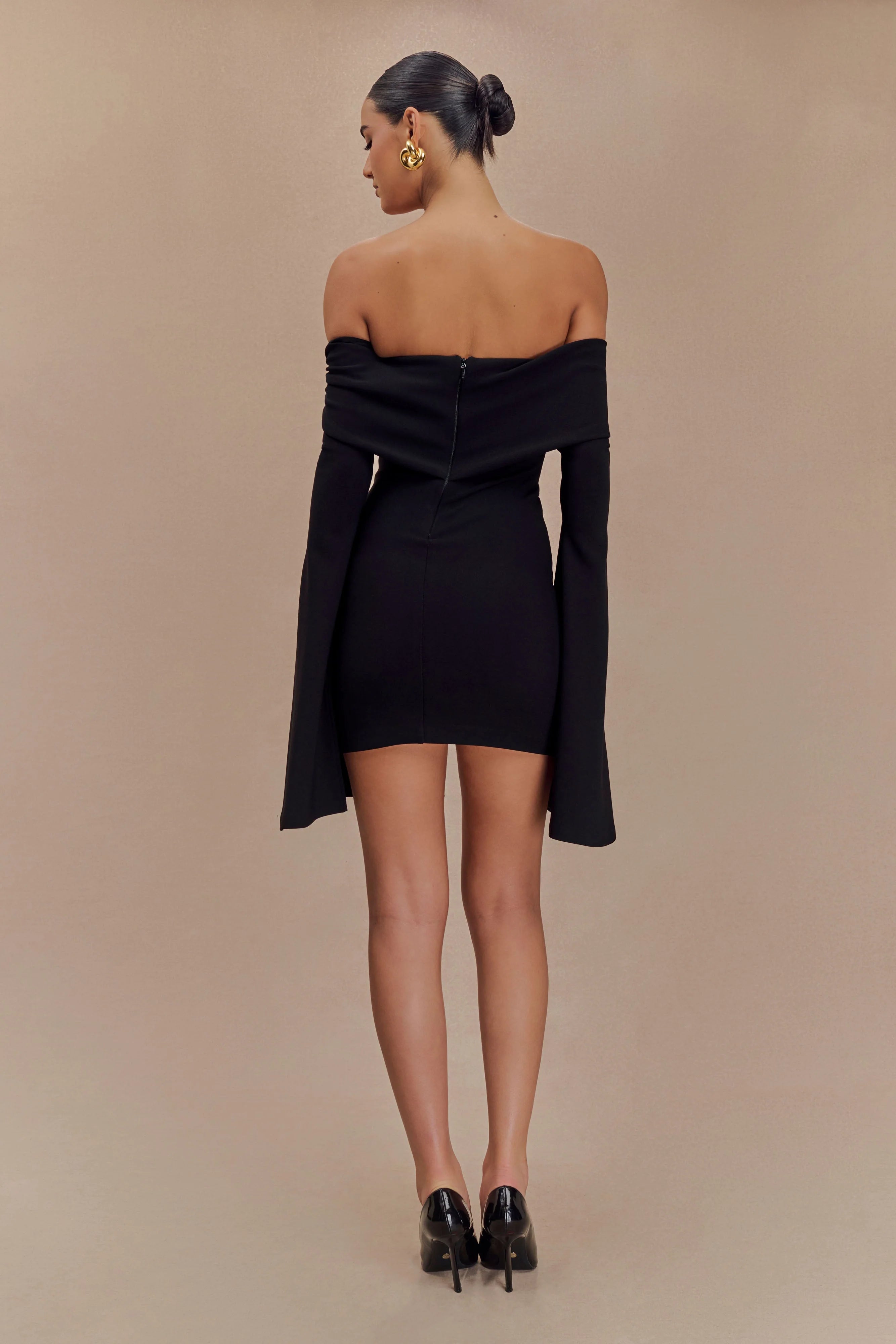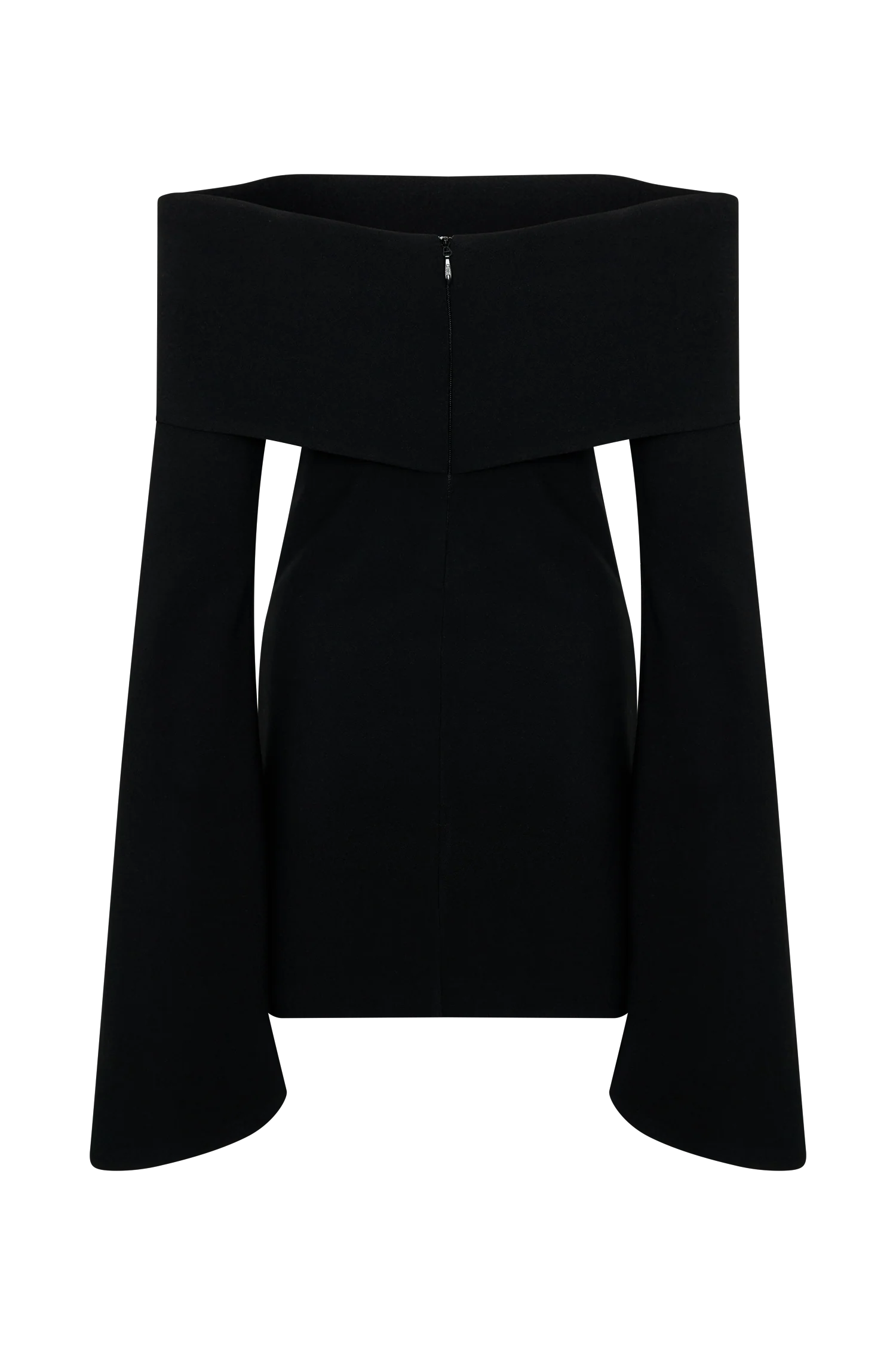 Step into elegance with the DOMINIQUE Off Shoulder Long Sleeve Mini Dress. This striking design features an off-the-shoulder neckline that highlights your collarbone, while the ruched overlay adds a touch of texture and allure. The long flared sleeves bring a dramatic flair, perfectly balancing the fitted silhouette that hugs your curves. Crafted from a stretch fabrication for comfort and ease of movement, this mini-length dress ensures a flattering fit. Finished with a centre back zip closure for a seamless look, this dress is your go-to for turning heads at any occasion.