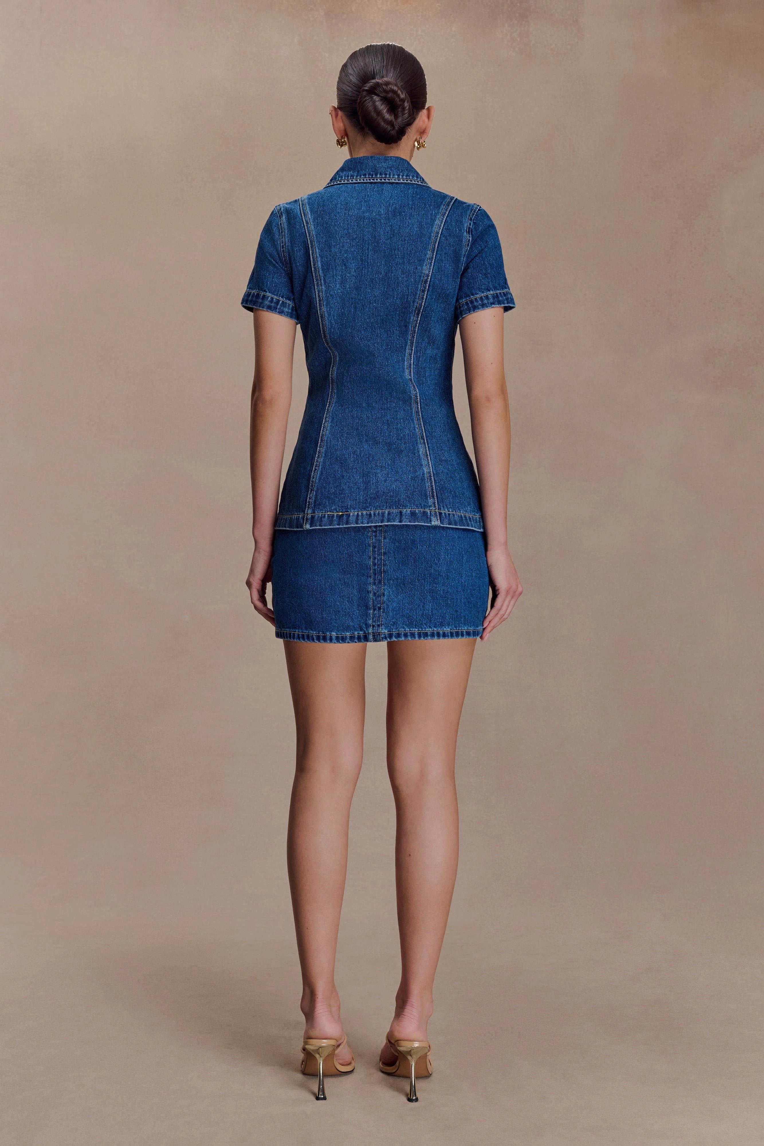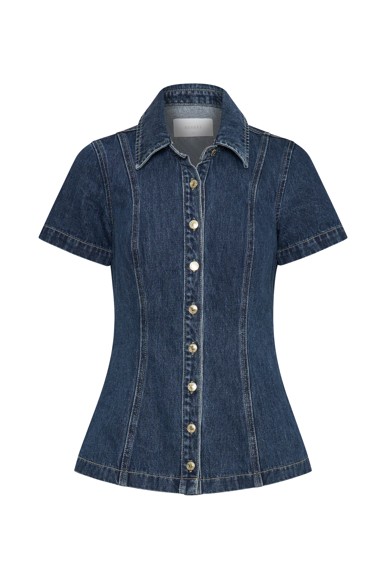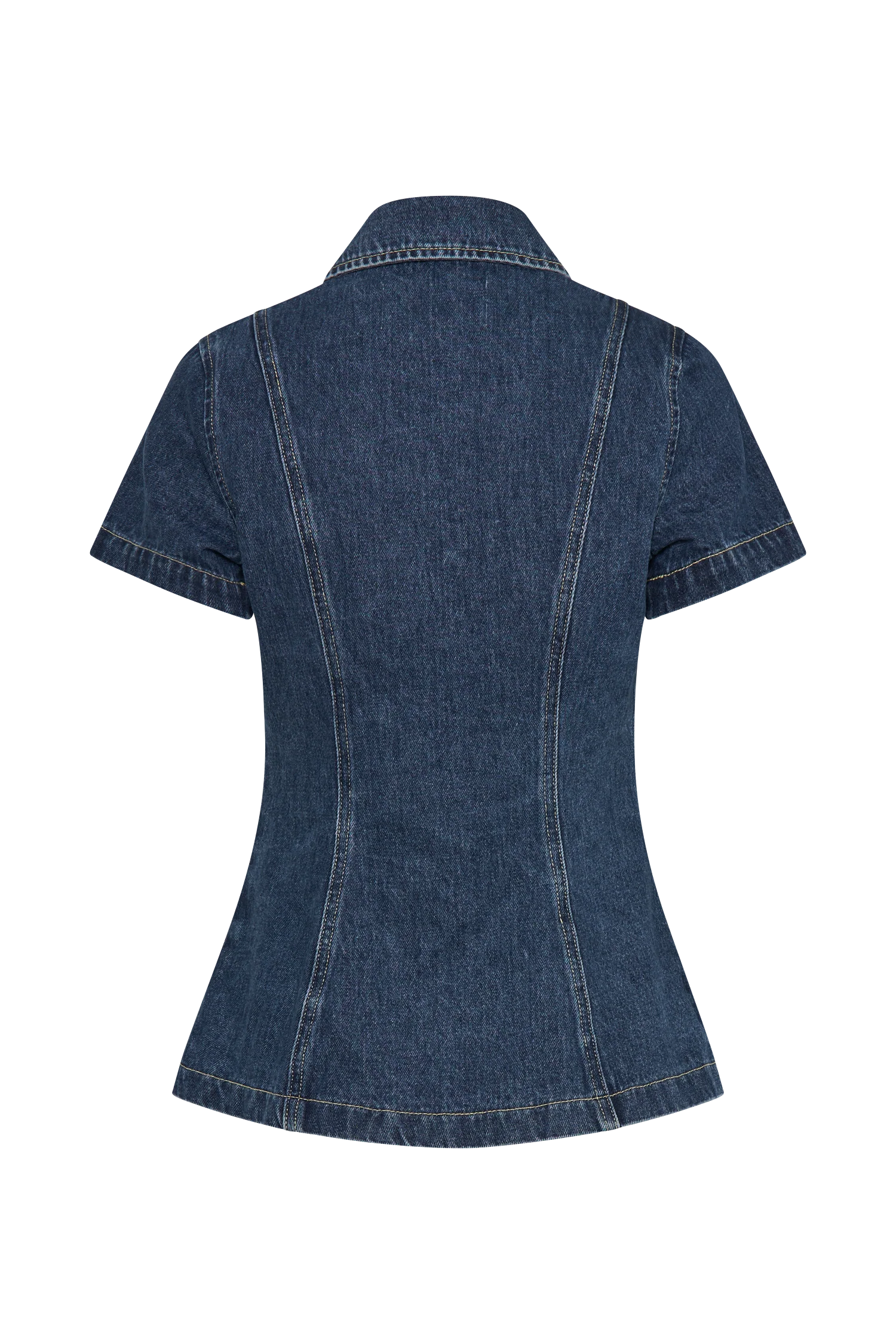 Explore the versatility of the ELLIE Denim Short Sleeve Top, a chic addition to your wardrobe. With its button front and collared neckline, this top exudes classic charm with a modern twist. The short sleeves and slim fit offer a flattering silhouette suitable for any occasion. Unlined for lightweight comfort, it ensures effortless style and ease of wear. Elevate your ensemble with the Ellie Denim Short Sleeve Top, where timeless sophistication meets contemporary flair. Pair with the for a complete look.