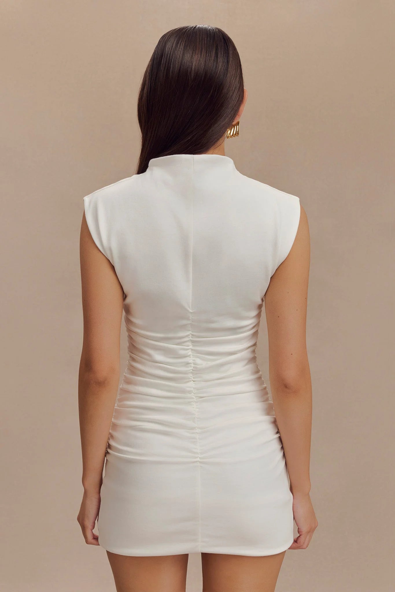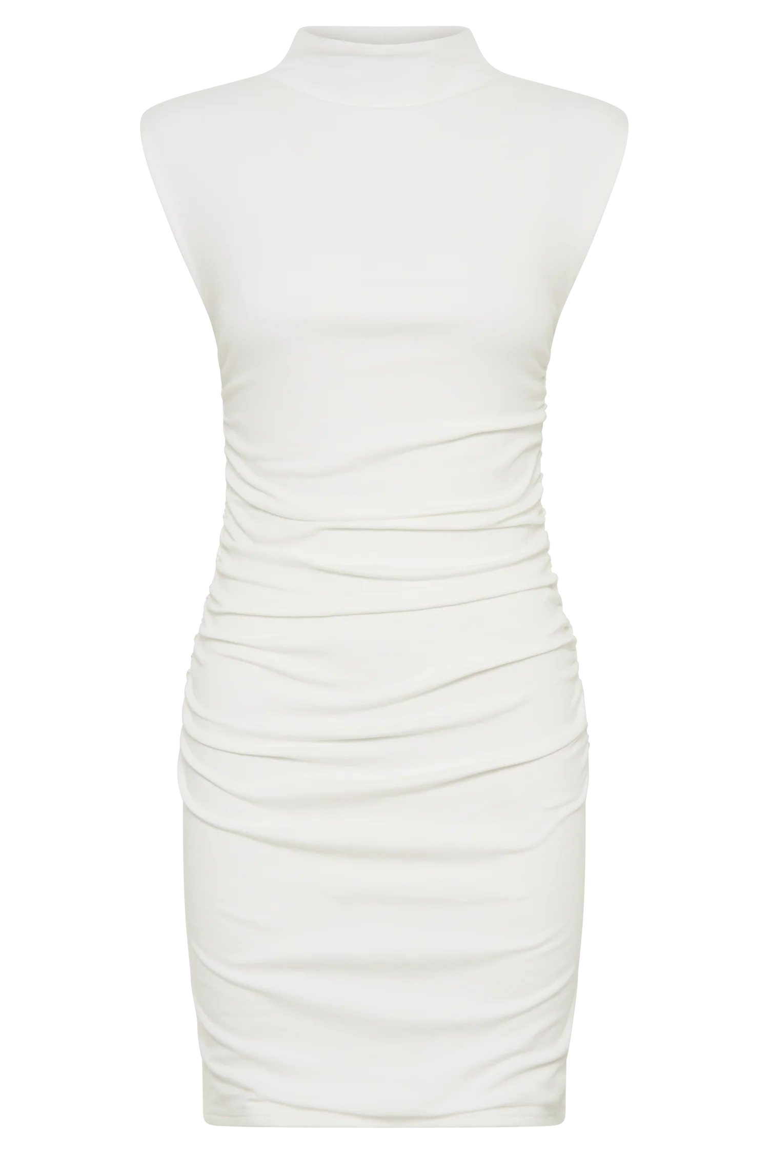 The ELLIOT High Neck Sleeveless Mini Dress is a striking combination of elegance and contemporary design. Featuring a high neckline and sleeveless cut, this dress offers a sleek, sophisticated look. The ruched side details add texture and visual interest, creating a flattering silhouette. Lined for comfort and structure, and crafted from soft jersey fabrication, the Elliot Dress provides a smooth and comfortable fit. With its mini length, it’s a chic and versatile choice for various occasions, effortlessly blending style with ease.