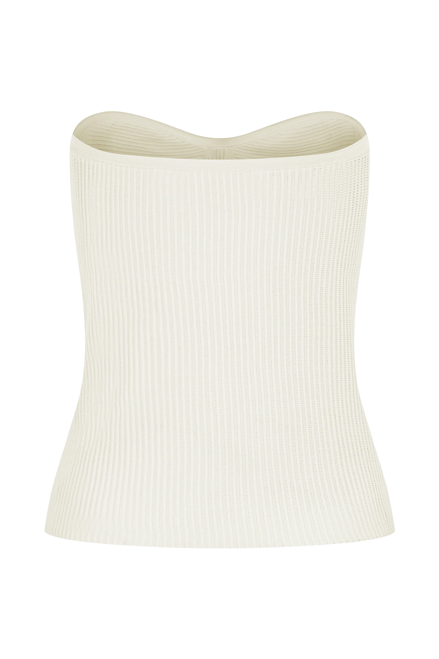 The ELODIE Strapless Cupped Knit Top is where structure meets stretch. Designed in a sculpting ribbed knit, it features built-in bust cups for shape and support, and internal grip tape to keep everything comfortably in place. The longline silhouette flatters the waist and transitions seamlessly from day to night. Pair it with pants or denim for an effortlessly refined look.