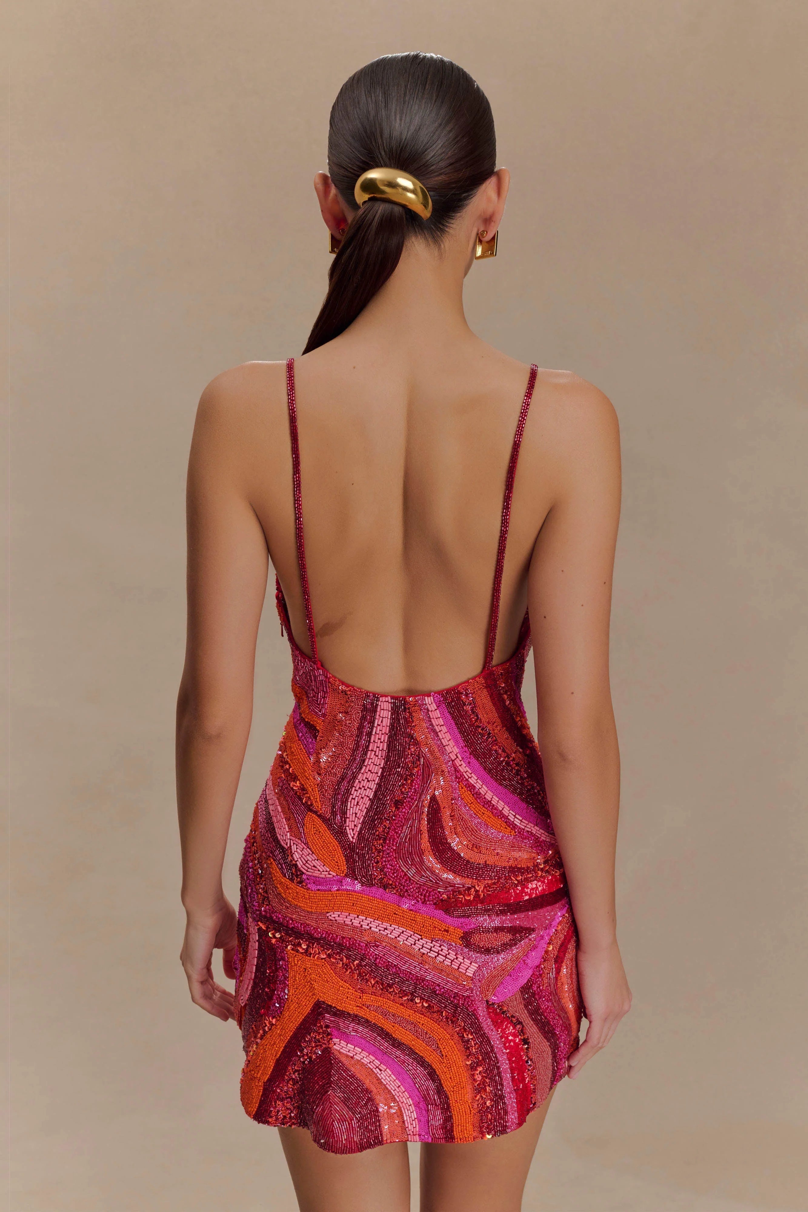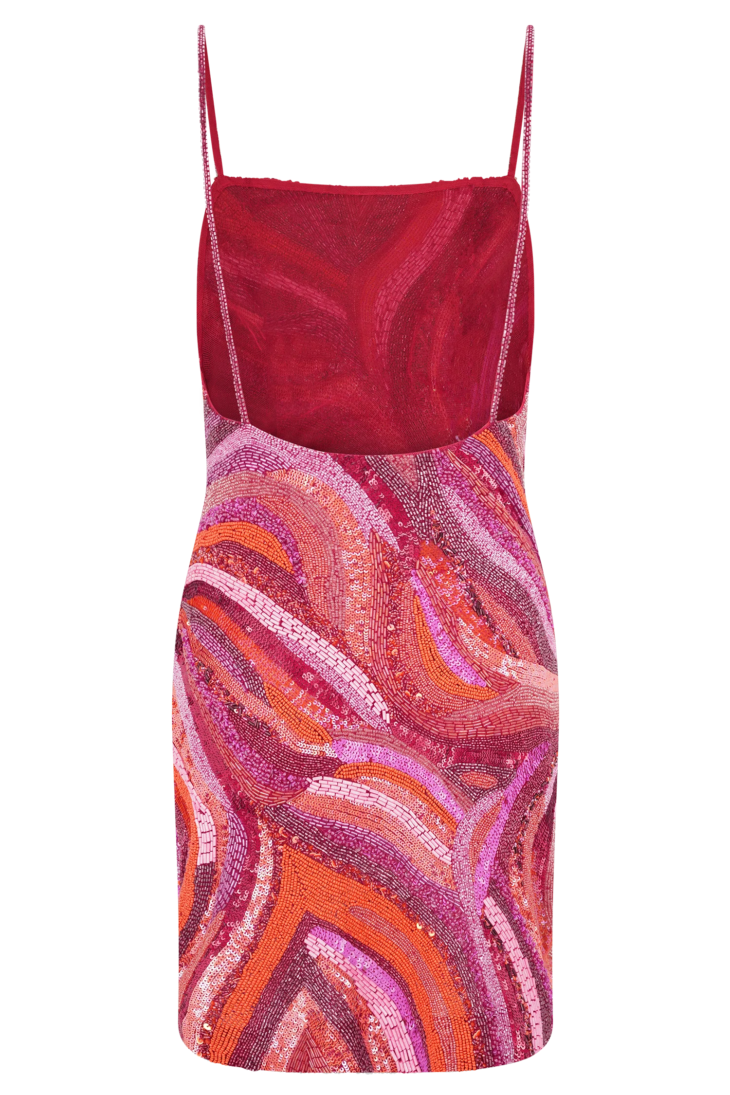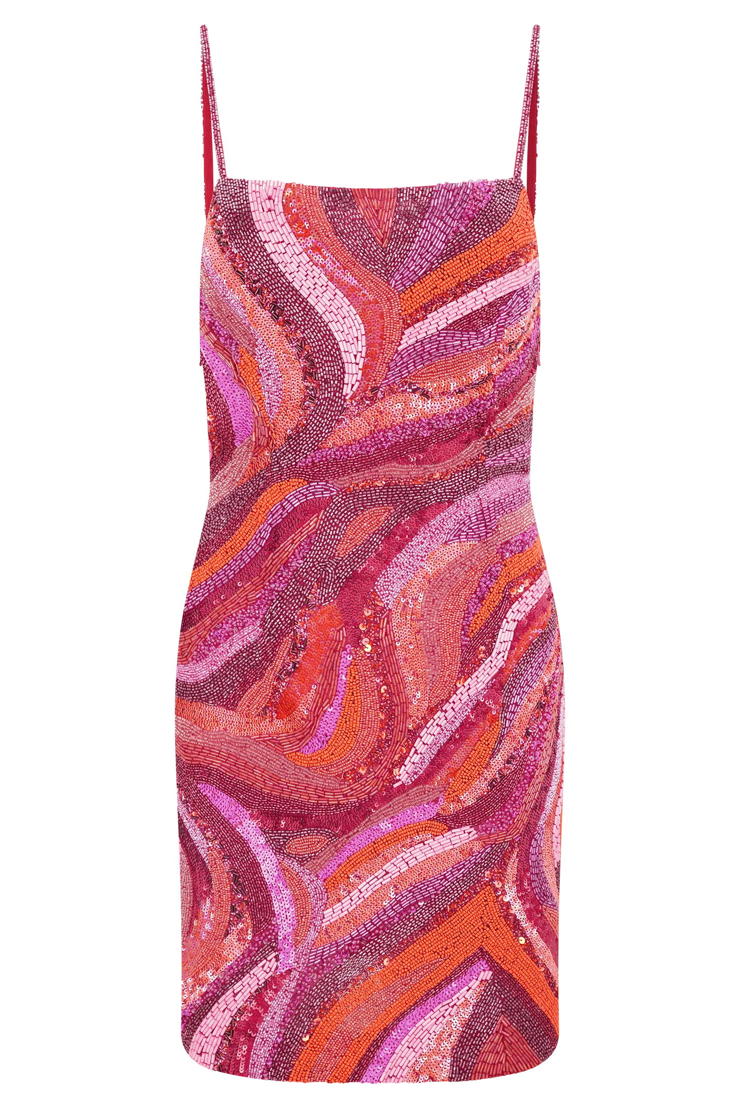 The ELOISE Hand Beaded Mini Dress combines intricate craftsmanship with a sleek silhouette, featuring a hand-beaded textured swirl design on a luxurious satin base. With its flattering A-line shape and mini length, this dress exudes understated glamour. Non-adjustable straps provide a seamless finish, while the fully lined interior ensures comfort. Perfect for special occasions, this piece radiates sophistication and style with every step.