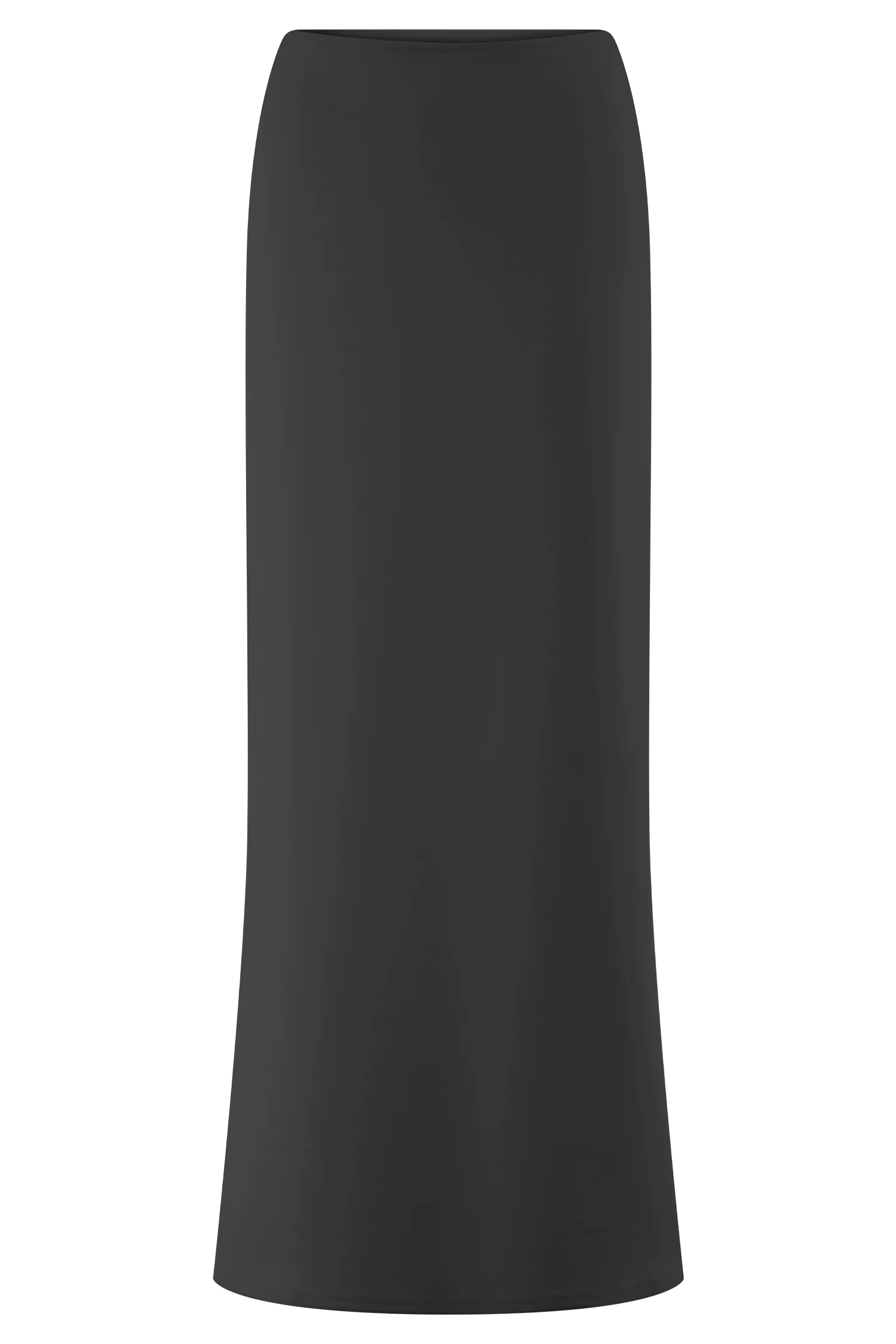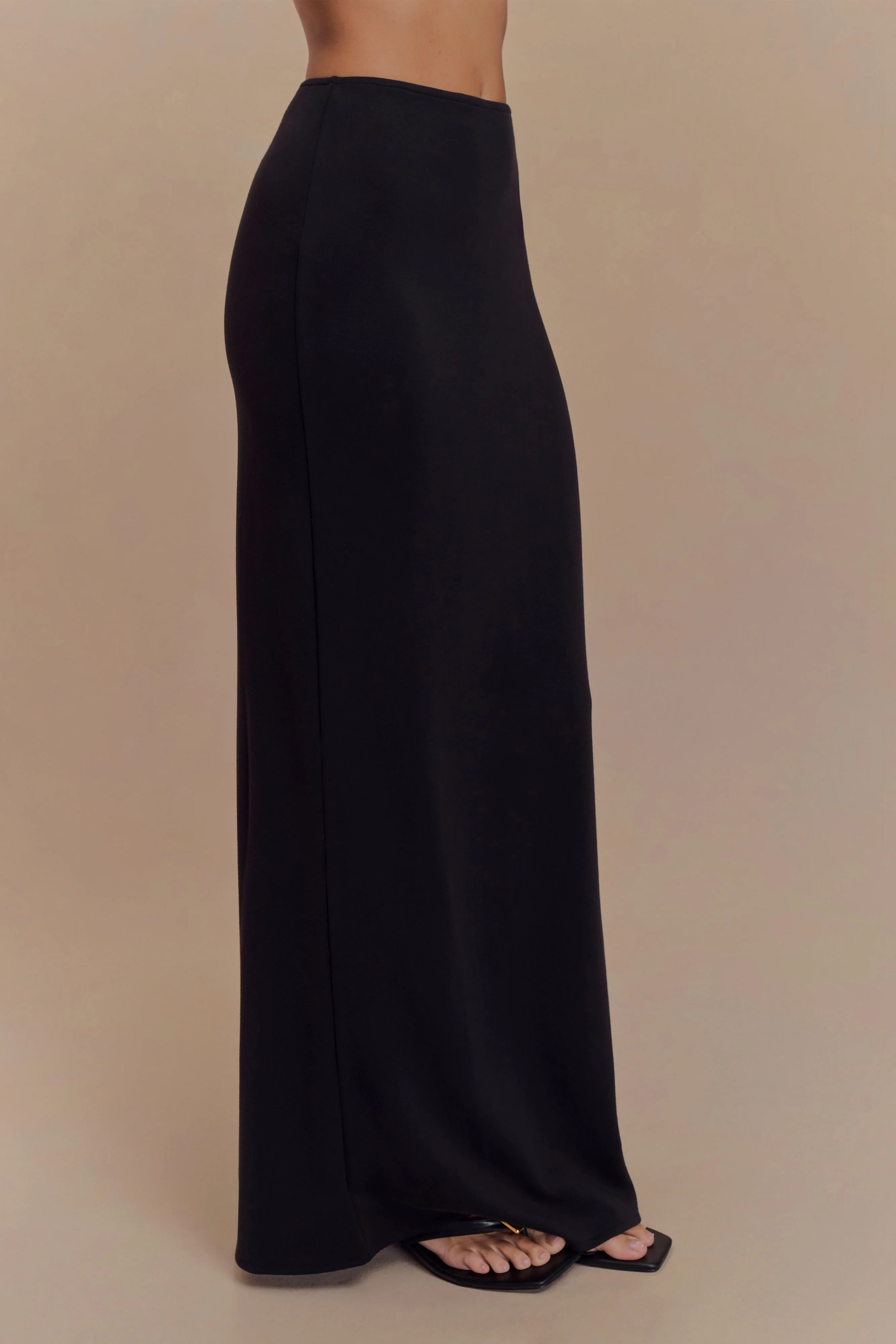 The ERIS Scuba Jersey Maxi Skirt is the perfect blend of elegance and comfort. With a high-waisted design, this skirt creates a stunning, elongated silhouette. The maxi length adds a dramatic touch, while the thick jersey fabrication ensures both structure and flexibility. Pair it with the for a sleek, coordinated look that effortlessly transitions from day to night.
