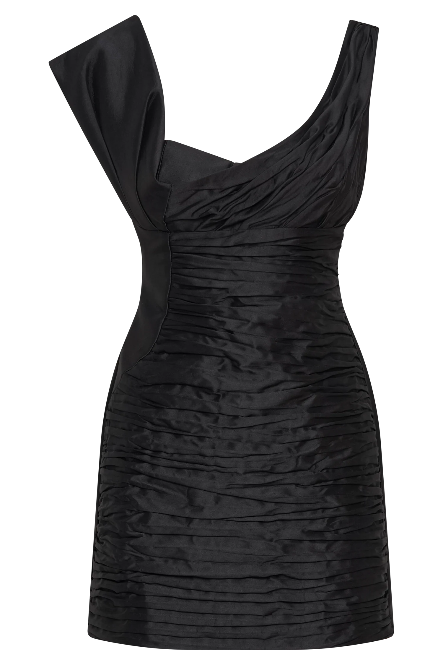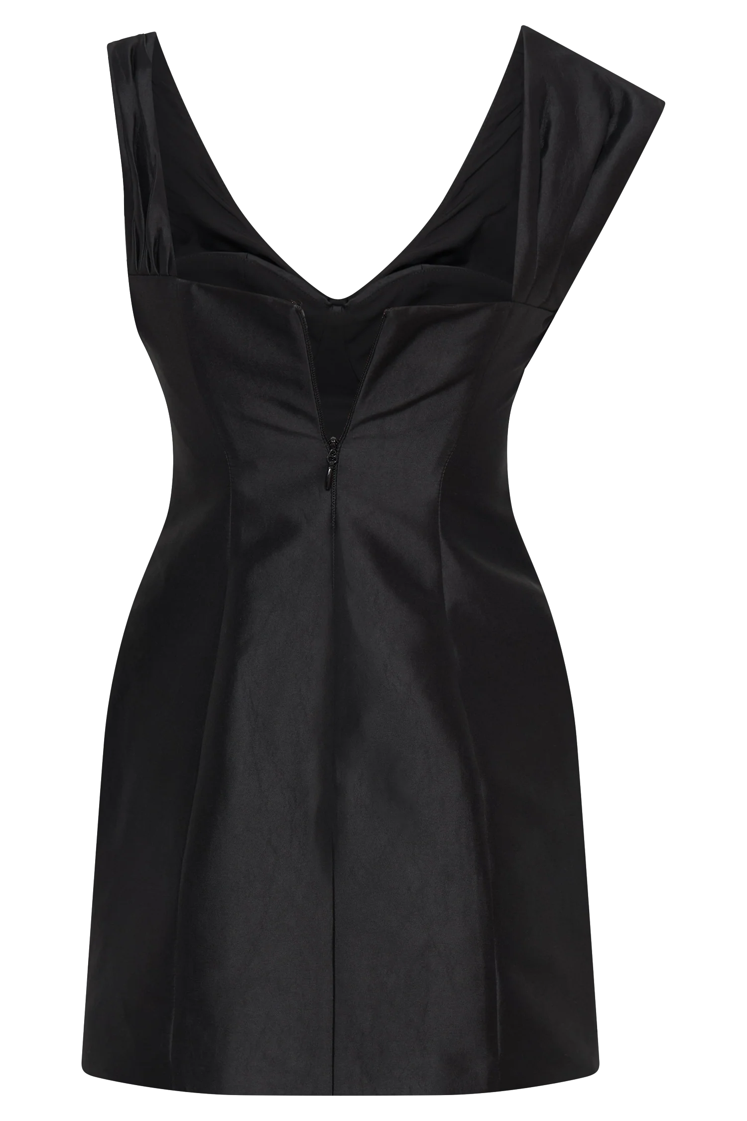 The FARRAH Structured Draped Mini Dress is a bold and stylish choice for any occasion. Featuring an asymmetrical neckline and unique rippling and panel detailing, this mini dress creates a striking silhouette. The cinched waist accentuates your figure, while the centre back zip ensures a perfect fit. With its mini length, the Farrah dress offers a modern and sophisticated look, perfect for making a fashion statement.