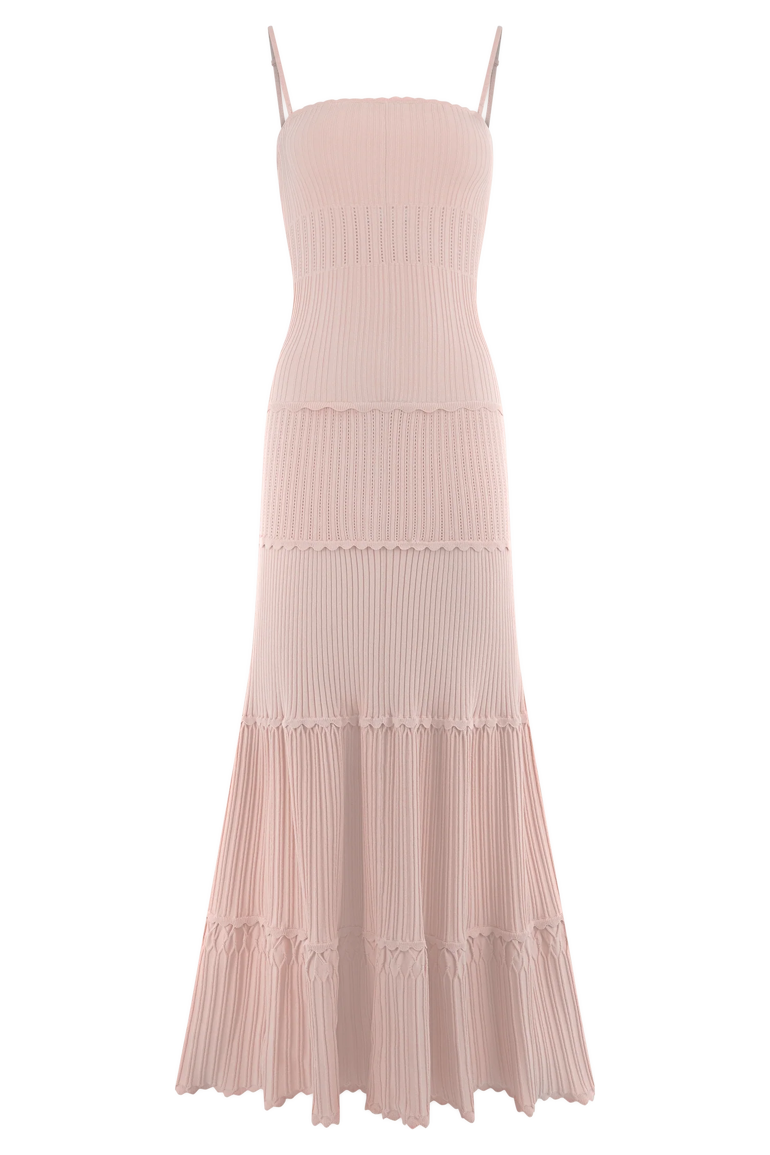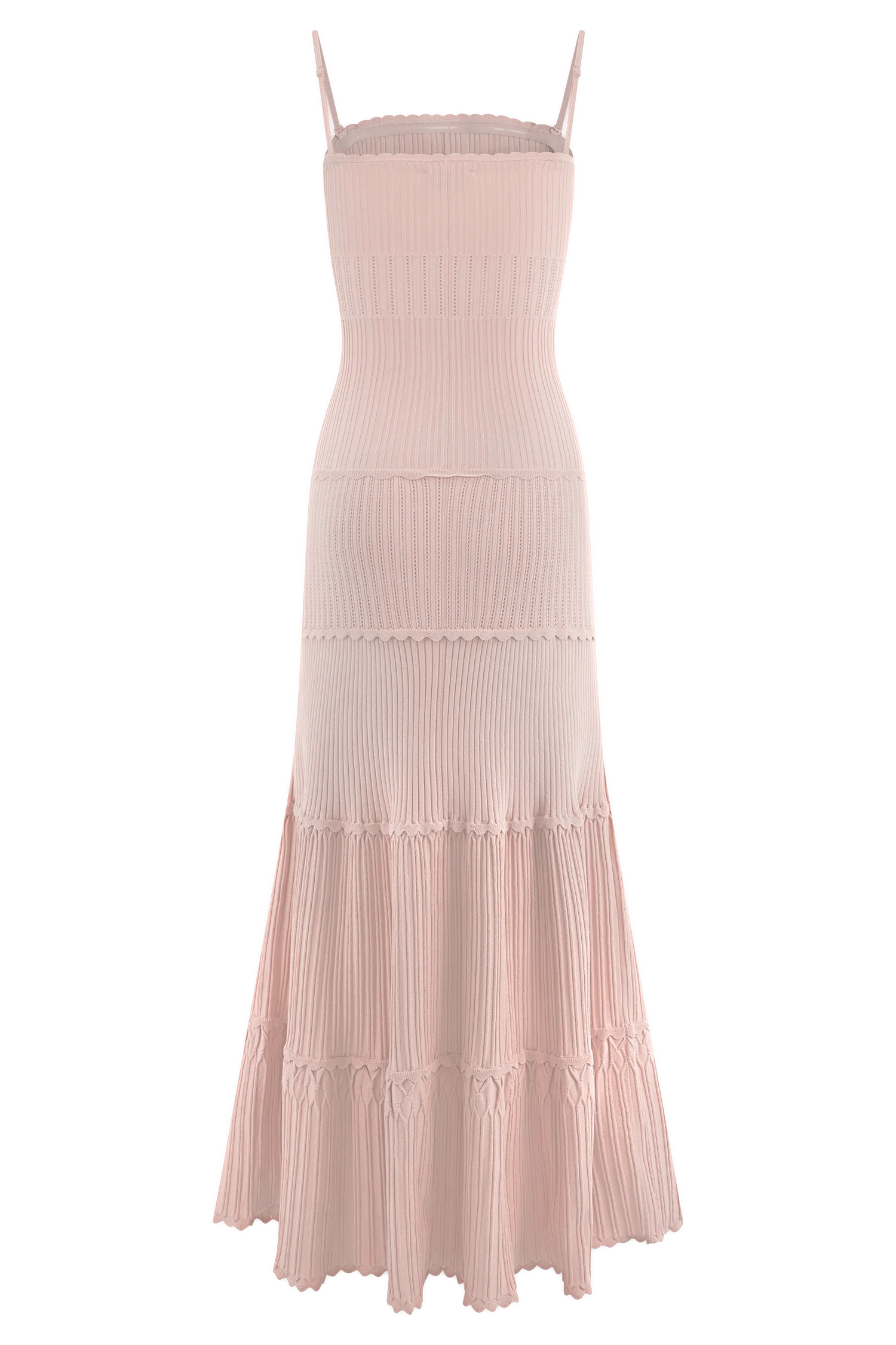 The FINLEY Pointelle Knit Maxi Dress is the perfect blend of delicate texture and timeless elegance. Designed for versatility, it can be worn with or without straps, offering a customisable look to suit any occasion. The slip dress silhouette drapes effortlessly, while a small ribbed waist panel subtly defines the shape. Scallop trim details inserted into tiered seams add a touch of femininity, enhancing the dress’s soft, flowing movement. Crafted in an unlined knit for a lightweight feel, this dress is a dreamy choice for sunlit days, romantic evenings, or effortless resort styling.