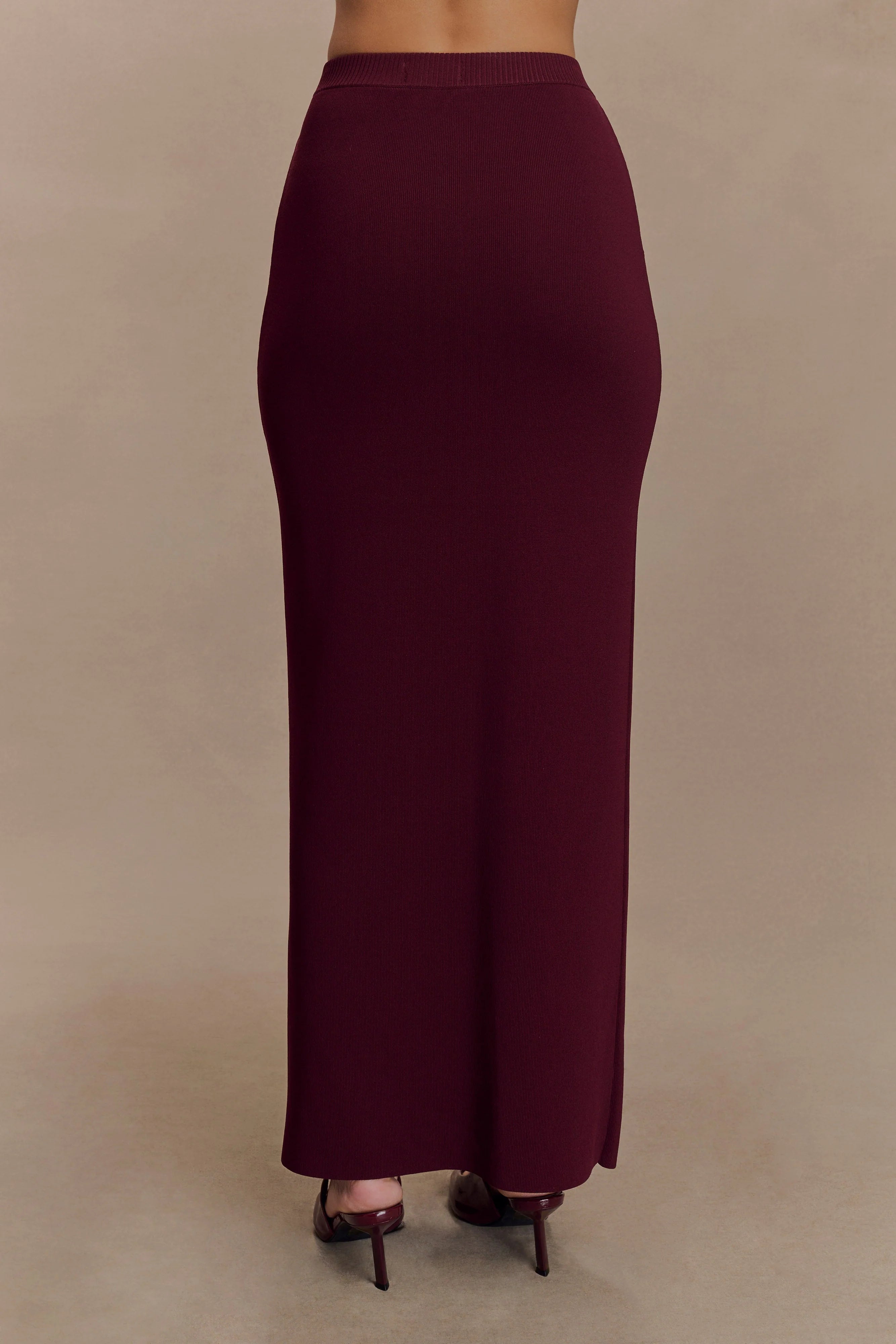 The FRANCISCA Mid Rise Knit Maxi Skirt is a sleek essential that balances comfort with elevated style. Designed with a mid rise waistline and soft elastic waistband, this maxi silhouette skims the body for a flattering, elongated look. Crafted from an unlined knit for lightweight breathability, it moves effortlessly from day to night. Pair with the for a refined set that delivers modern minimalism with a polished finish.