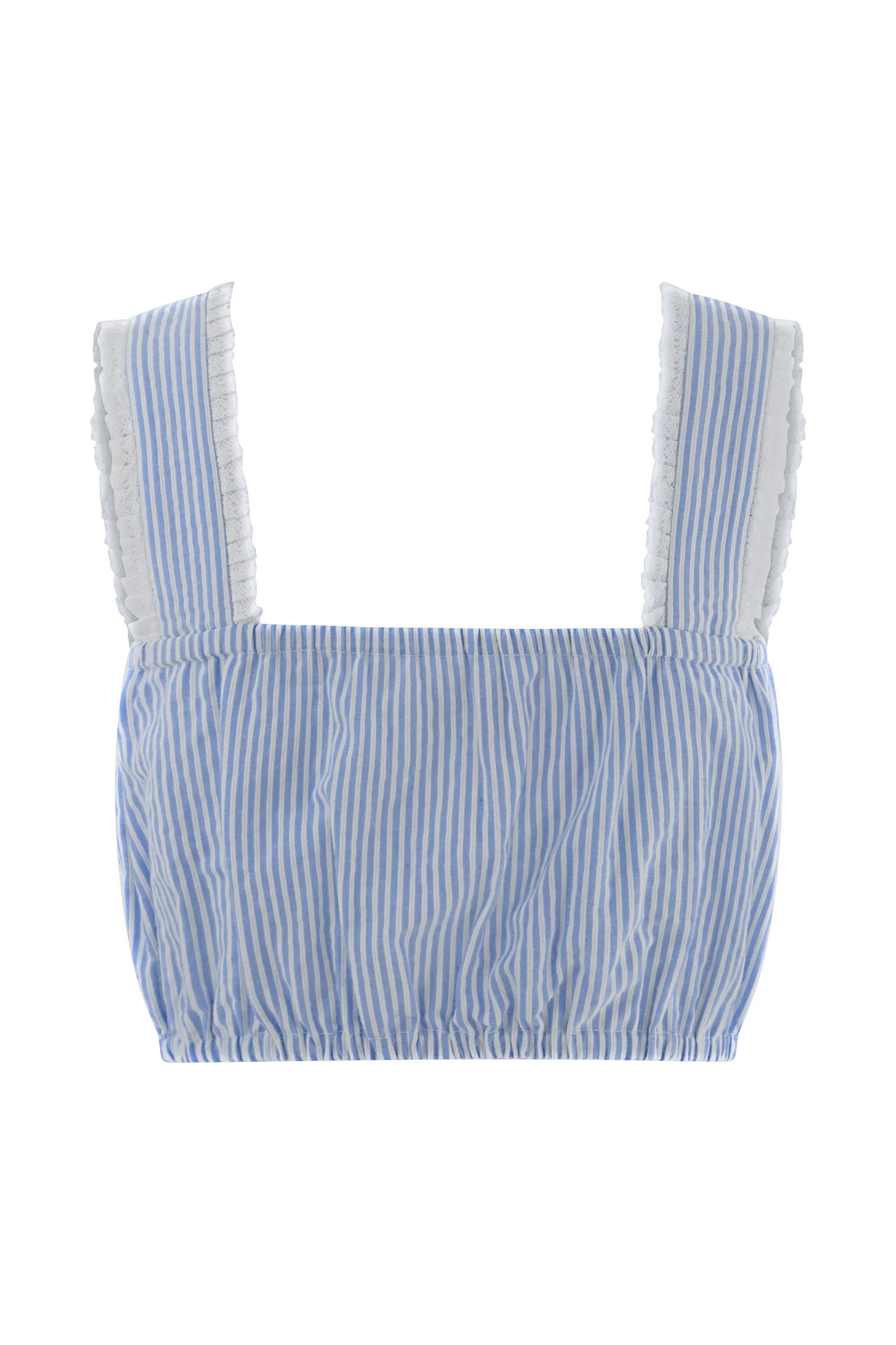The GRETEL Sleeveless Crop Top is a charming blend of femininity and ease. Designed with a flattering square neckline and delicate frill-trimmed straps, this cropped silhouette adds a playful yet polished touch to any look. The elasticated pull-on fit ensures all-day comfort, while the bow tie at the centre front enhances its romantic appeal. Unlined for a breezy, lightweight feel, this top pairs perfectly with the for a flirty, coordinated ensemble—ideal for sunlit strolls, brunch dates, and warm-weather adventures.