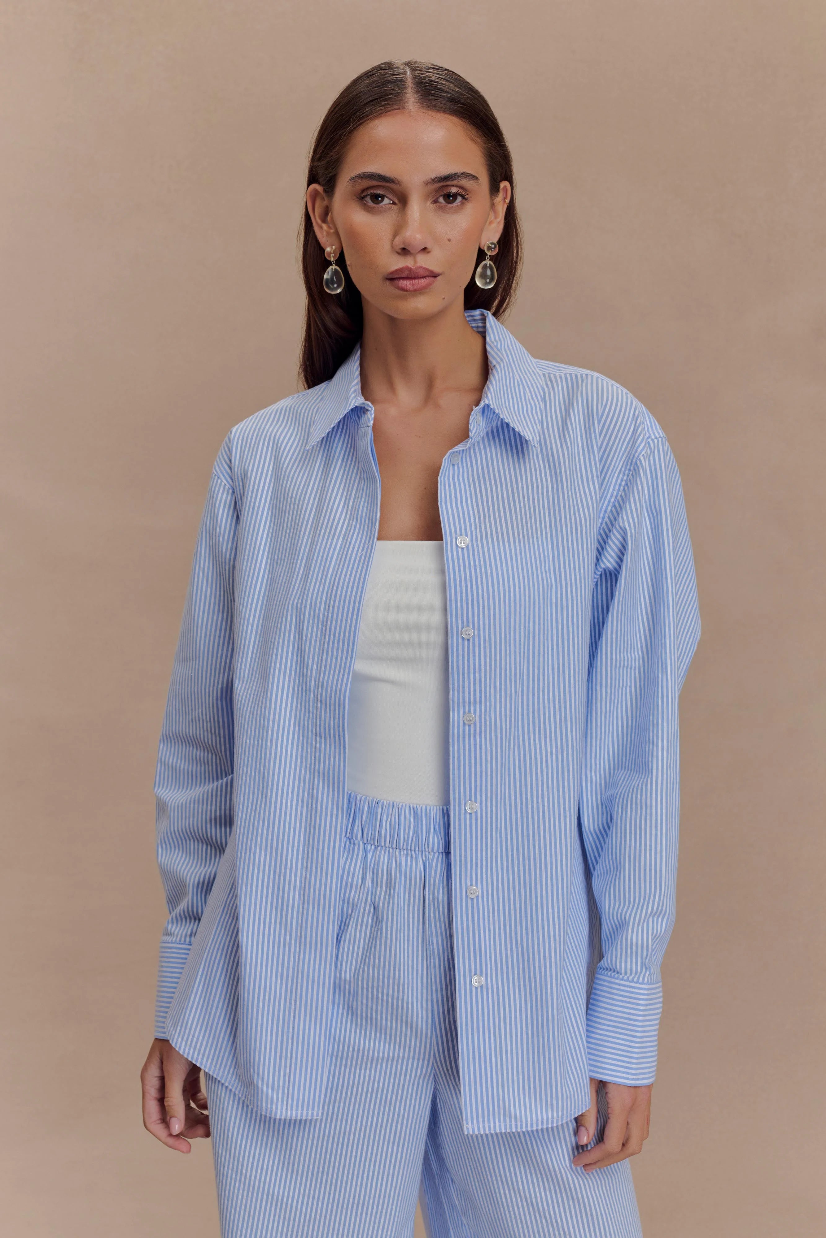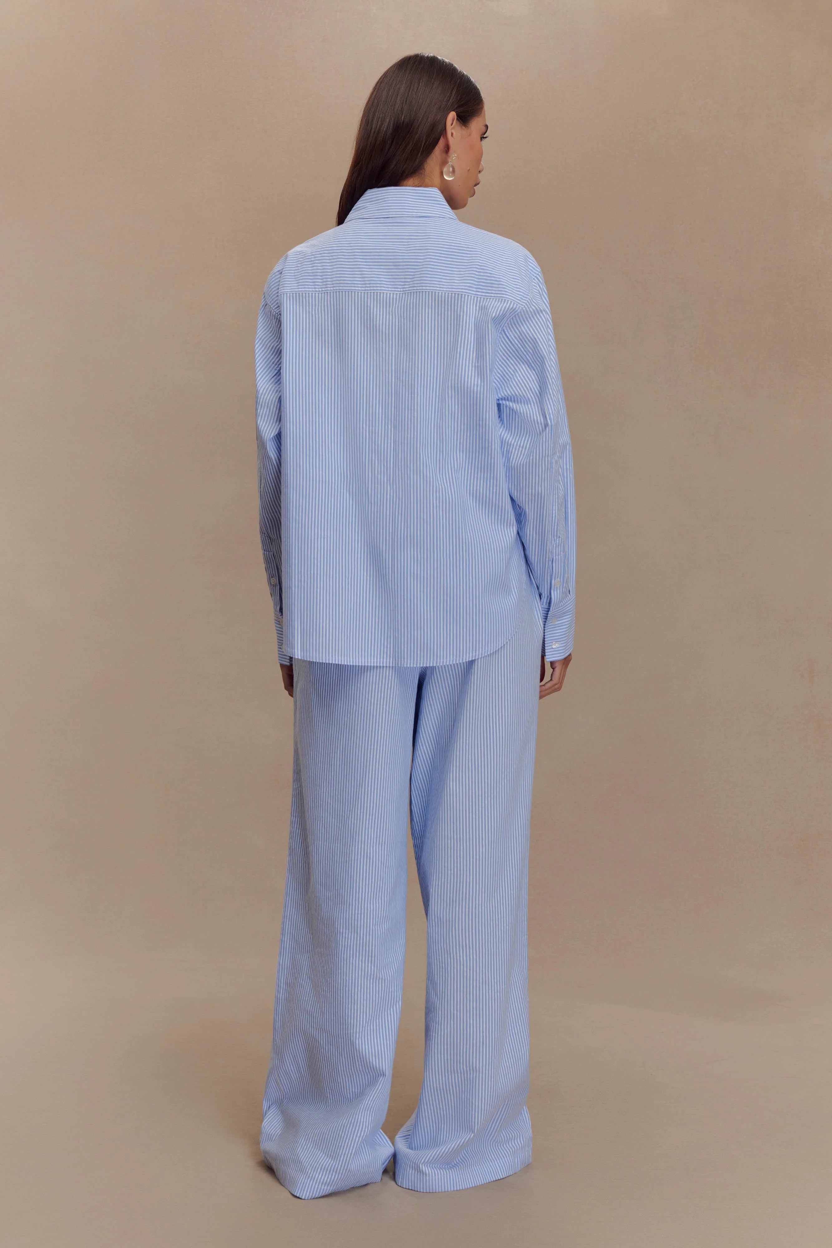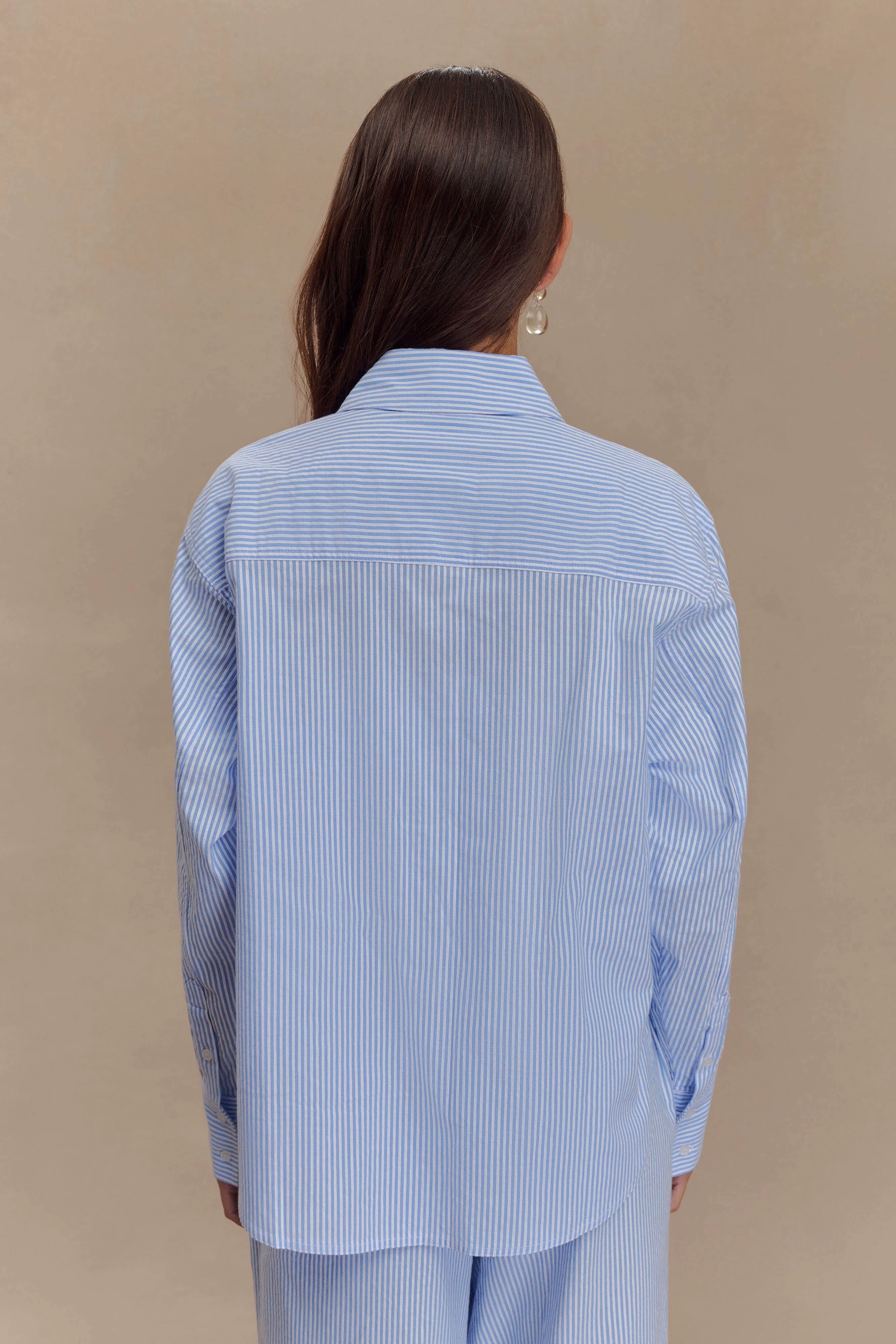 The HANSEN Oversized Shirt is the ultimate balance of structure and ease. Designed with a classic collared neckline and a concealed button-front placket, this cropped silhouette offers a modern take on timeless tailoring. A back yoke detail enhances the relaxed fit, while long sleeves add an effortlessly polished feel. Unlined for a lightweight, breathable touch, this shirt pairs perfectly with the for a sleek, coordinated look that exudes understated elegance.