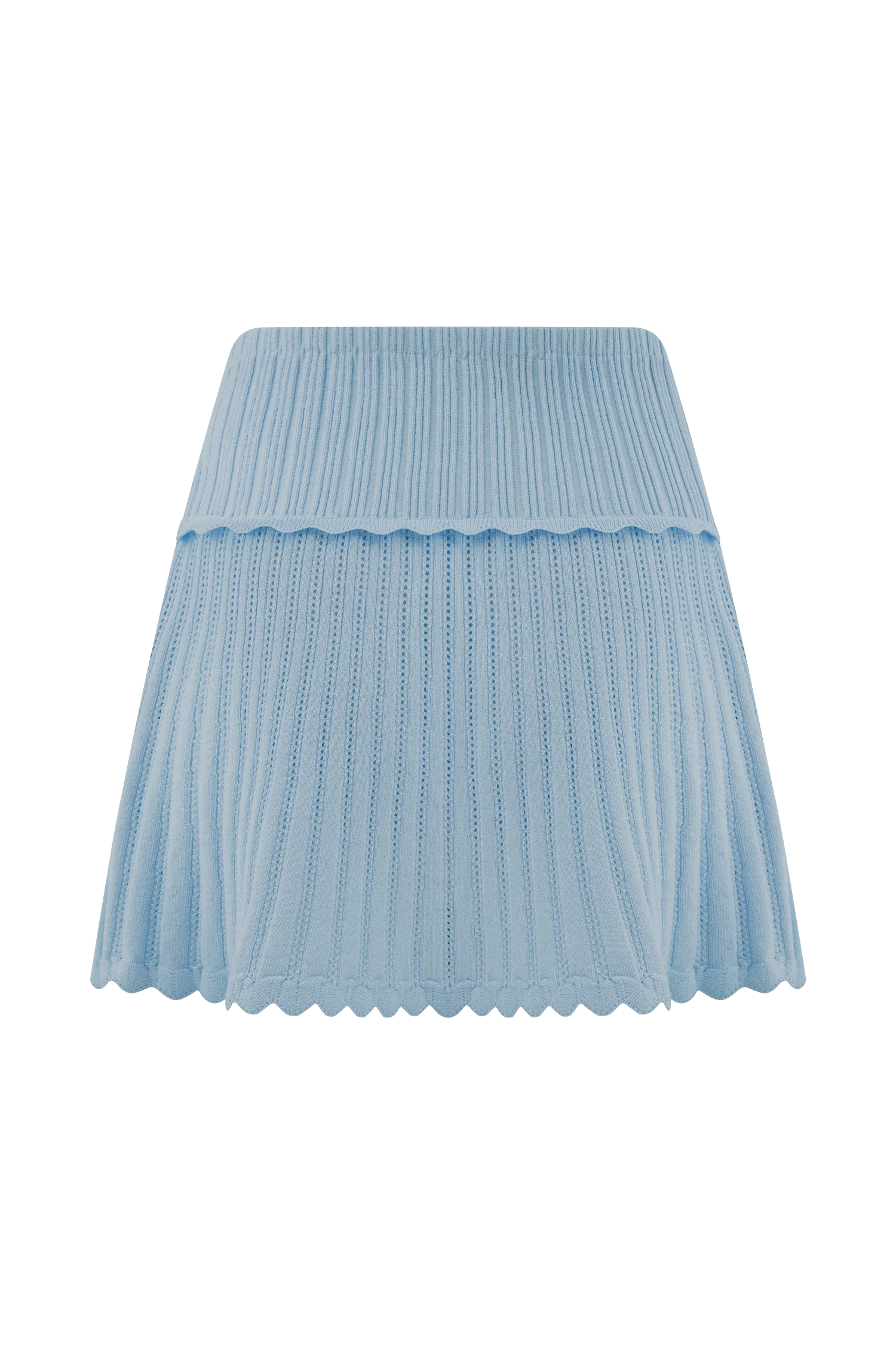The INDY Pointelle Knit Mini Skirt is a feminine staple designed with intricate detailing and a flattering silhouette. Featuring a wide ribbed waistband and a soft drop waist fit, this pull-on skirt offers comfort without compromising on style. The scalloped low-waist frill and hem add a romantic, playful touch, while the unlined knit fabrication keeps it lightweight and breathable.