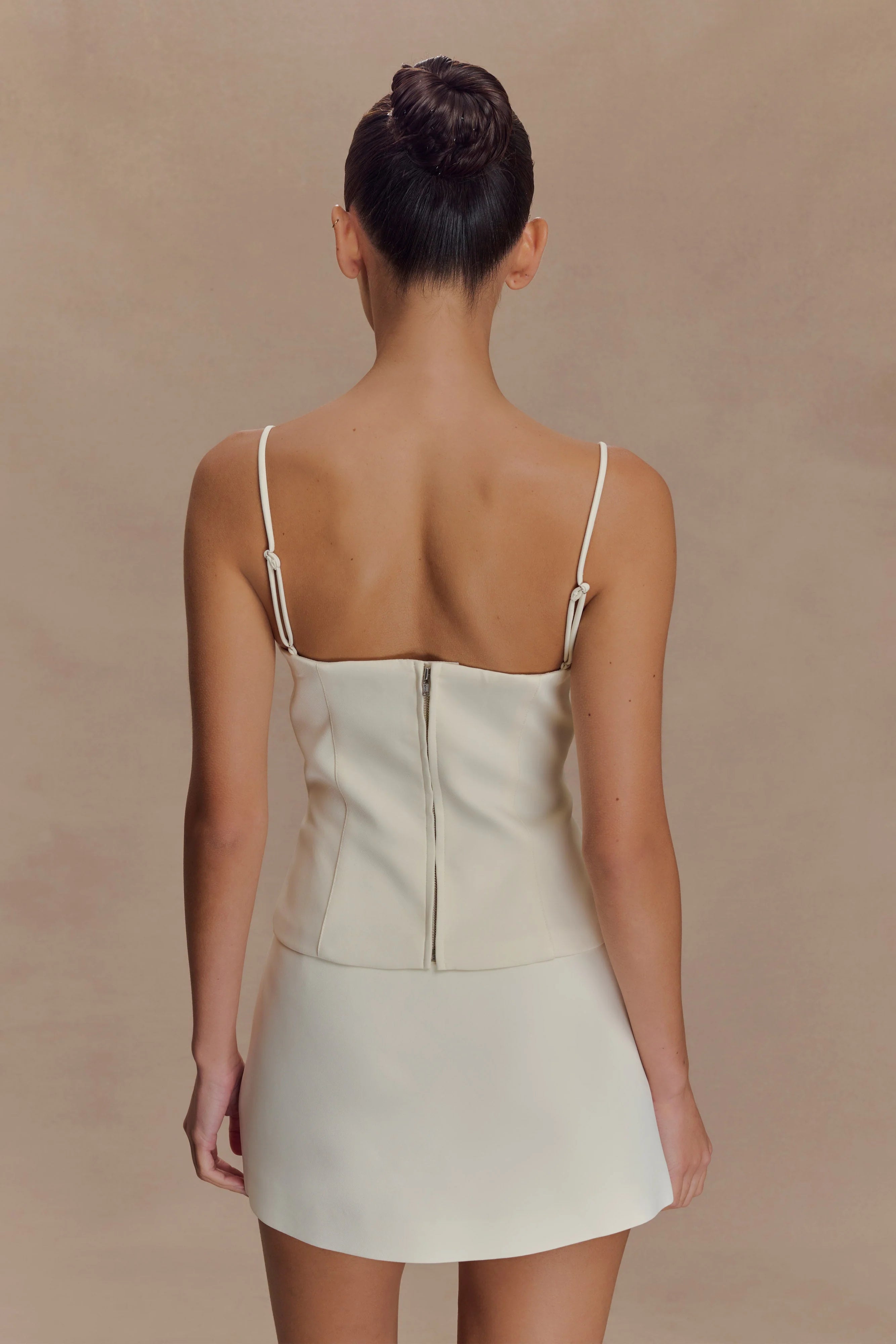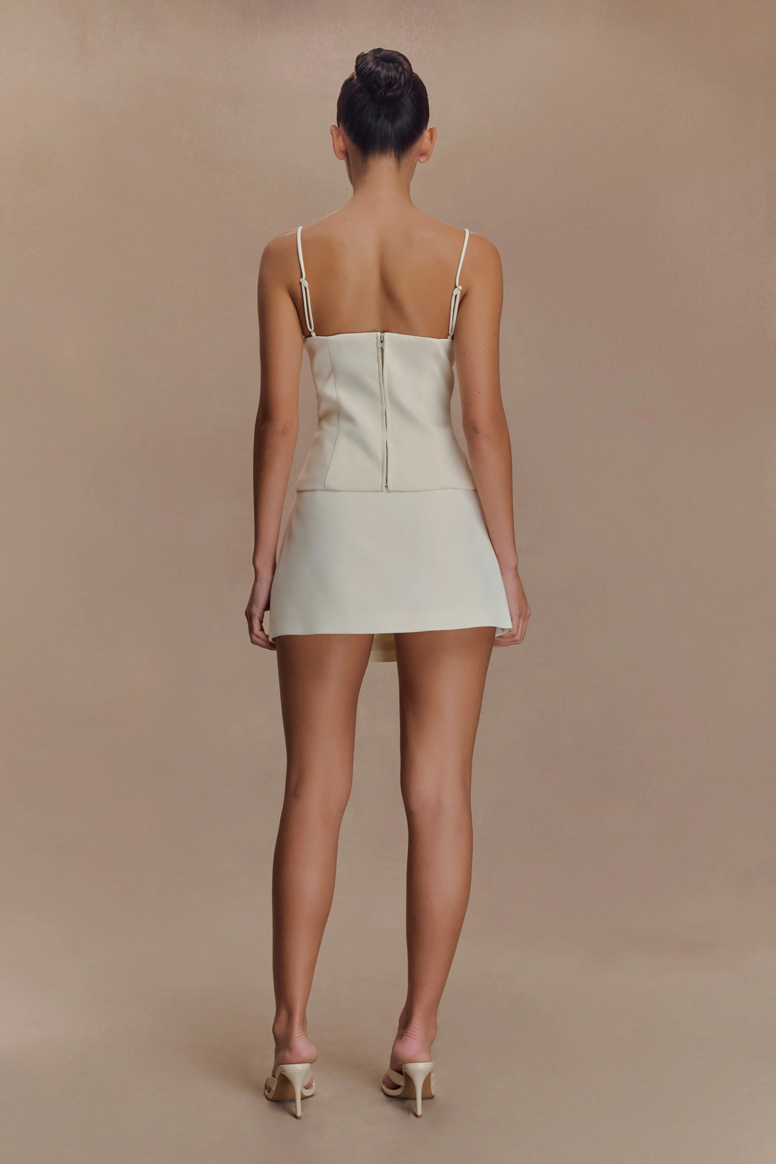 The JAIME Spaghetti Strap Suiting Top blends structured tailoring with sleek femininity. Designed with defined bust cups and front and back paneling for a sculpted fit, this longline top flatters with a clean, modern silhouette. Adjustable straps and a back open-ended zip ensure a custom, secure fit, while full lining adds a polished finish. Pair with the for a coordinated look that’s equal parts sharp, chic, and effortlessly styled.