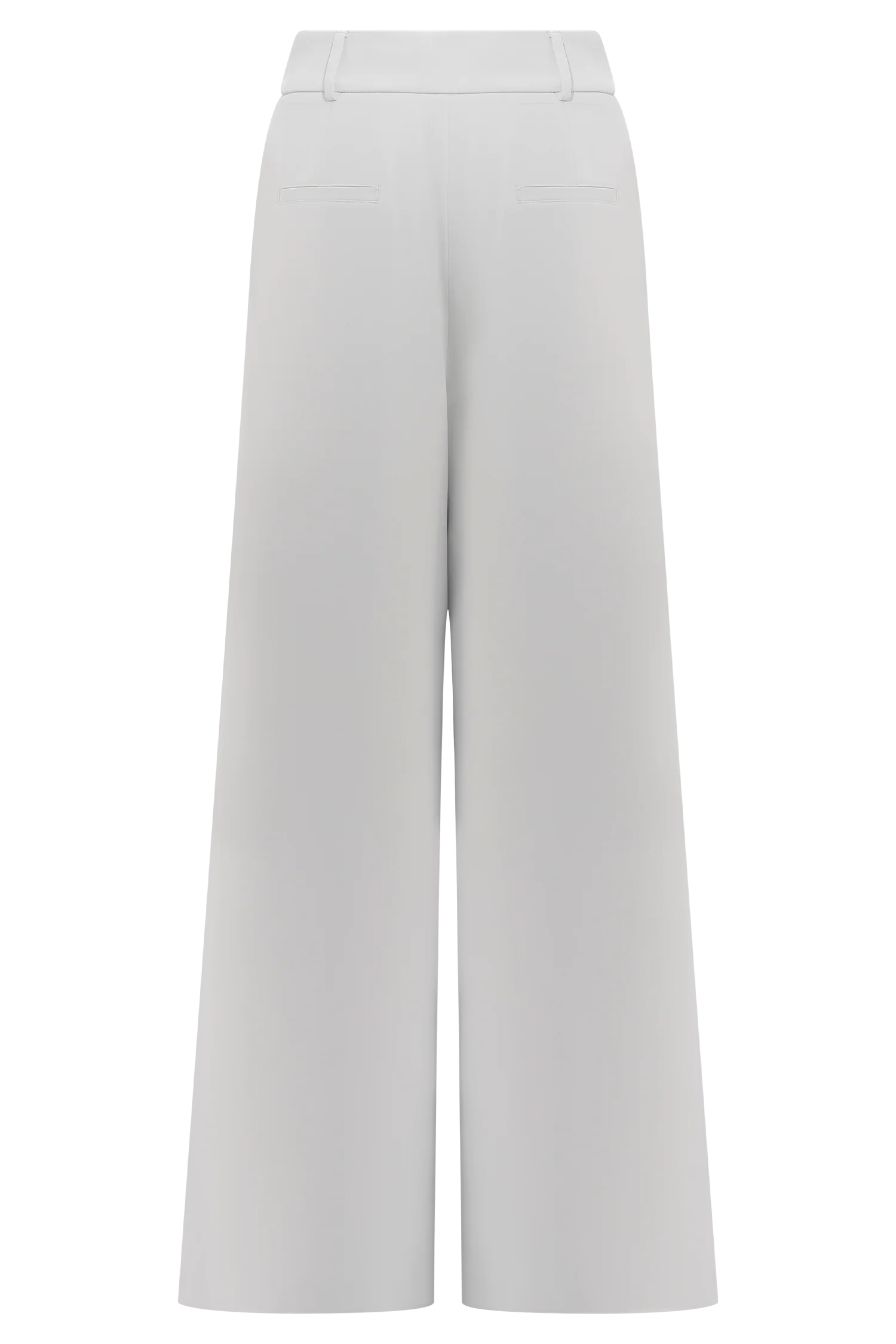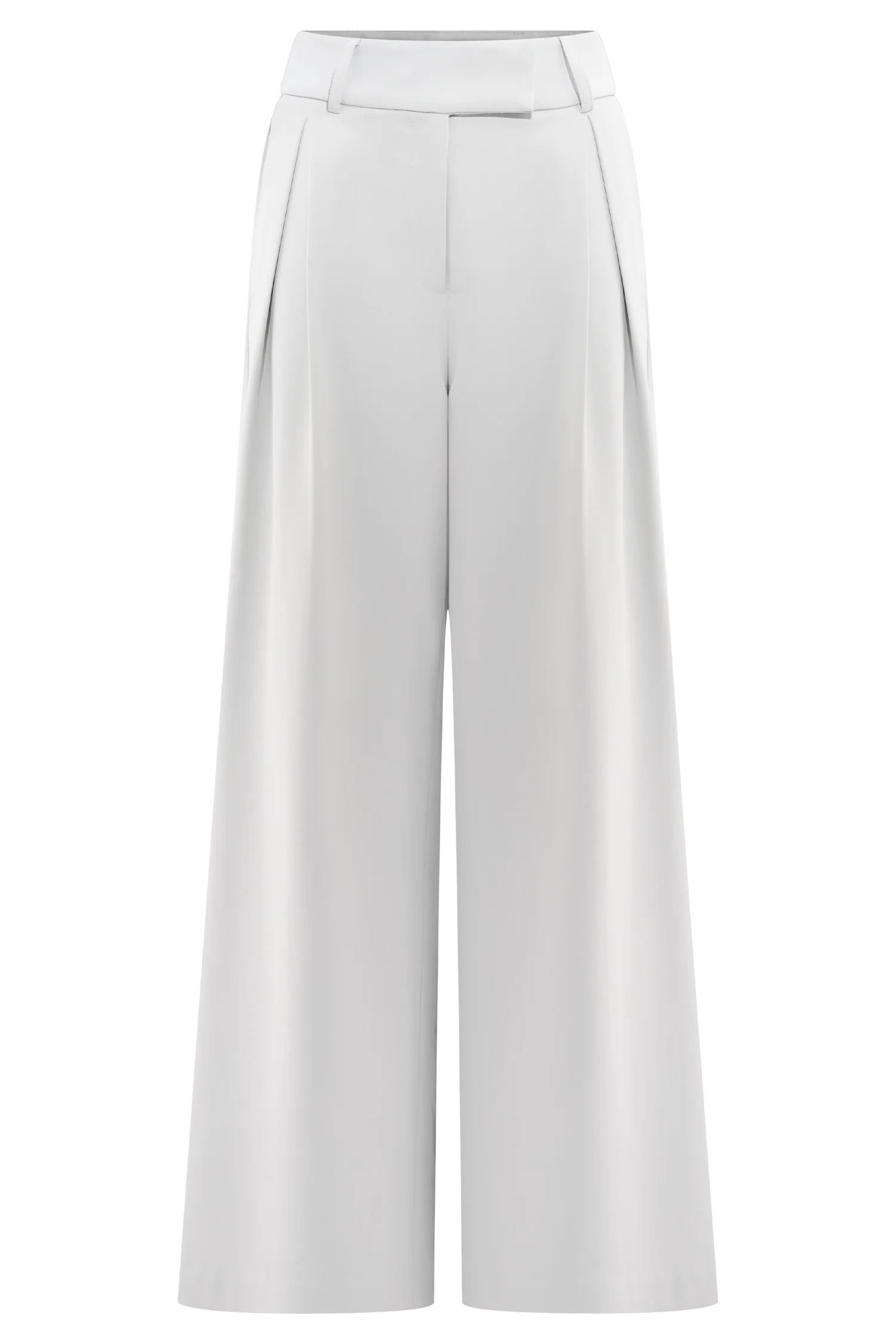 The JAMESON Pleated Wide Leg Pants bring timeless tailoring to modern proportions. Designed with a high waisted fit and a wide waistband, these full-length pants feature front pleats and a relaxed wide leg for fluid movement and all-day comfort. Finished with side pockets, back welt pockets, and belt loops for styling versatility, this unlined design offers lightweight structure with a soft, tailored feel. Pair with the for a refined set that exudes confidence and understated sophistication.