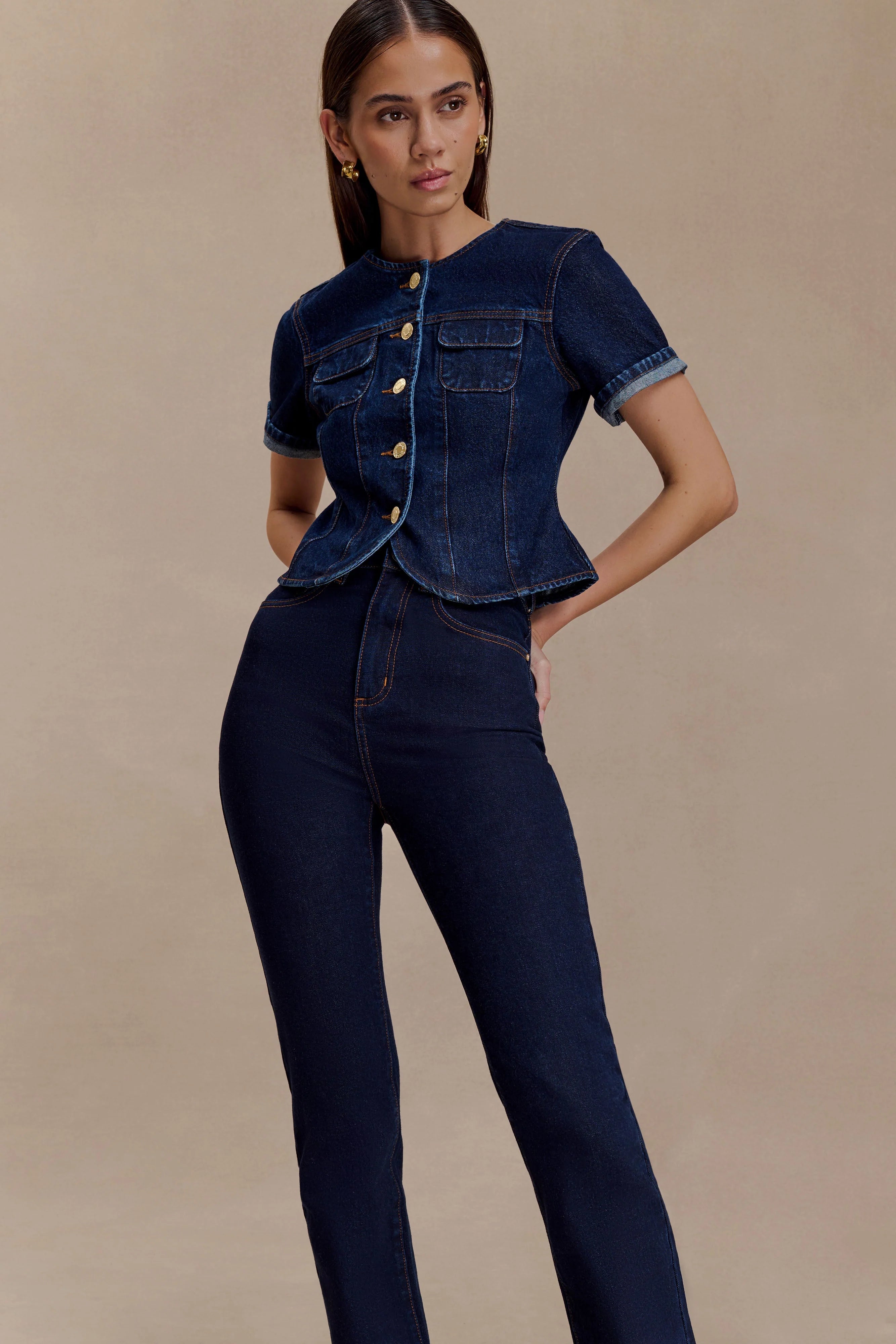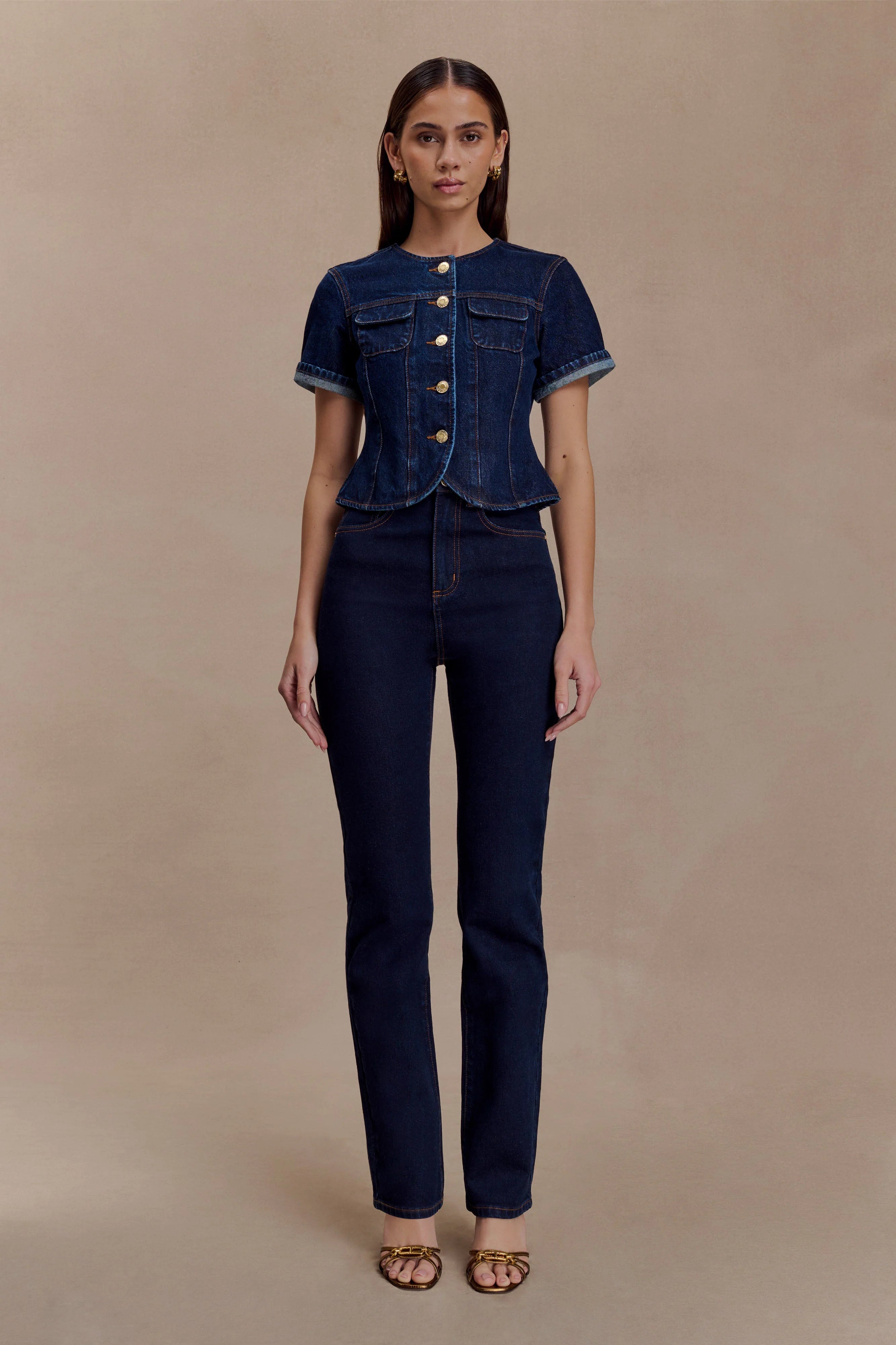 The JANESSA Skinny Denim Jeans are a timeless silhouette designed to flatter. Sitting at a mid-rise waistline with a classic waistband, they feature a fly front closure and functional front and back pockets for everyday ease. Cut in a skinny leg shape, these jeans create a sleek, lengthening effect that transitions effortlessly from casual styling to elevated evening looks.