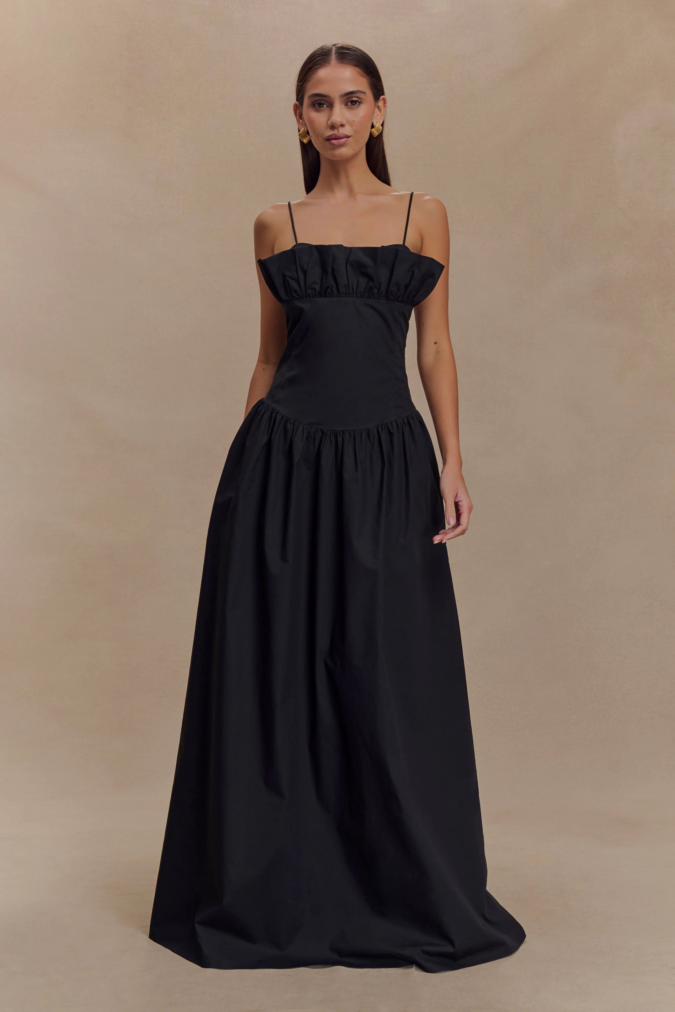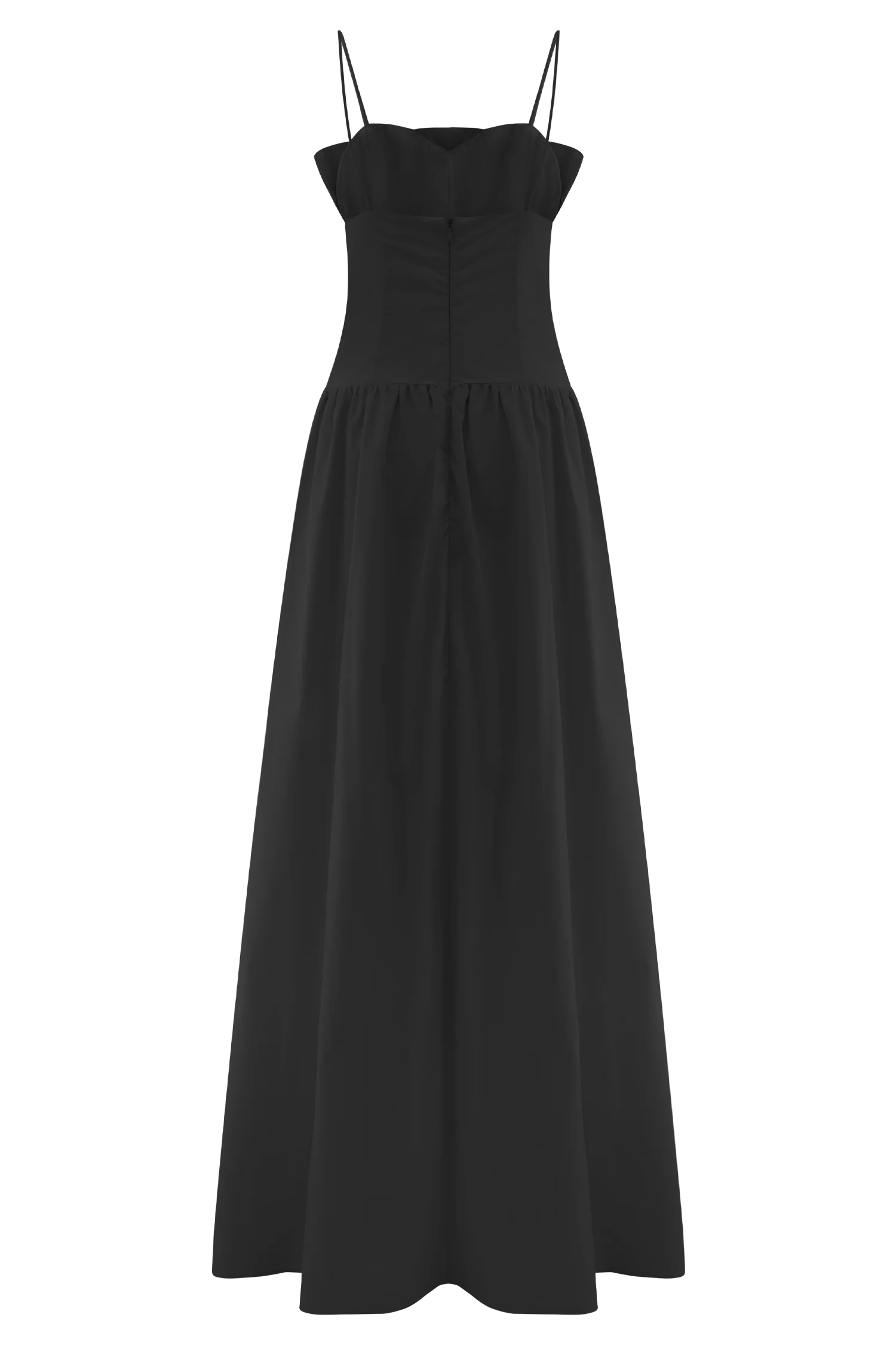 The JANIS Cotton Frill Maxi Dress is the embodiment of feminine charm with a carefree spirit. Featuring a delicate frill-gathered neckline and slender spaghetti straps, this dress is designed with a fitted bodice and curved waist seam to accentuate the silhouette. The drop waist flows into a full, gathered skirt for effortless movement, while the maxi length adds graceful drama. Fully lined and finished with a centre back invisible zip, this dress is your go-to for sun-drenched days and warm evening escapes.