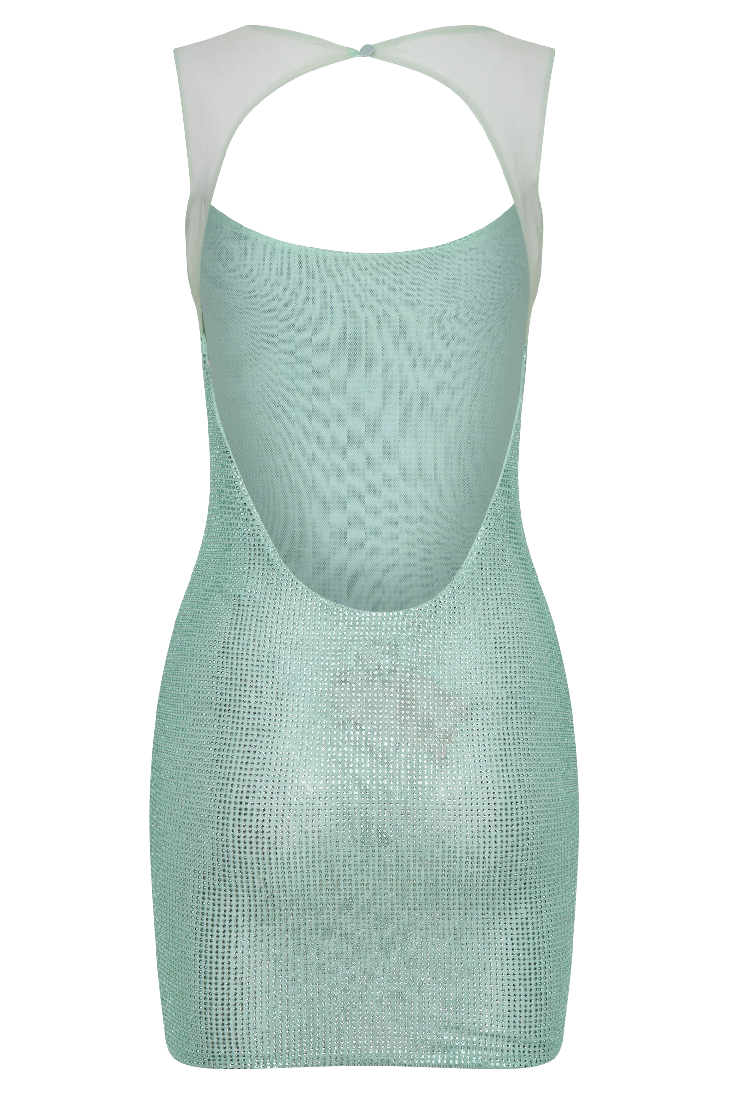The JASMYN Hot Fix Mini Dress With Mesh Back is designed for high-impact moments. Featuring a scoop neckline and mesh straps, it’s finished with sheer back panels that fasten with a button and keyhole closure. The scratch mesh base is adorned with hotfix embellishments, catching the light for a statement sparkle. An open back detail and mesh lining ensure balance between allure and comfort. Cut to a mini length, this dress delivers modern glamour with a sleek finish.