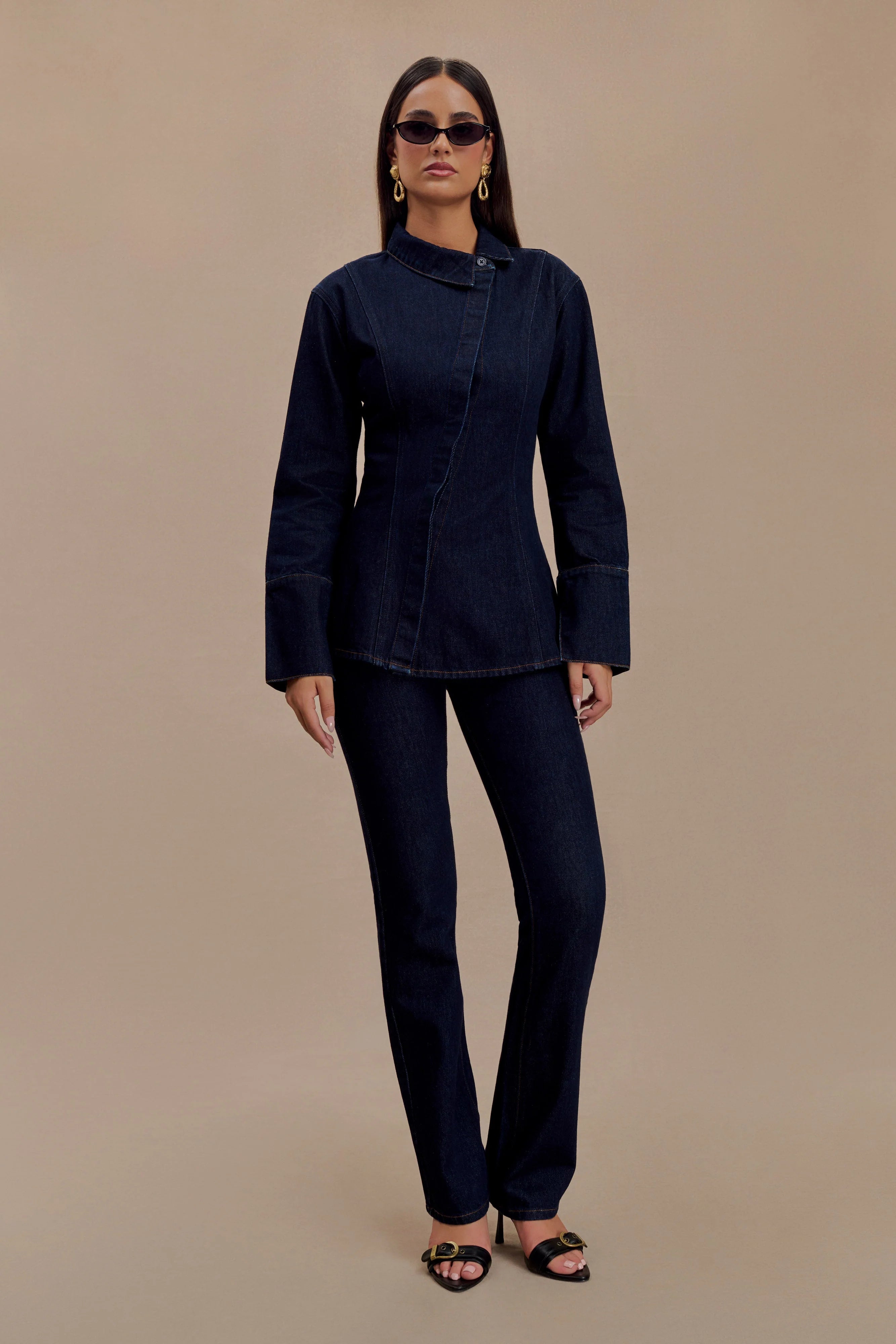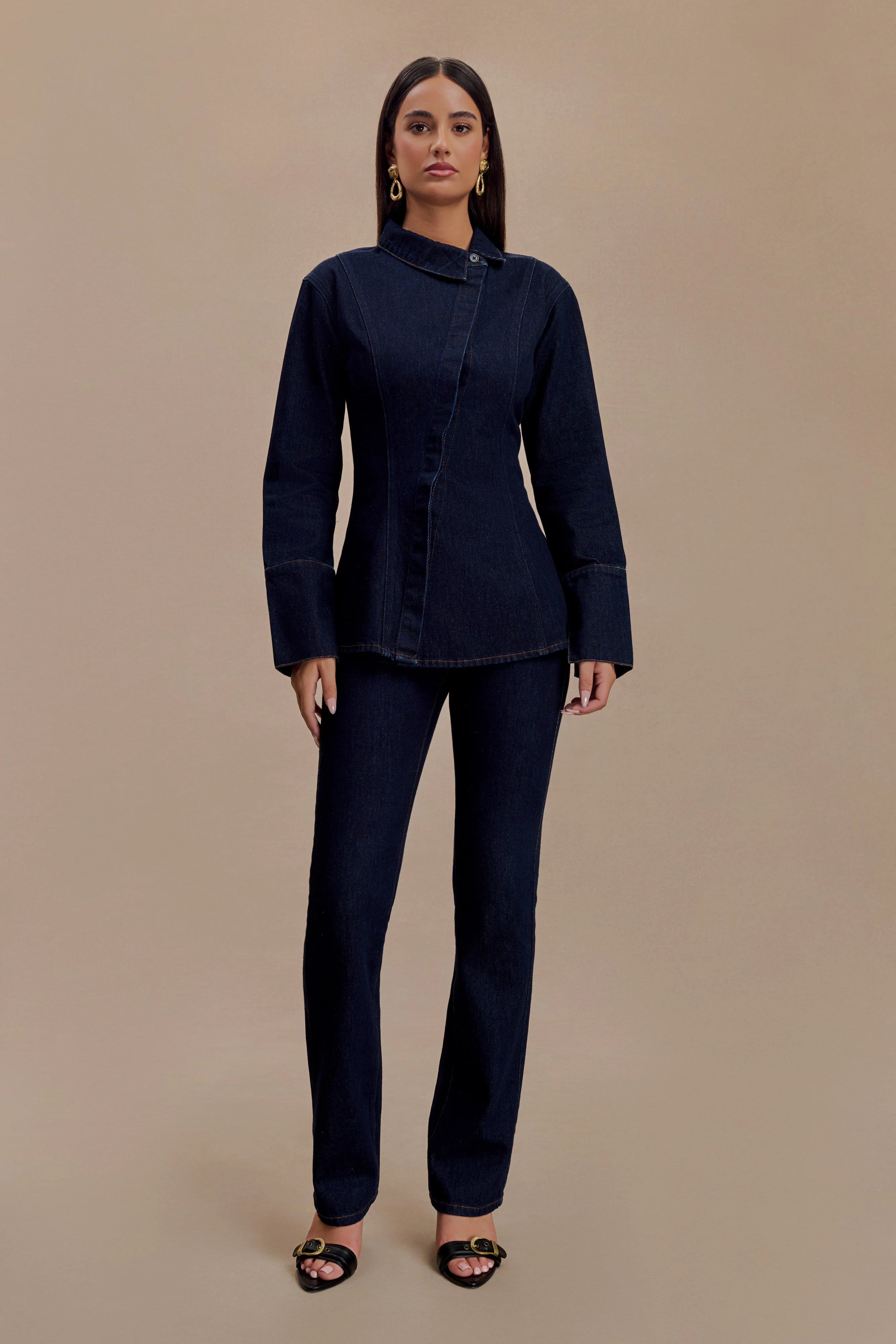 The JERICHO Straight Leg Jeans are crafted with a mid-rise fit and a fly front closure for a flattering silhouette. Featuring a waistband-less design with belt loops for versatile styling, these jeans feature V-stitch detailing and a classic straight leg shape. Perfectly paired with the , they create a streamlined and contemporary look.