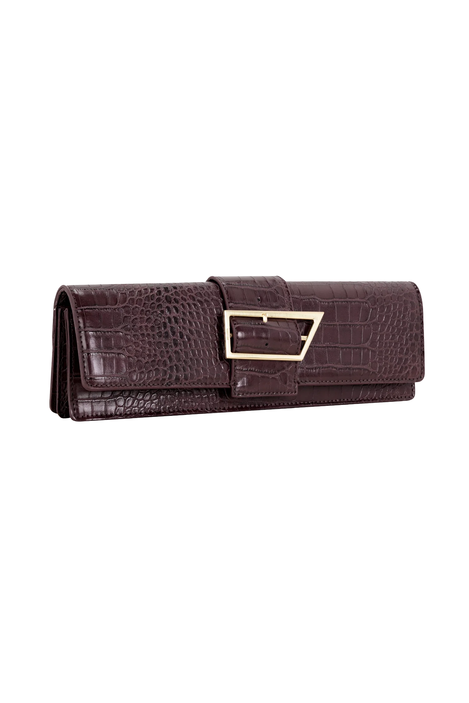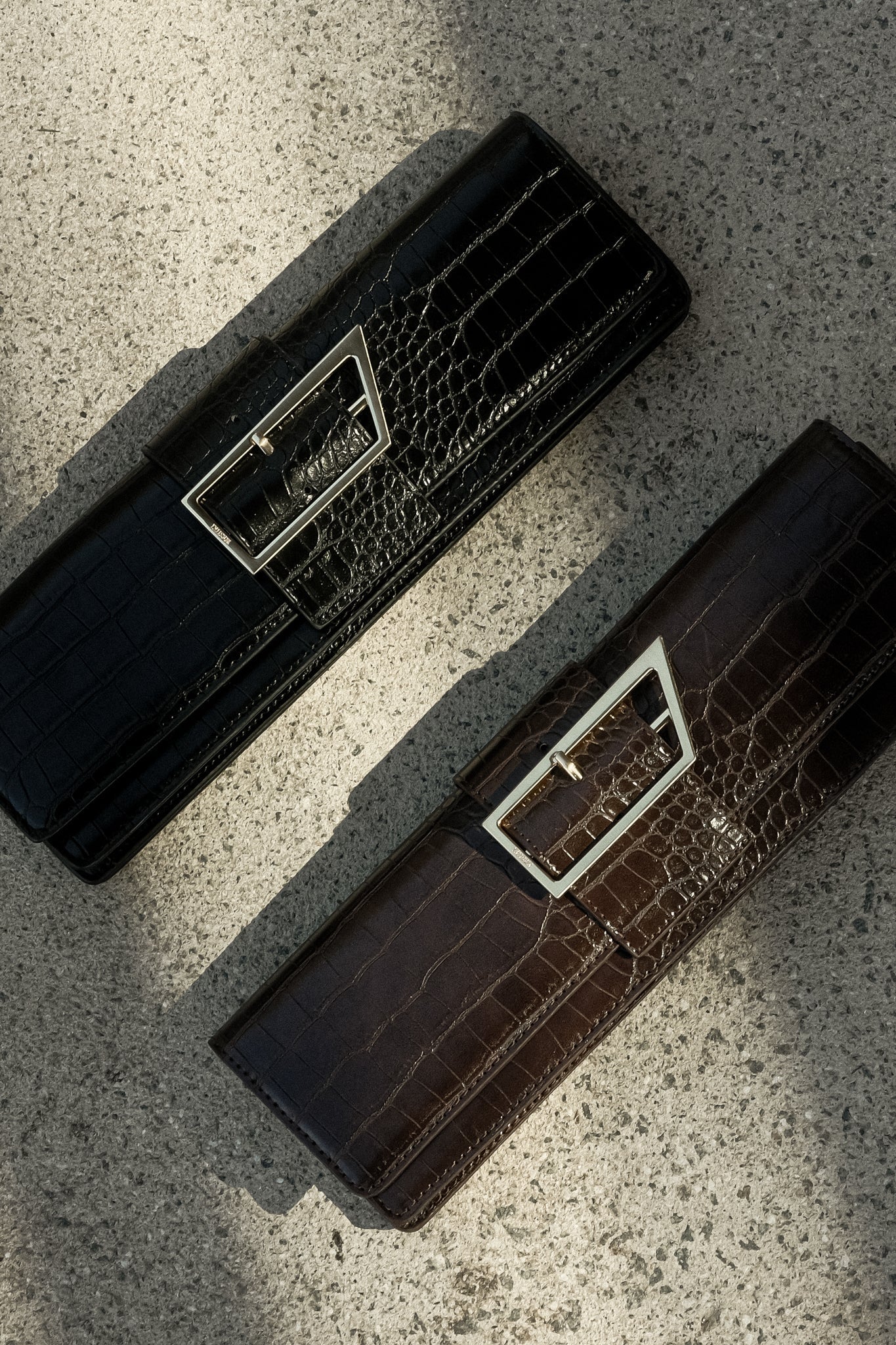 The JESSICA Faux Leather Crocodile Clutch is a sleek accessory designed to elevate any look. Crafted in a faux croc finish, it’s accented with a custom MESHKI-branded buckle for a signature touch. Compact yet practical, it features a magnetic closure, an internal pocket for essentials, and a fully lined interior. Polished and versatile, this clutch is the finishing detail that moves seamlessly from day to evening.
