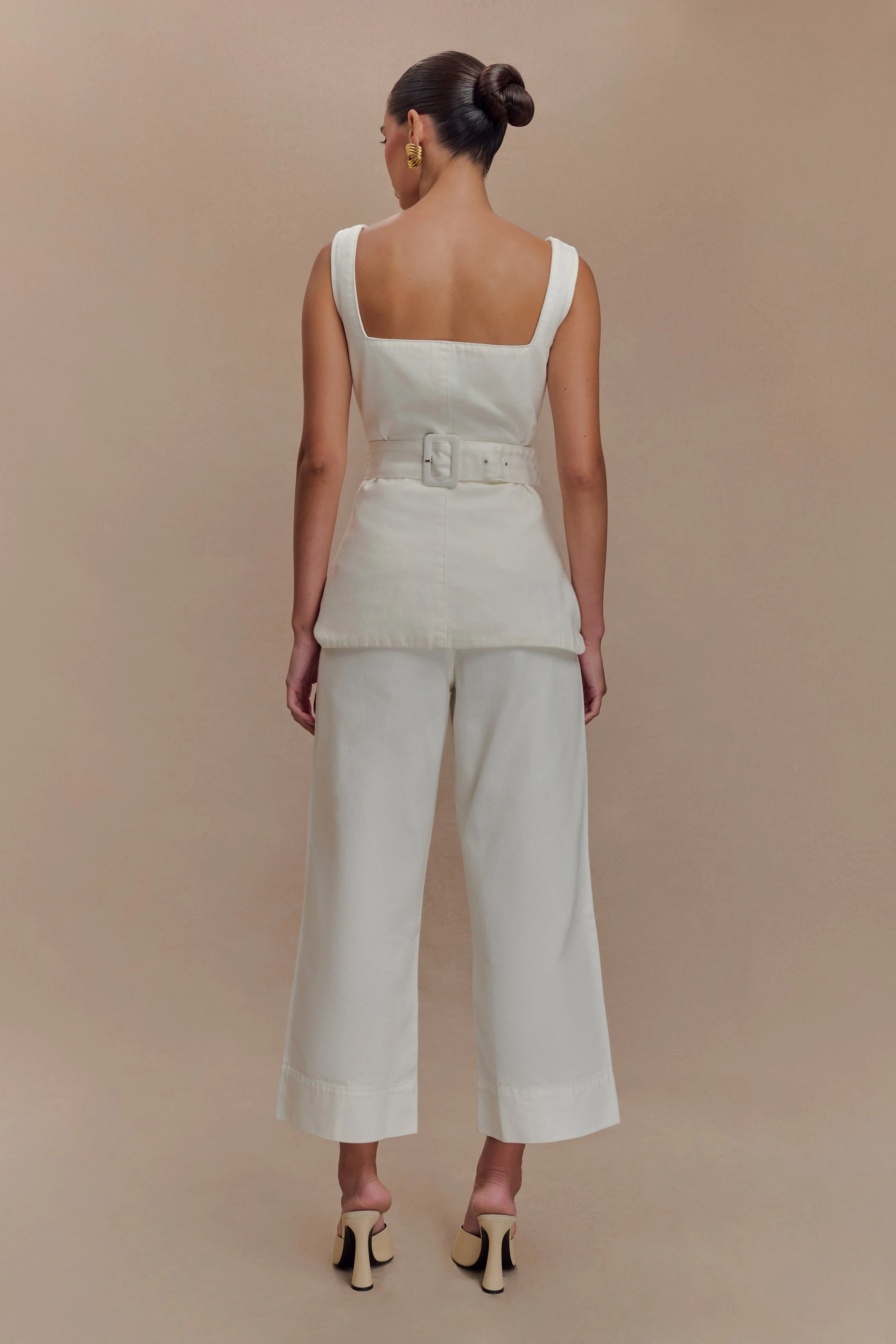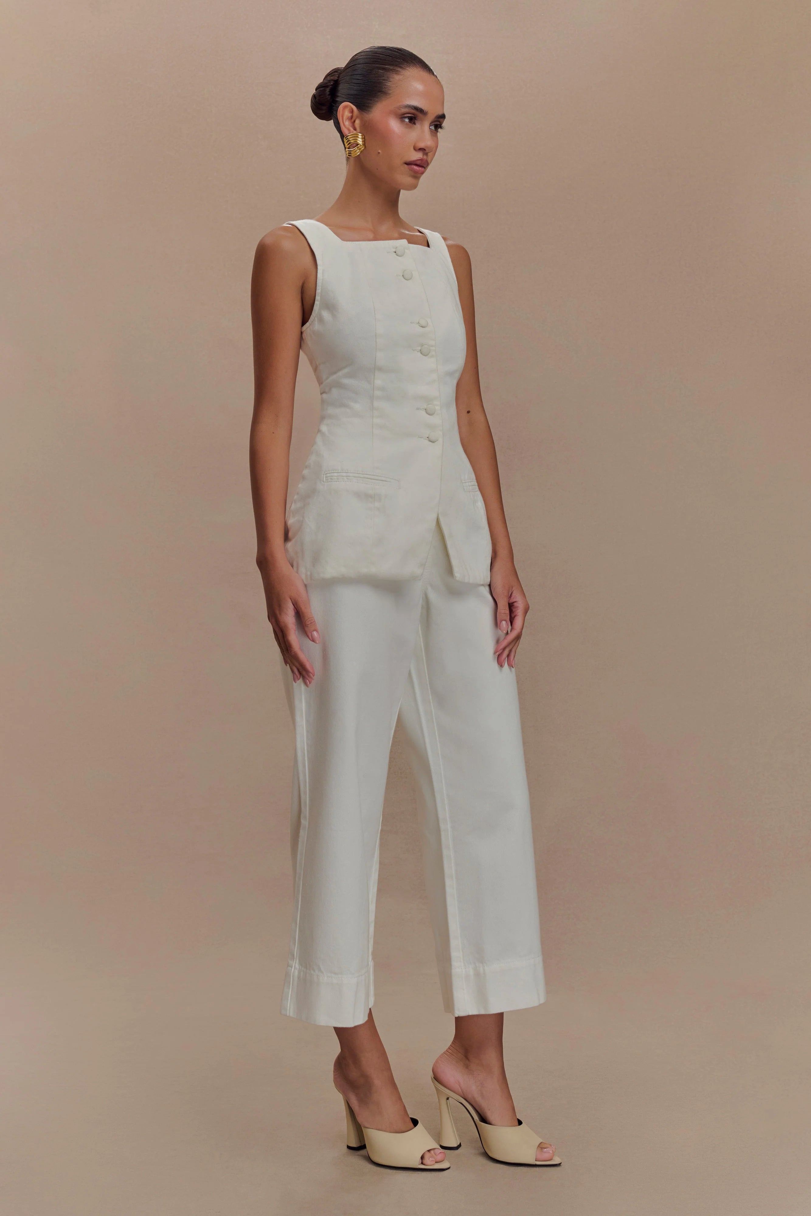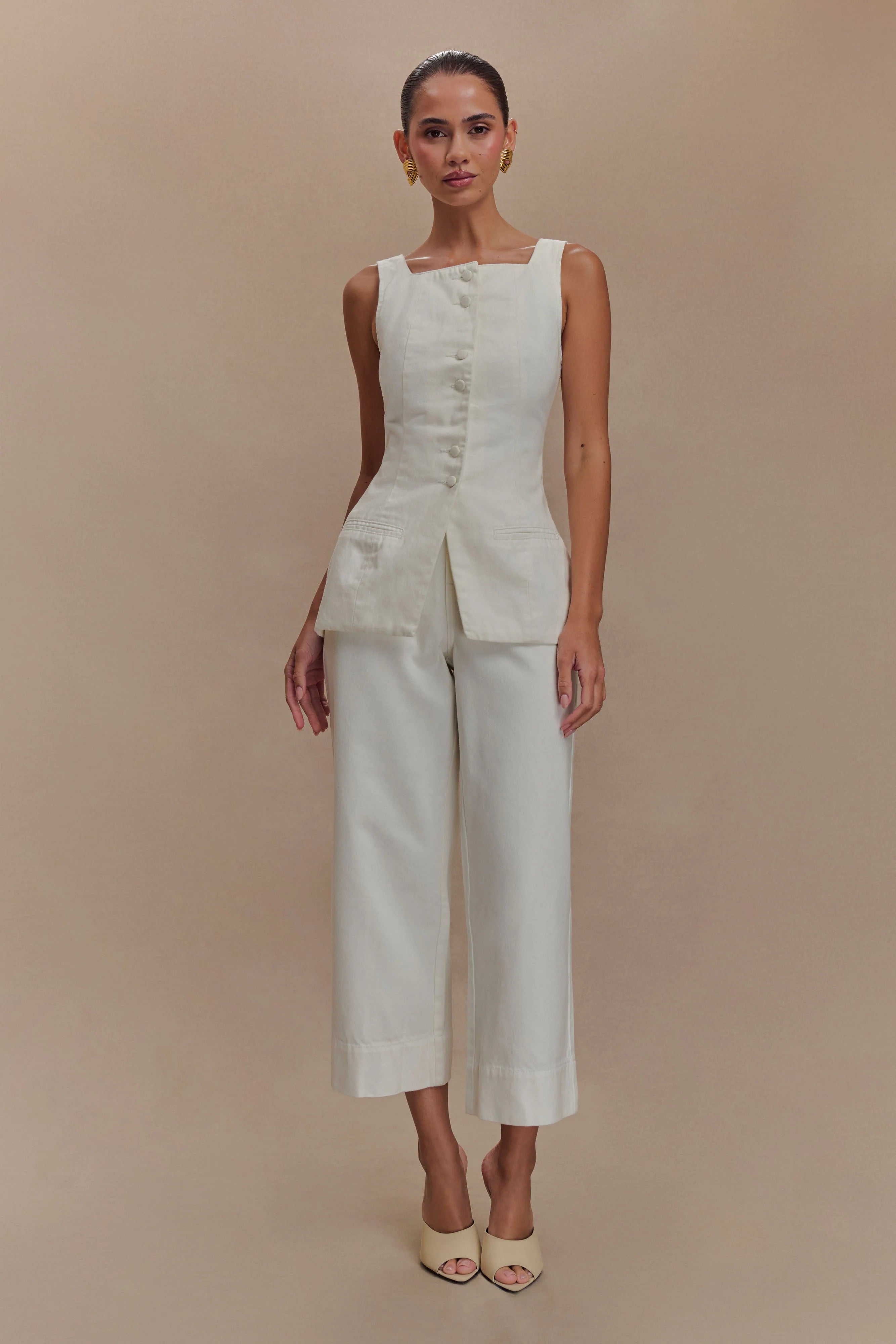 The KAITLYN Cropped Wide Leg Jeans offer a fresh take on classic denim, combining modern style with a flattering fit. Designed with a high-waisted cut, these jeans create a sleek silhouette while offering all-day comfort. The functional front pockets add both practicality and style, while the non-functional back pockets maintain a clean, streamlined look. The shell waist button and fly front closure provide a polished finish. With a straight leg and cropped length, these jeans offer a contemporary, relaxed fit that’s perfect for any season. For a complete look, pair them with the for an effortlessly chic, coordinated ensemble